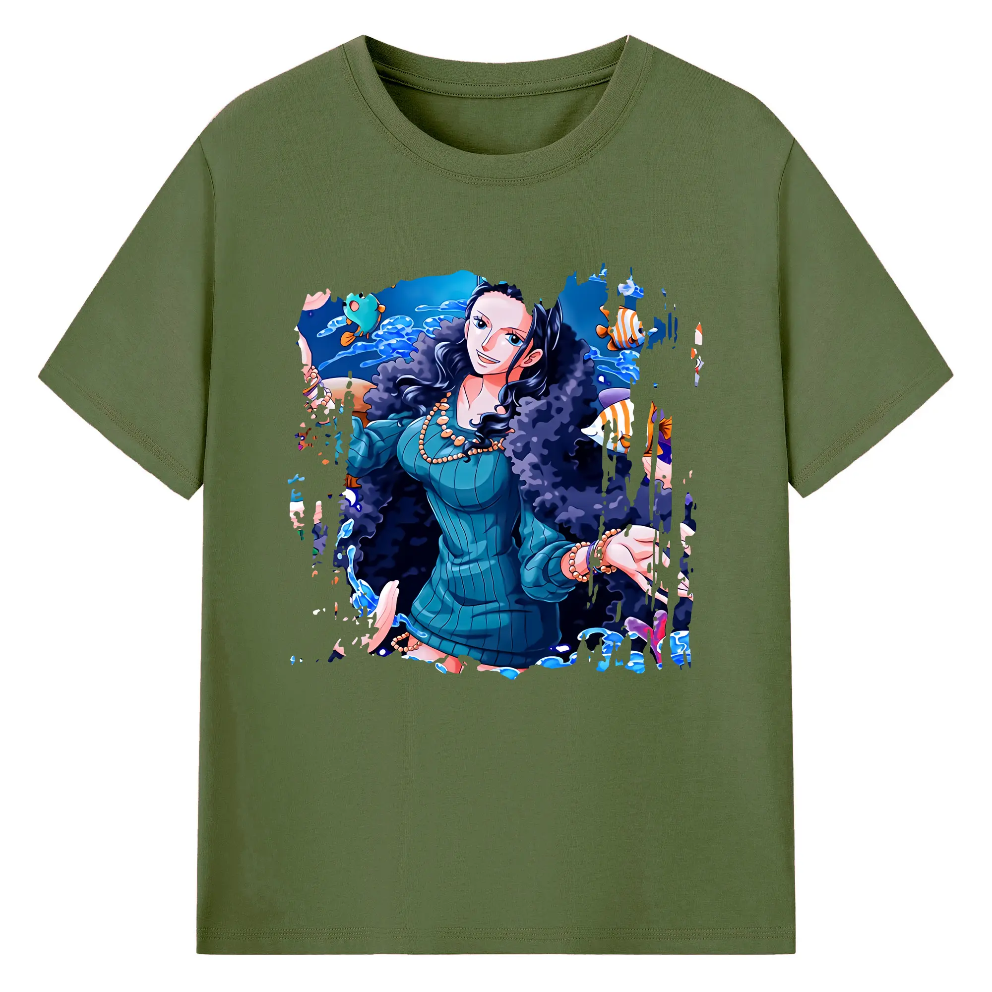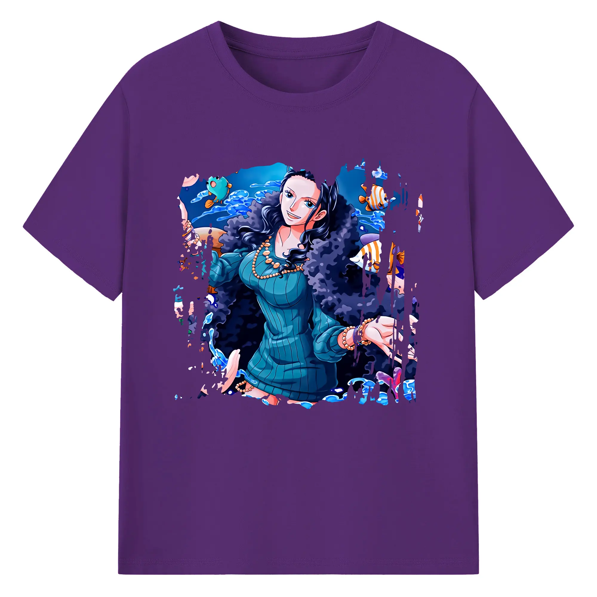 ワンピース グッズ ニコ・ロビン - 綿100% 半袖Tシャツ ・ バックプリント ・ 快適 通気性 ・ 日常使い 散歩 スポーツ用