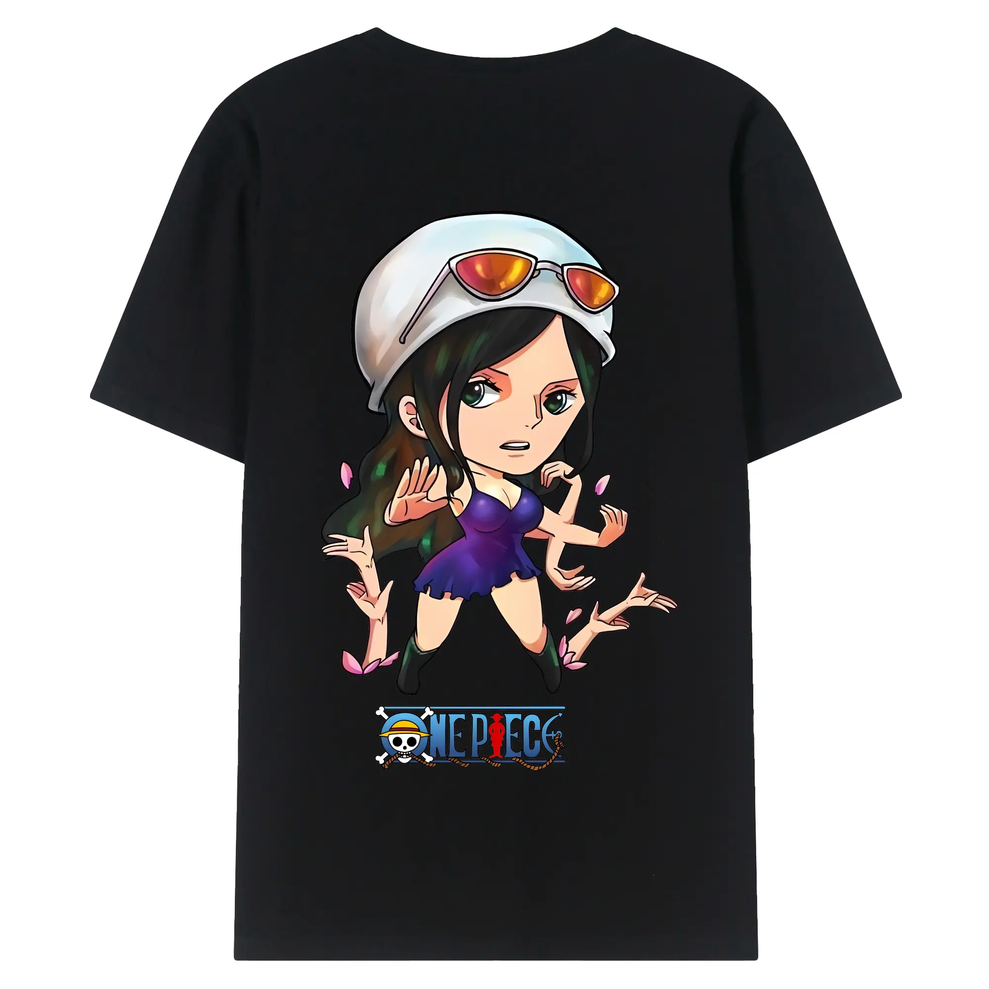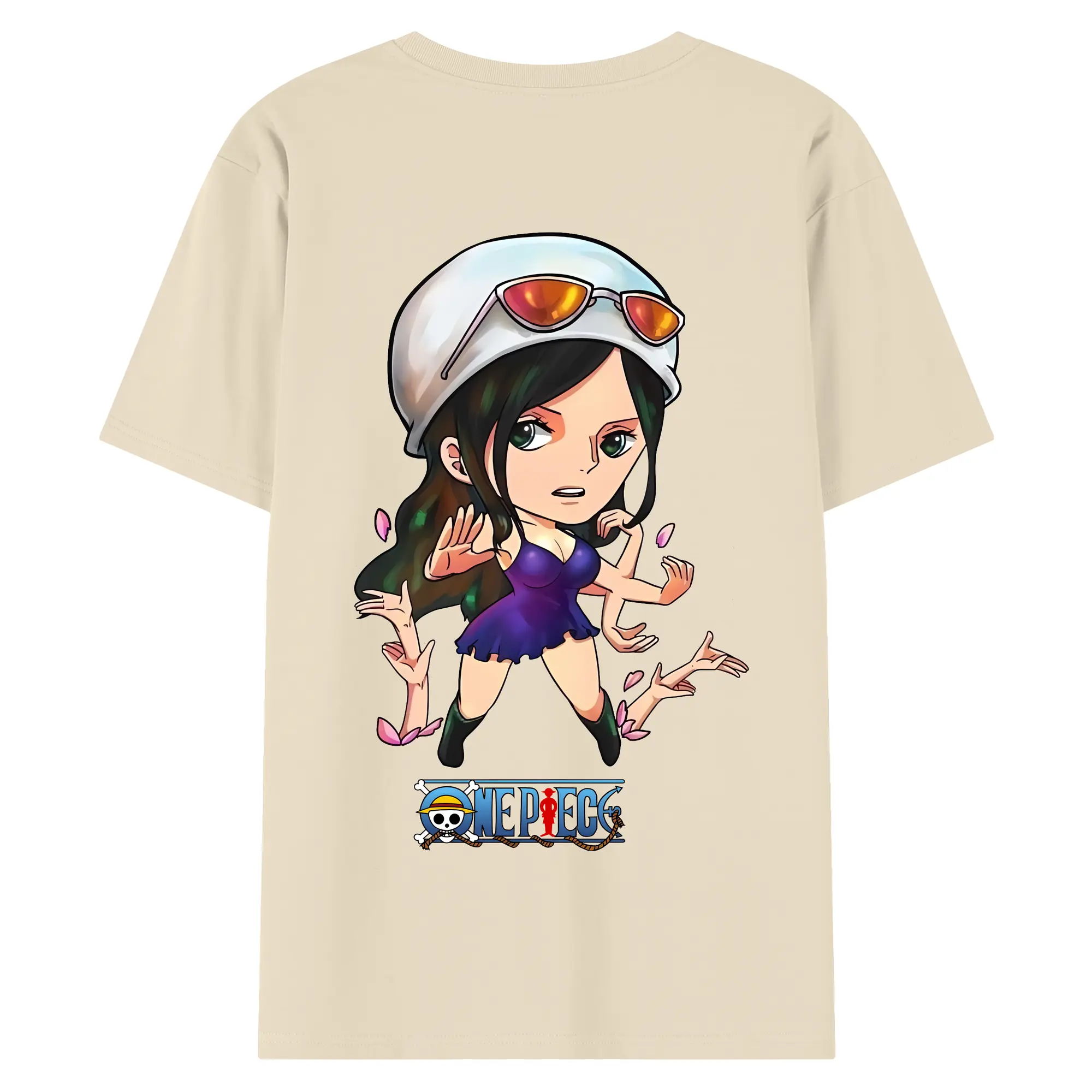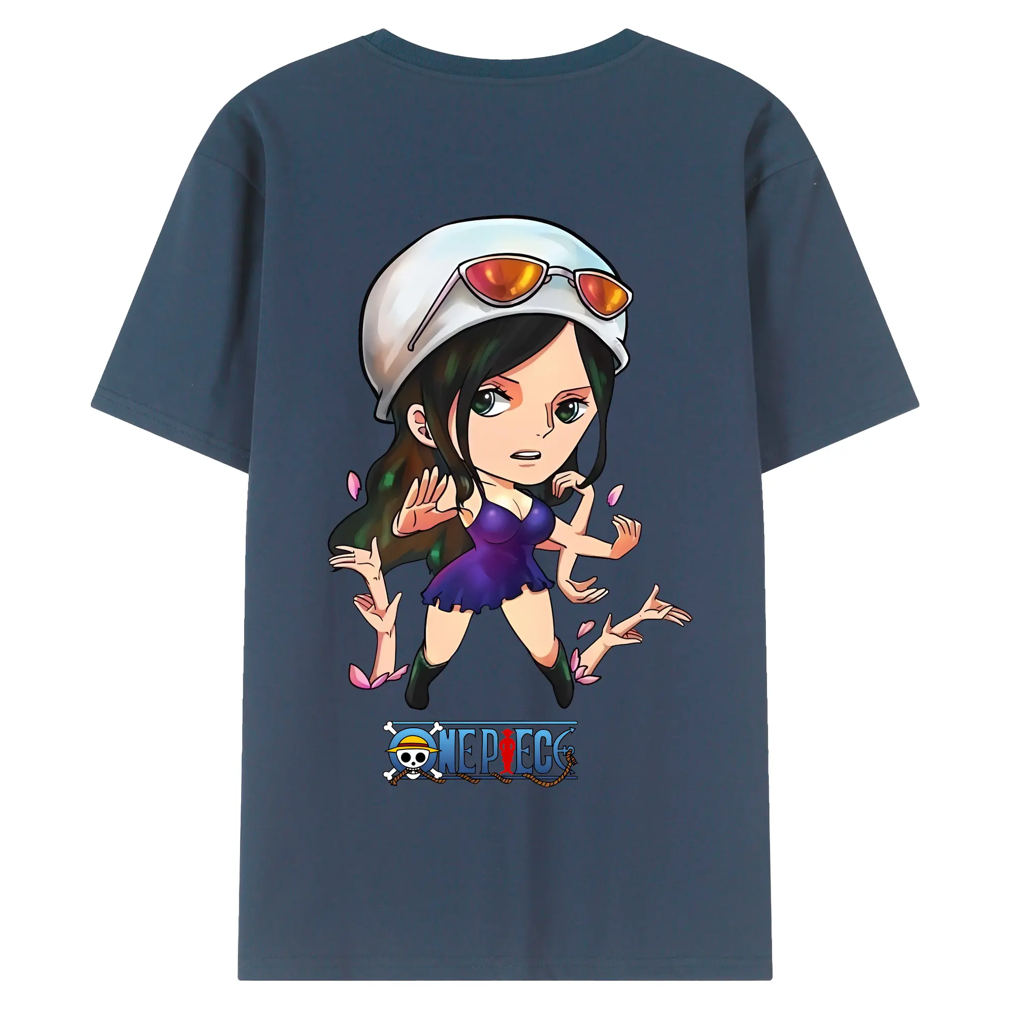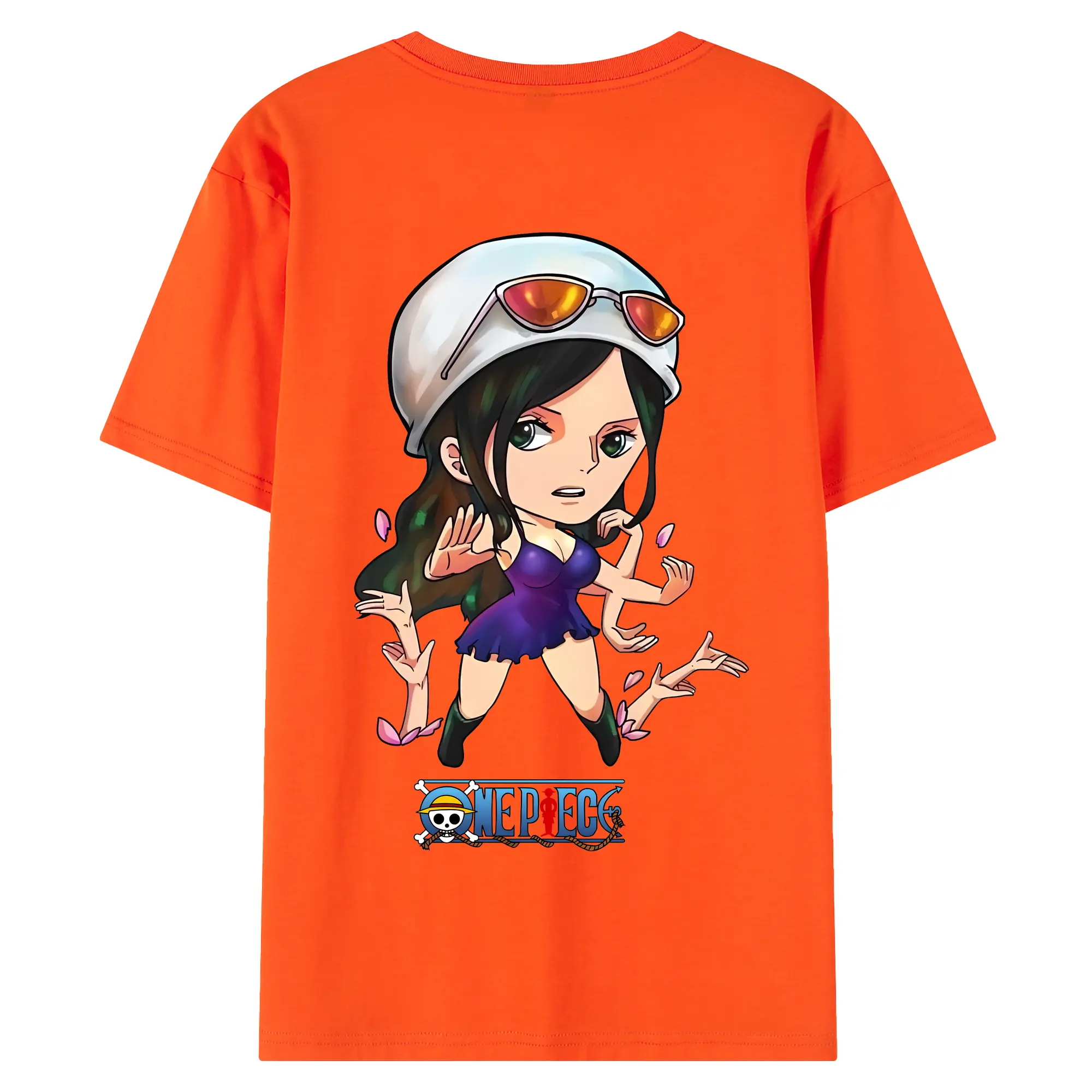 ワンピース グッズ ニコ・ロビン - 綿100% ヴィンテージ風 半袖Tシャツ ・ 背面プリント ・ 柔らか肌触り ・ 通気性 快適 ・ スポーツ カジュアル 外出用