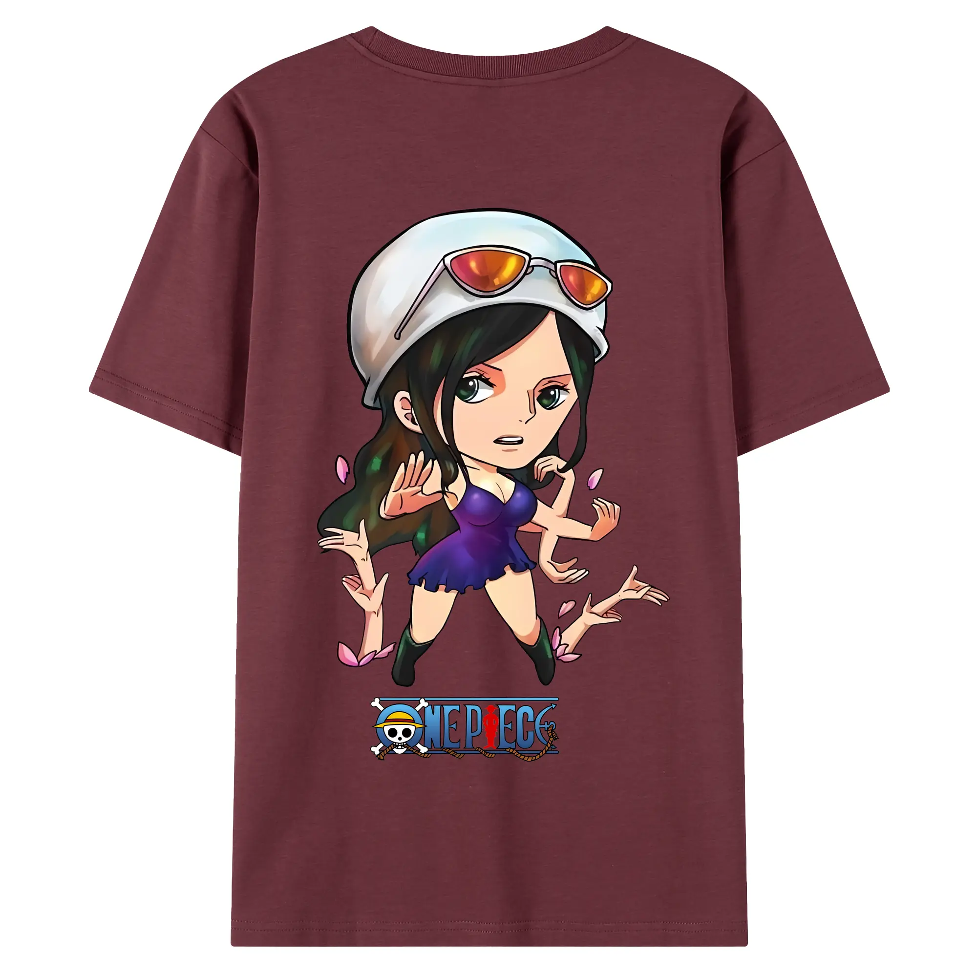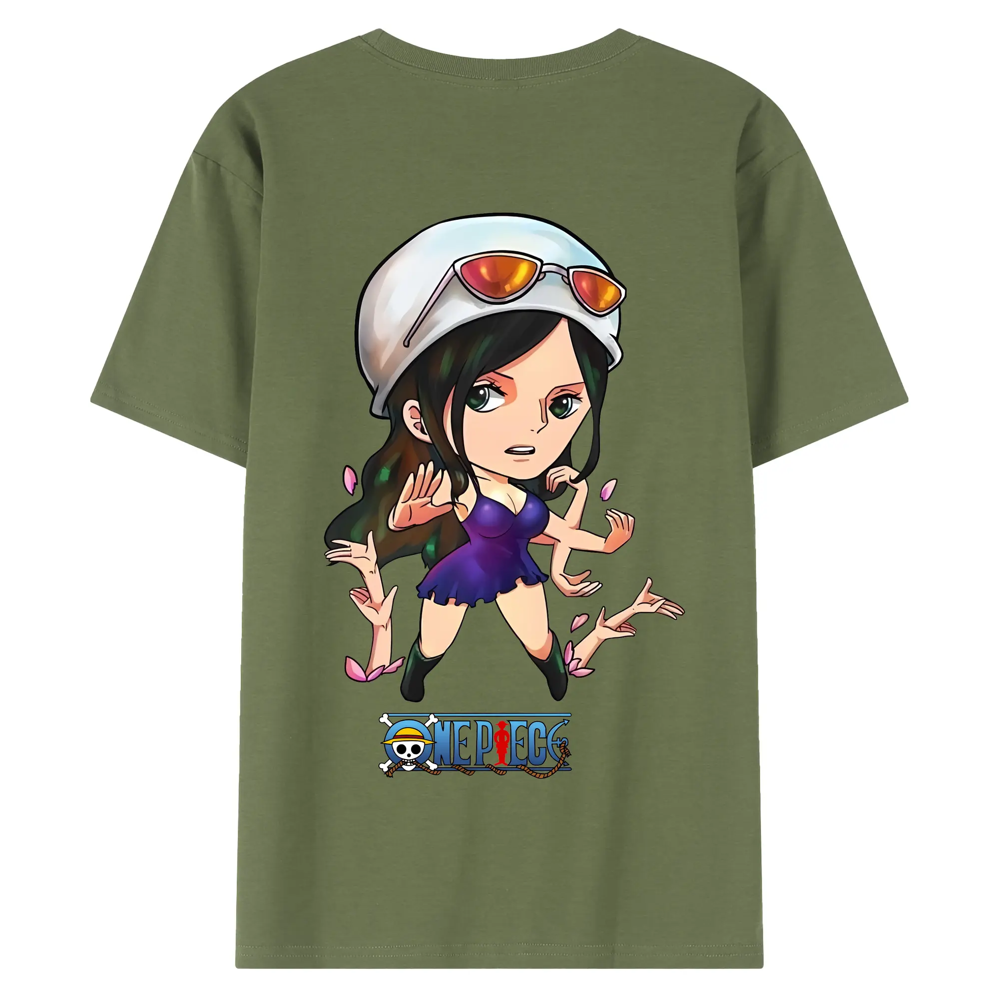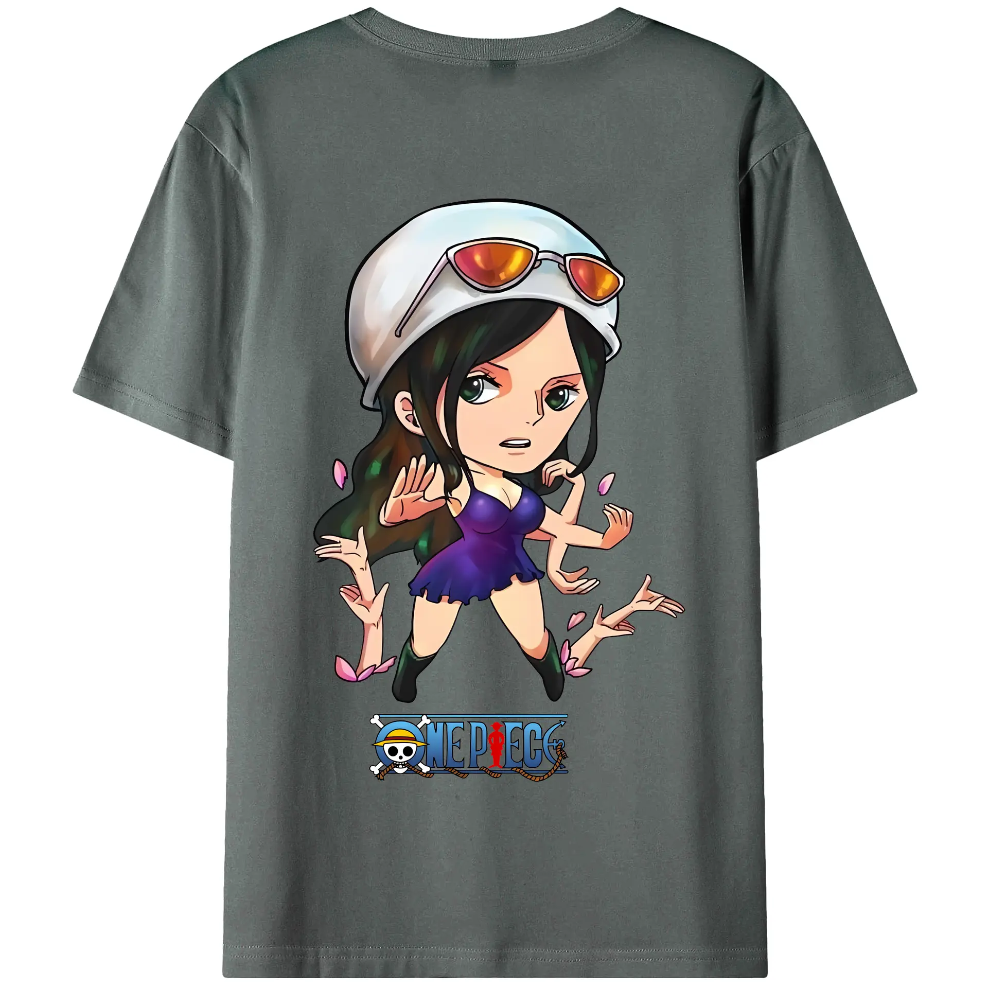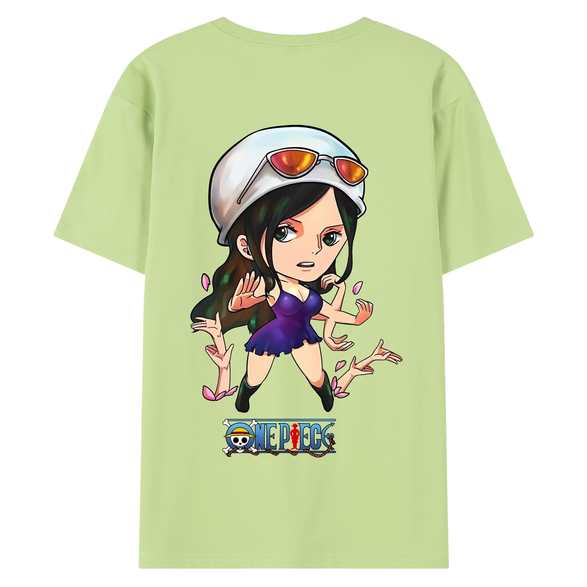 ワンピース グッズ ニコ・ロビン - 綿100% ヴィンテージ風 半袖Tシャツ ・ 背面プリント ・ 柔らか肌触り ・ 通気性 快適 ・ スポーツ カジュアル 外出用
