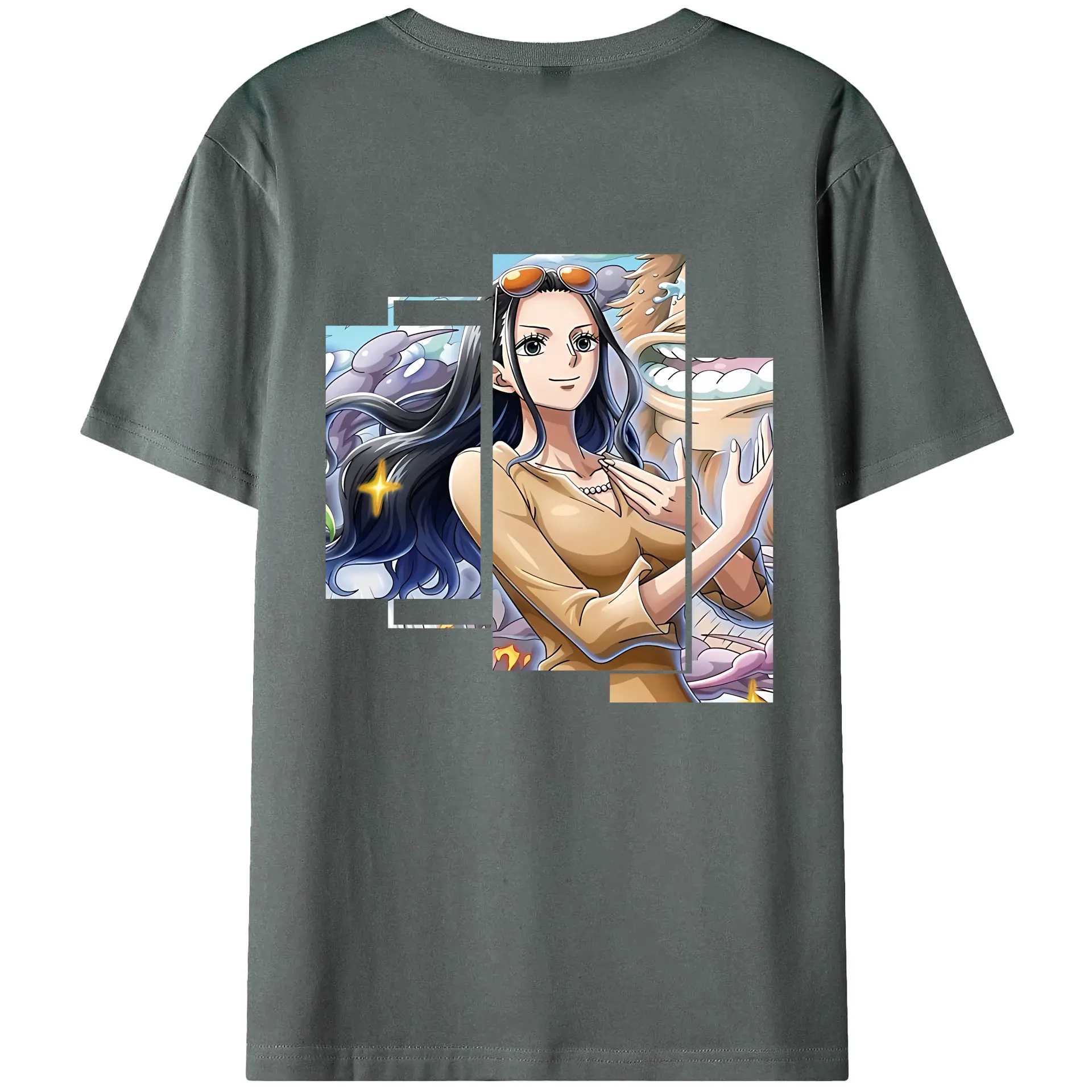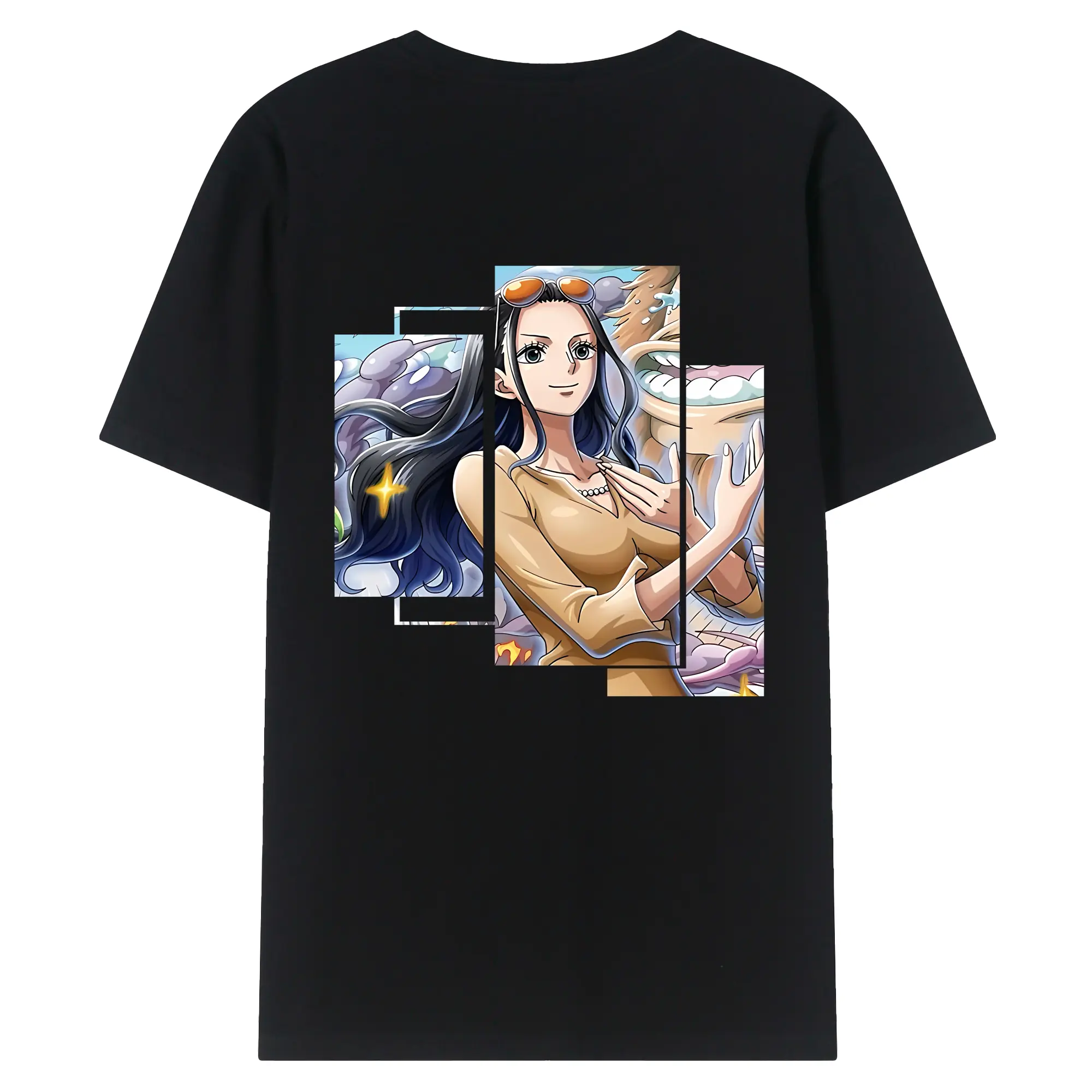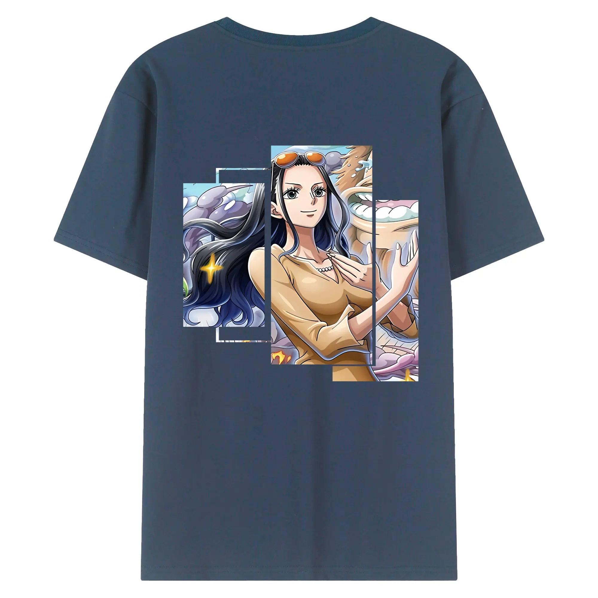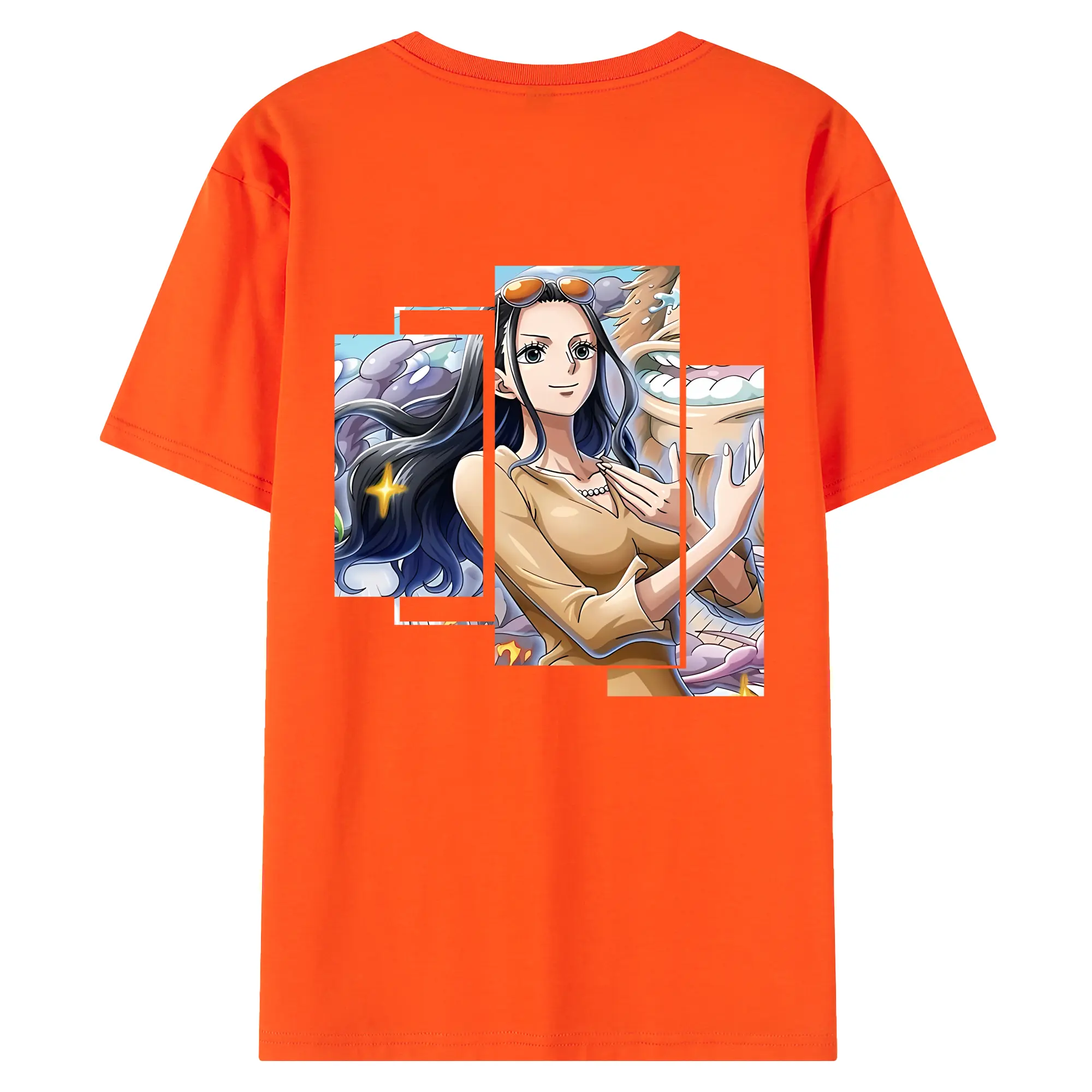 ワンピース グッズ ニコ・ロビン - 綿100% ヴィンテージ風 半袖Tシャツ ・ 背面プリント ・ 柔らか肌触り ・ 通気性 快適 ・ スポーツ カジュアル 外出用