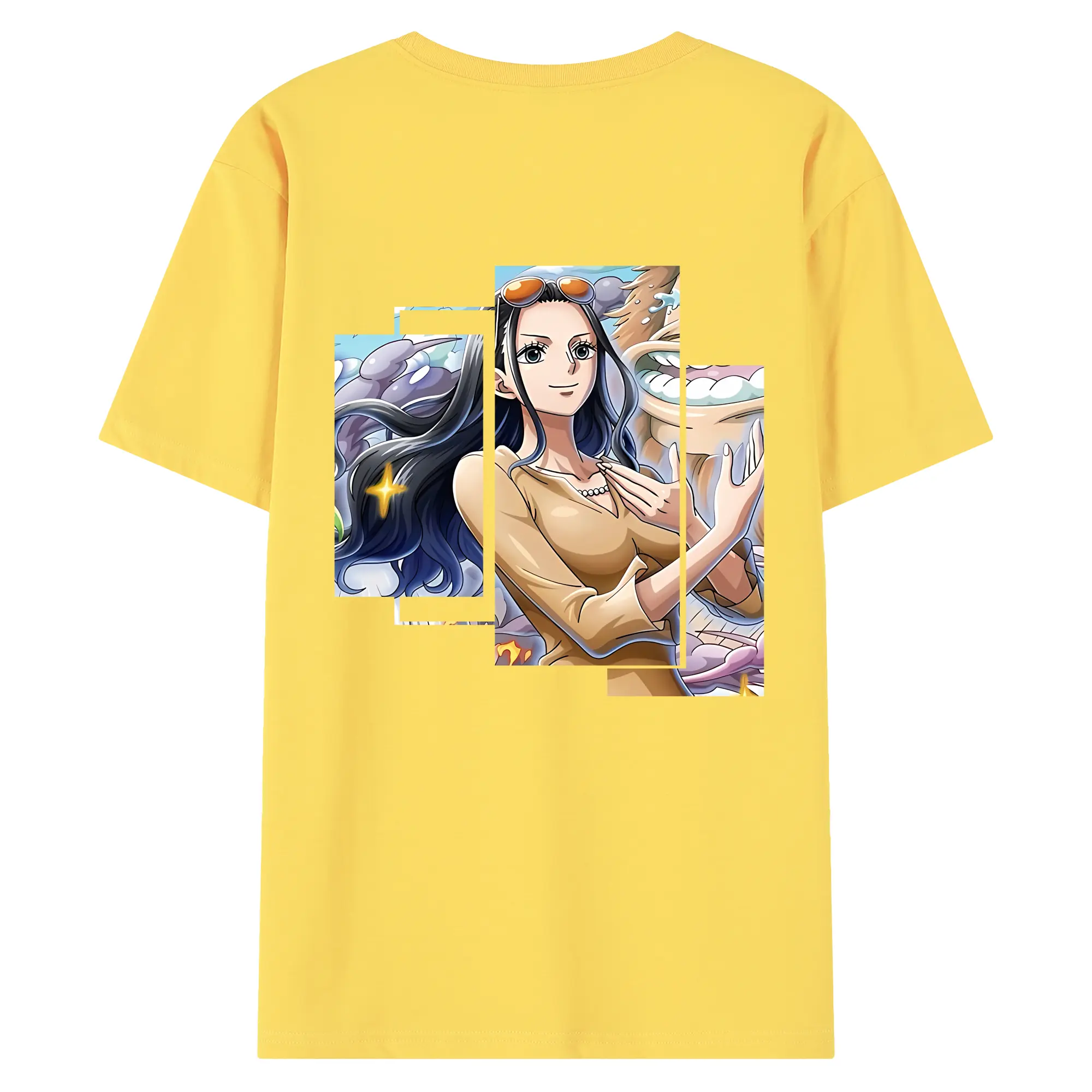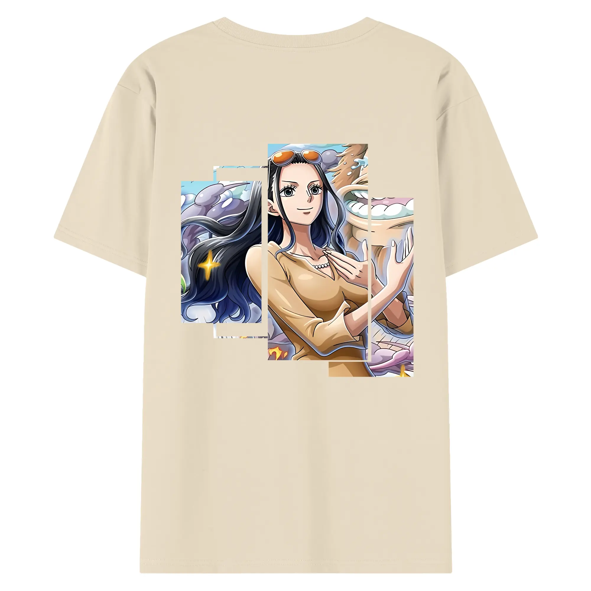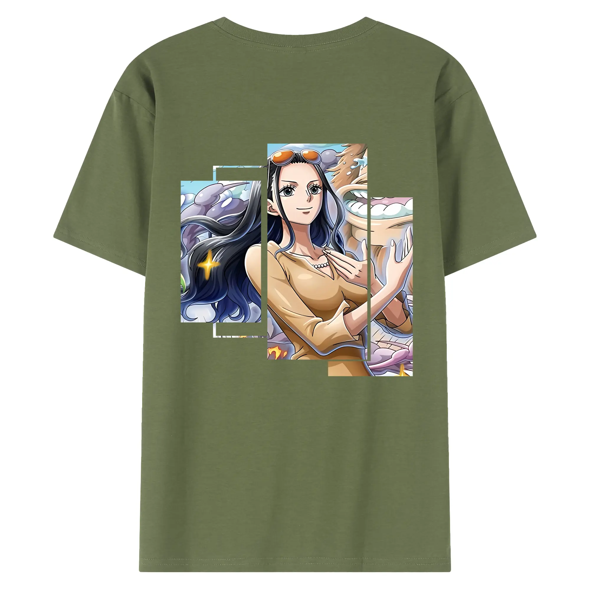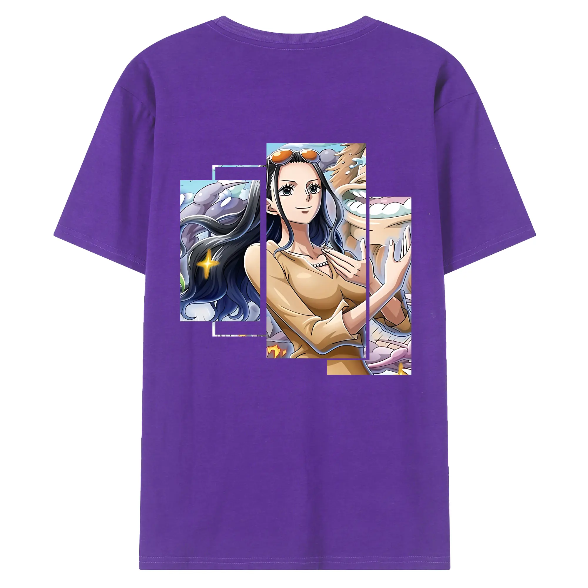ワンピース グッズ ニコ・ロビン - 綿100% ヴィンテージ風 半袖Tシャツ ・ 背面プリント ・ 柔らか肌触り ・ 通気性 快適 ・ スポーツ カジュアル 外出用
