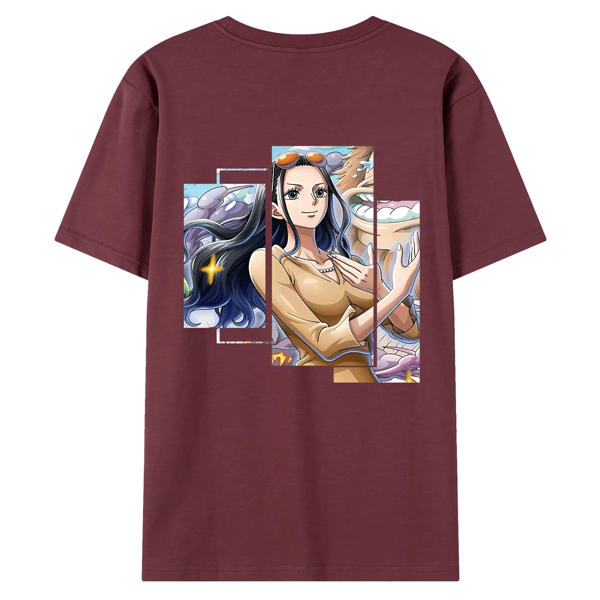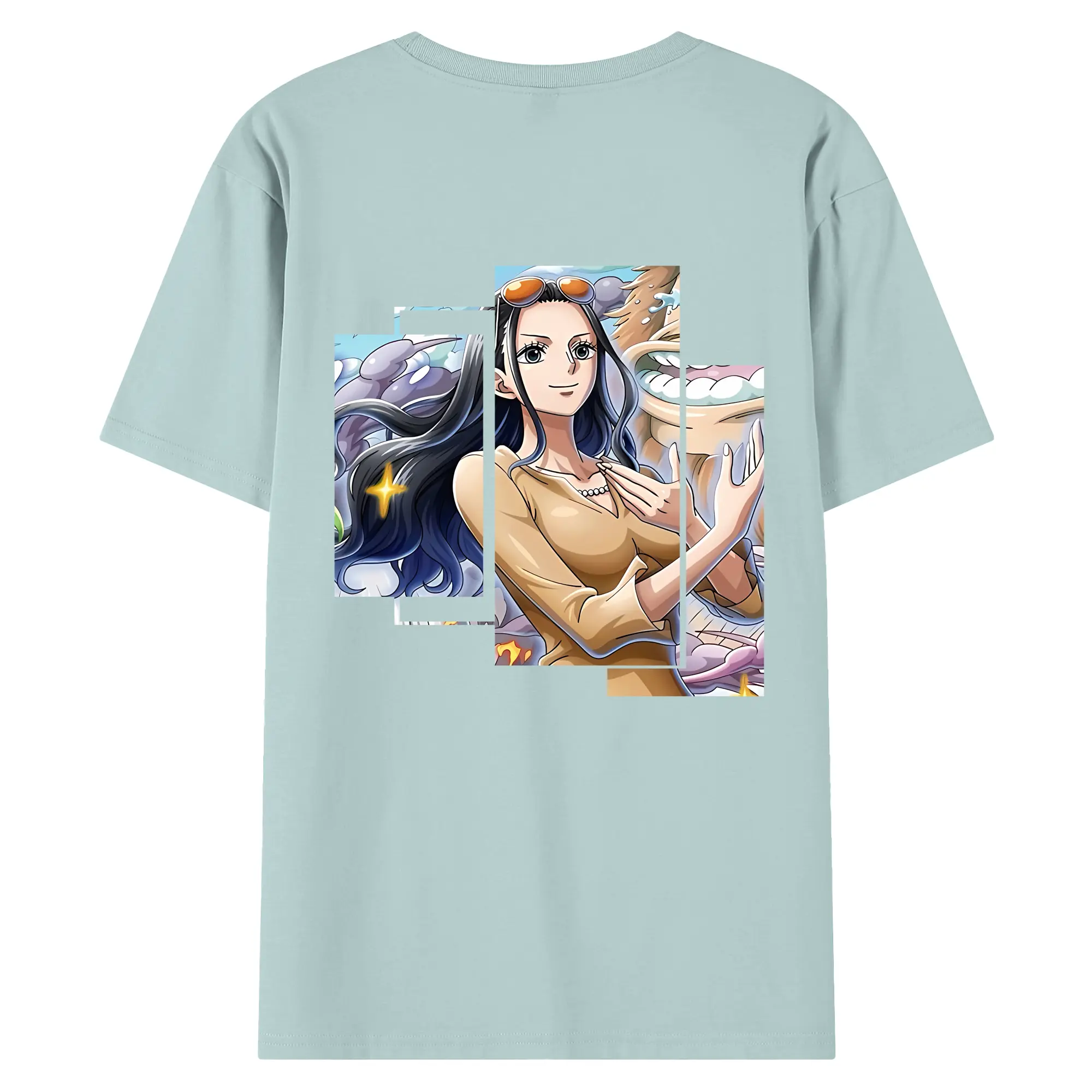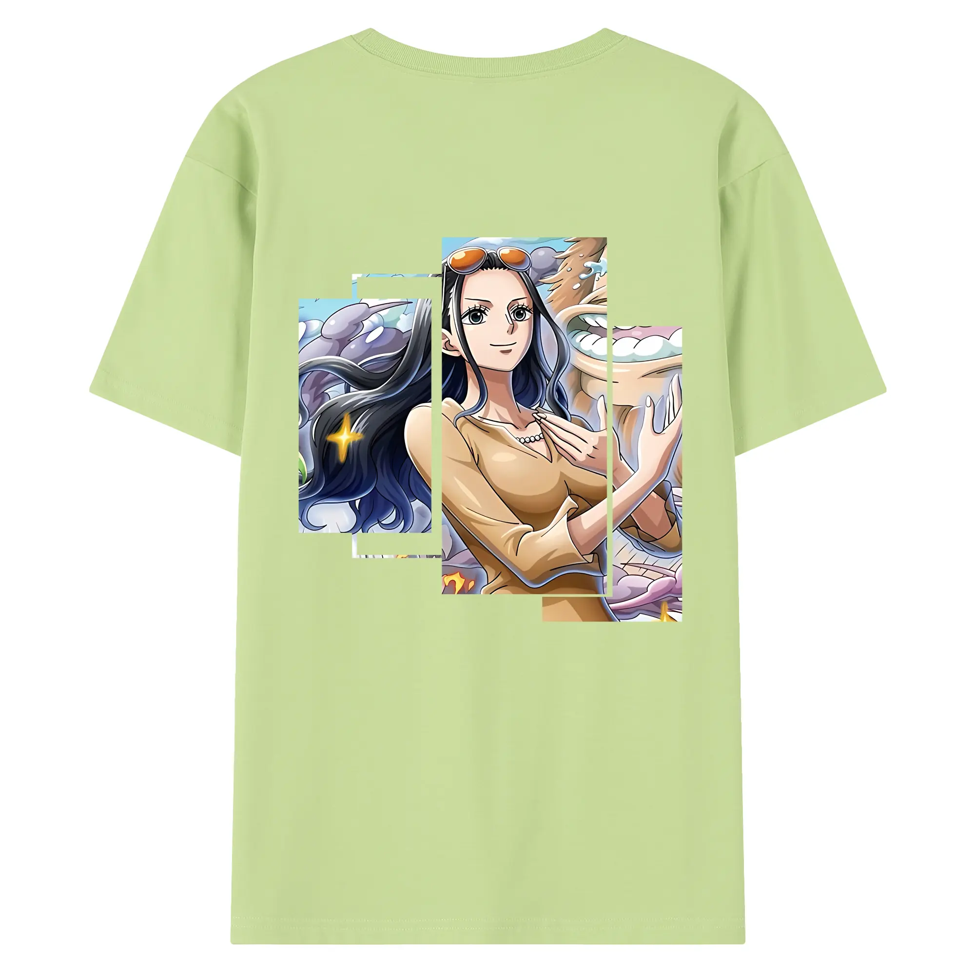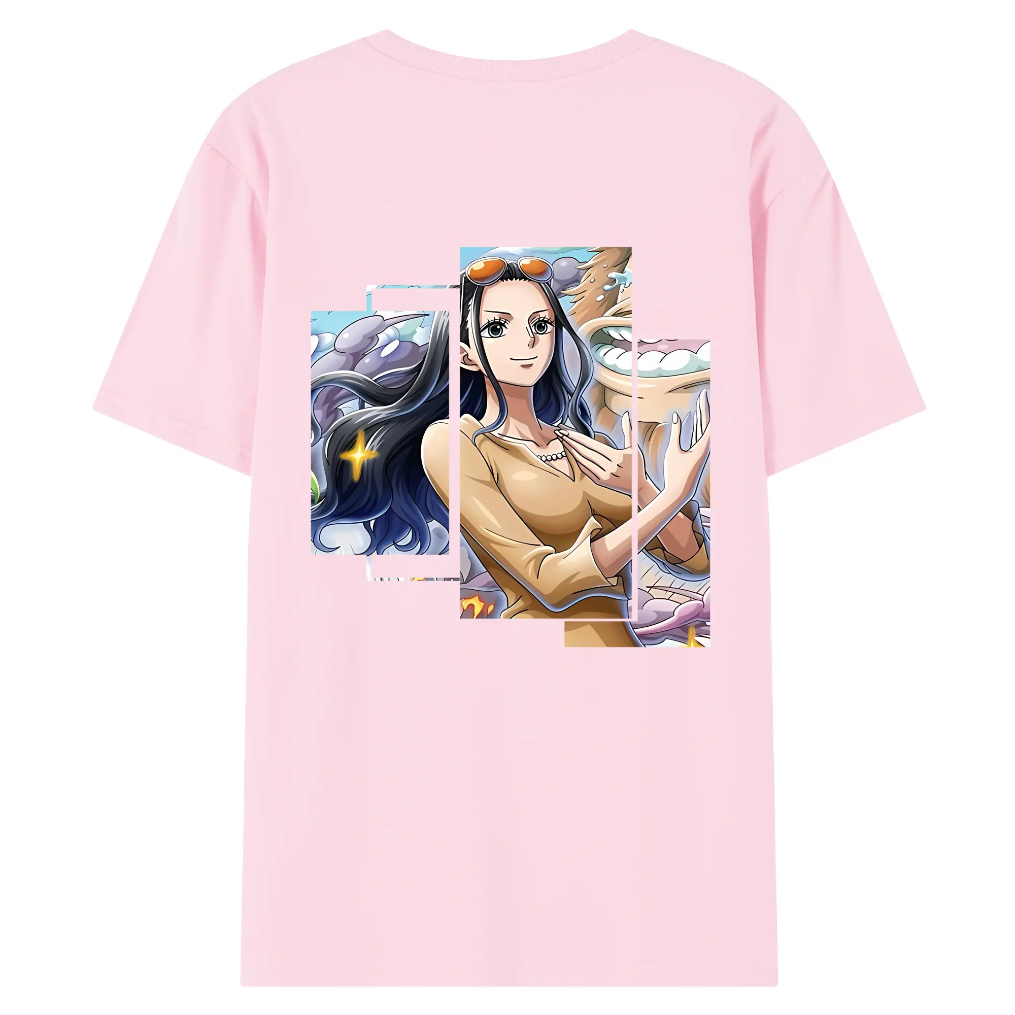 ワンピース グッズ ニコ・ロビン - 綿100% ヴィンテージ風 半袖Tシャツ ・ 背面プリント ・ 柔らか肌触り ・ 通気性 快適 ・ スポーツ カジュアル 外出用