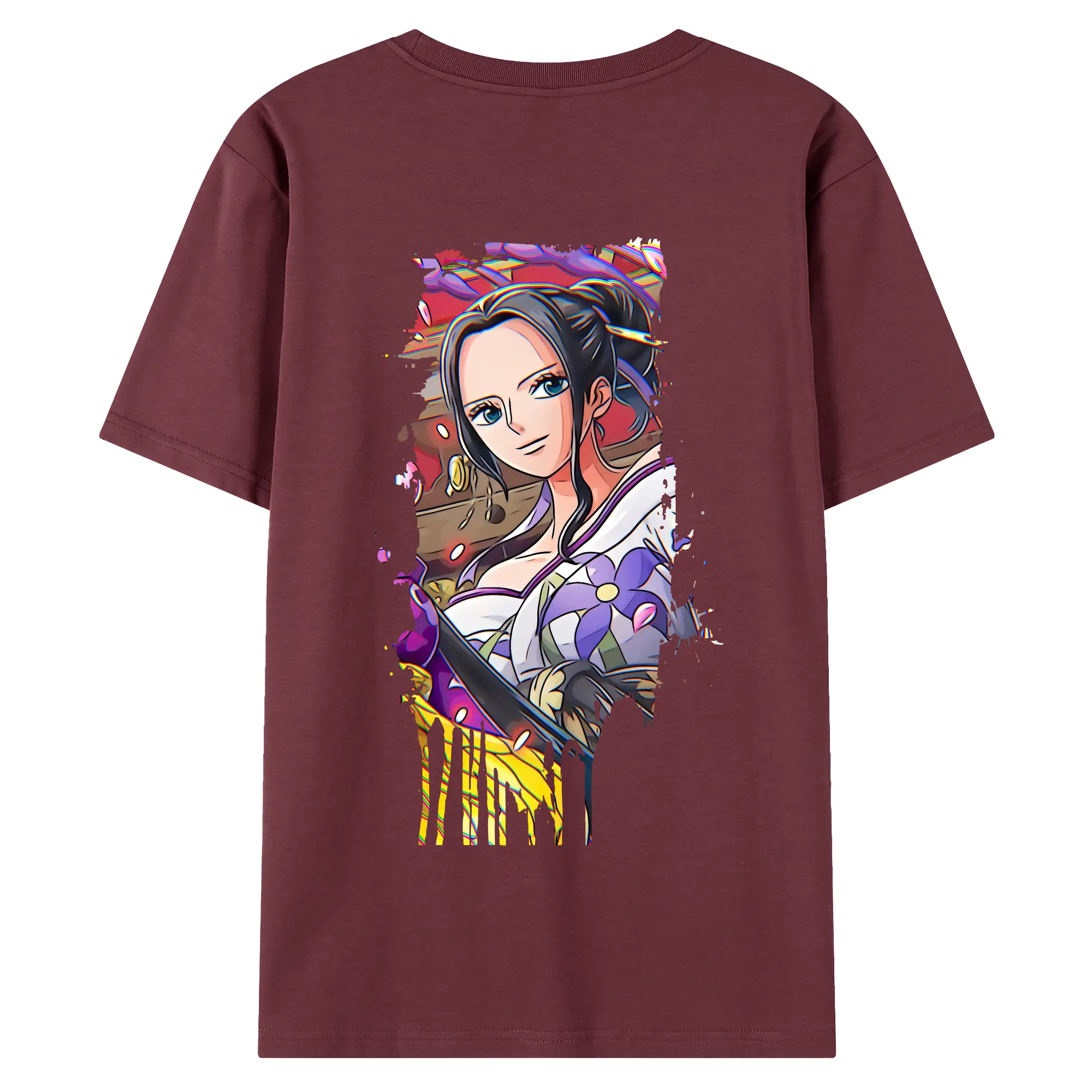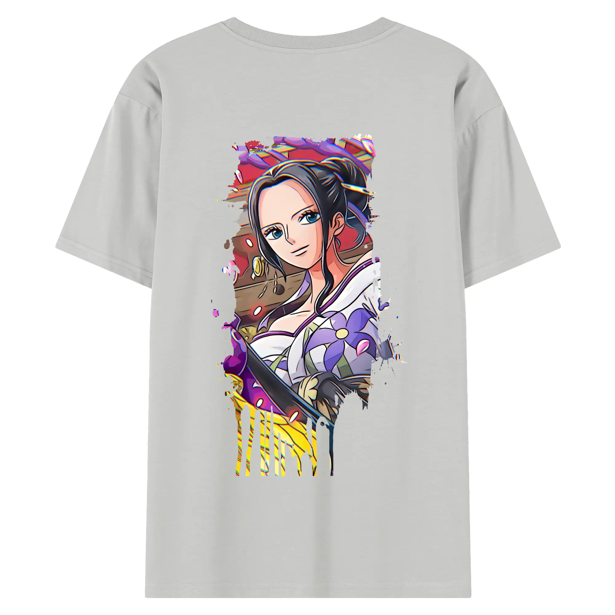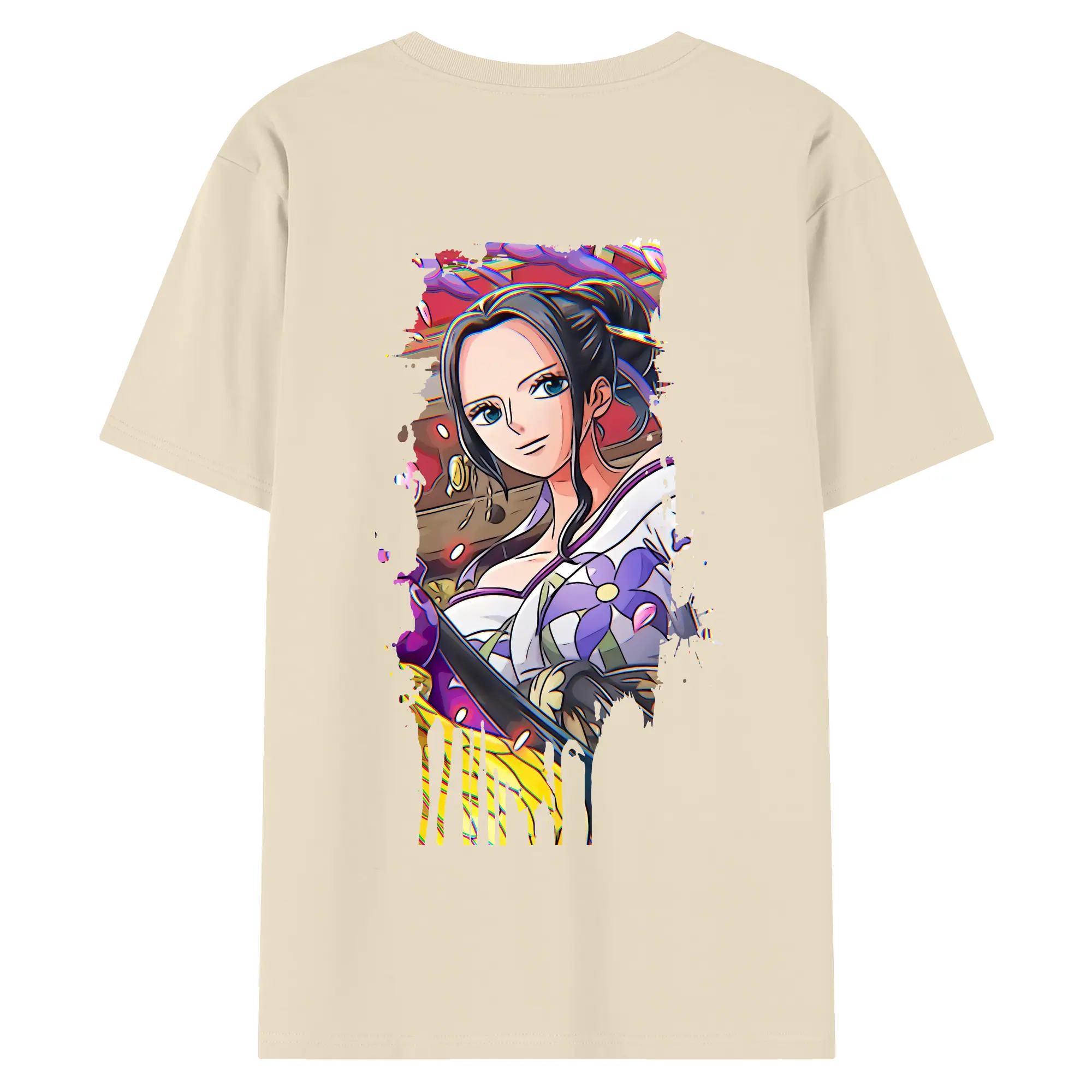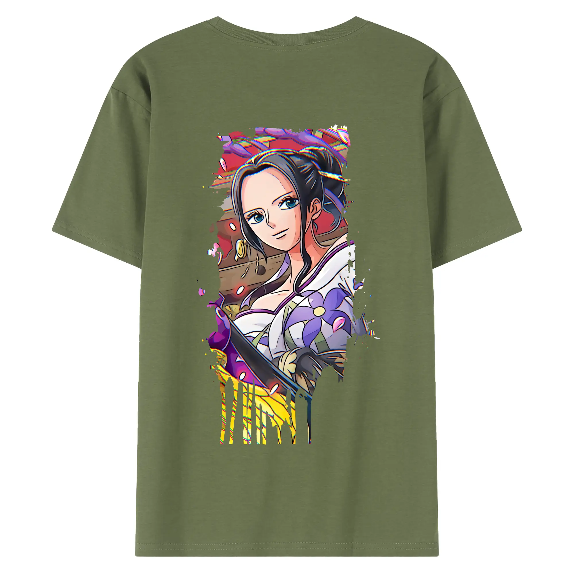 ワンピース グッズ ニコ・ロビン - 綿100% ヴィンテージ風 半袖Tシャツ ・ 背面プリント ・ 柔らか肌触り ・ 通気性 快適 ・ スポーツ カジュアル 外出用
