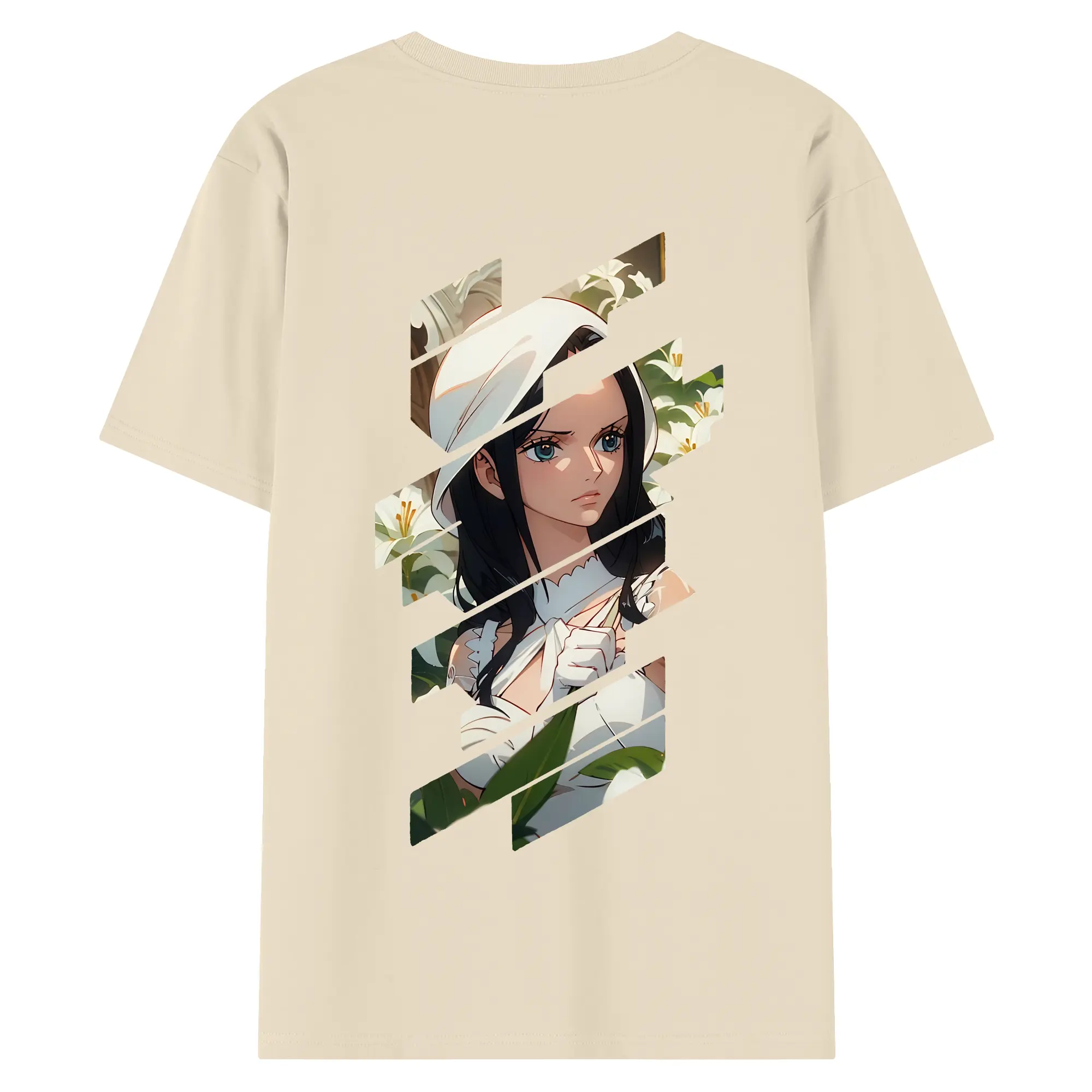 ワンピース グッズ ニコ・ロビン - 綿100% ヴィンテージ風 半袖Tシャツ ・ 背面プリント ・ 柔らか肌触り ・ 通気性 快適 ・ スポーツ カジュアル 外出用