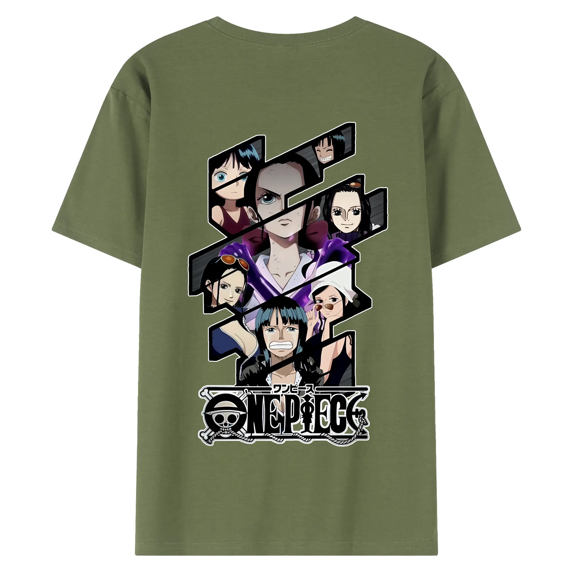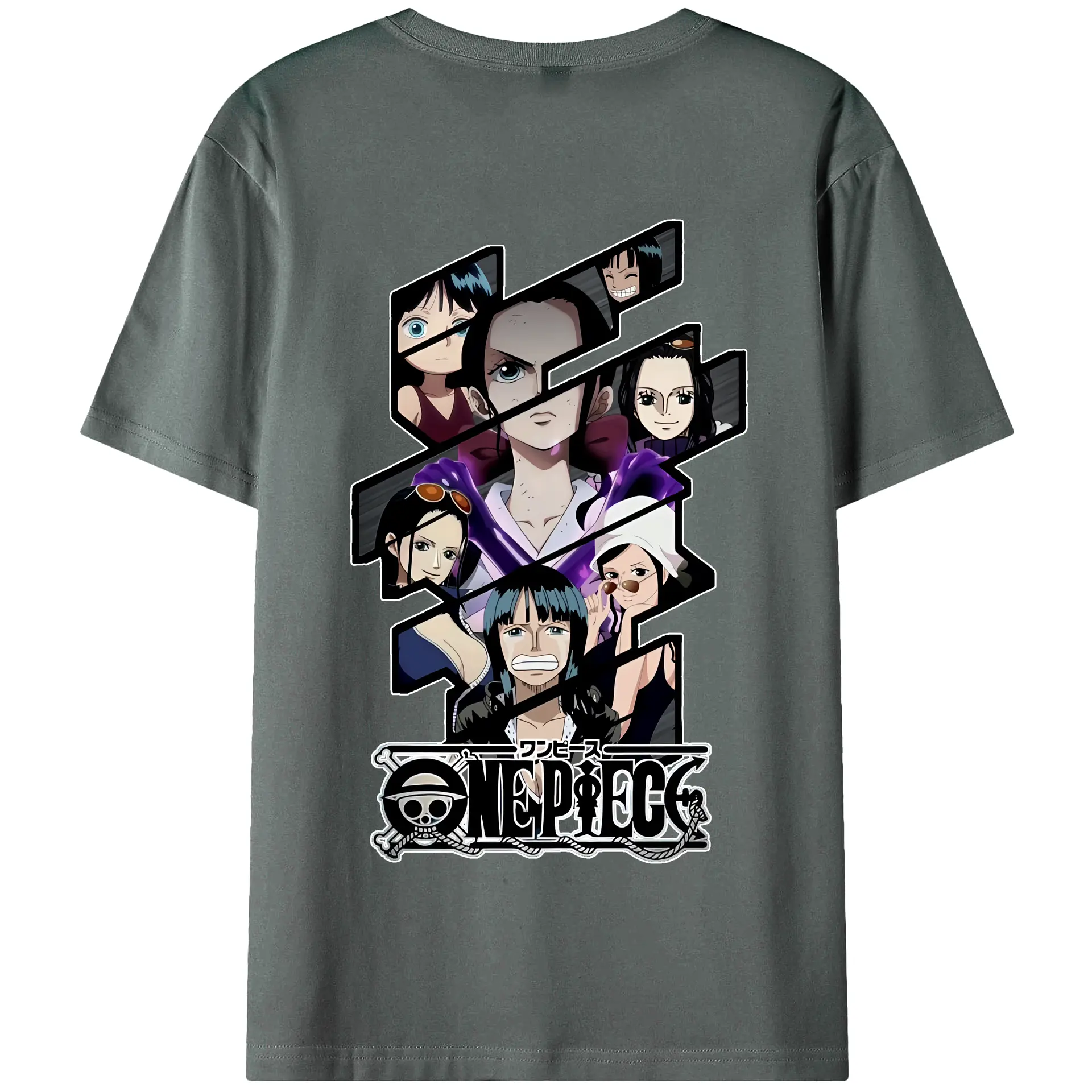 ワンピース グッズ ニコ・ロビン - 綿100% ヴィンテージ風 半袖Tシャツ ・ 背面プリント ・ 柔らか肌触り ・ 通気性 快適 ・ スポーツ カジュアル 外出用