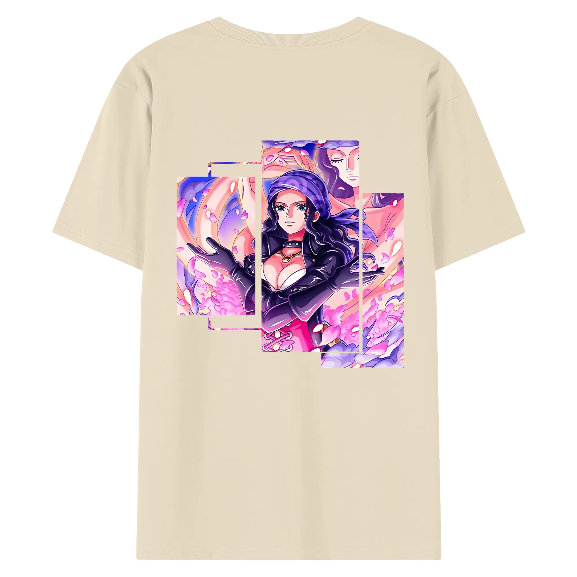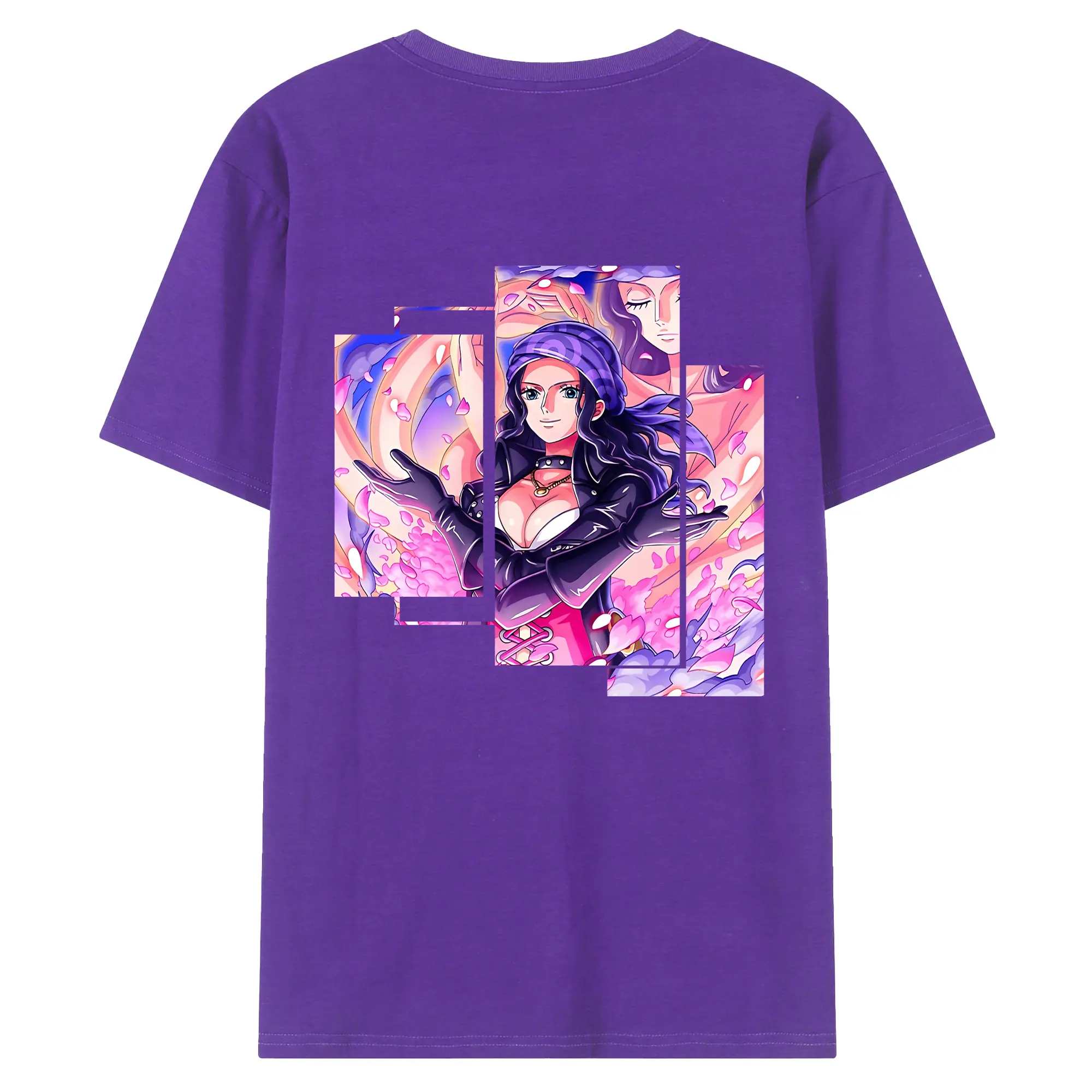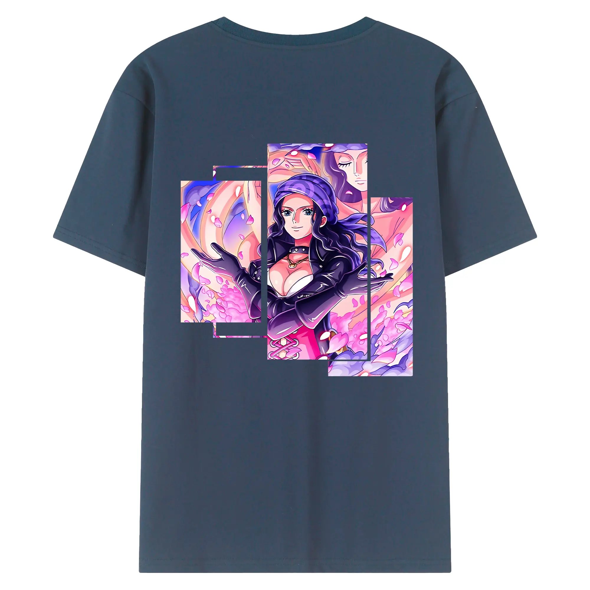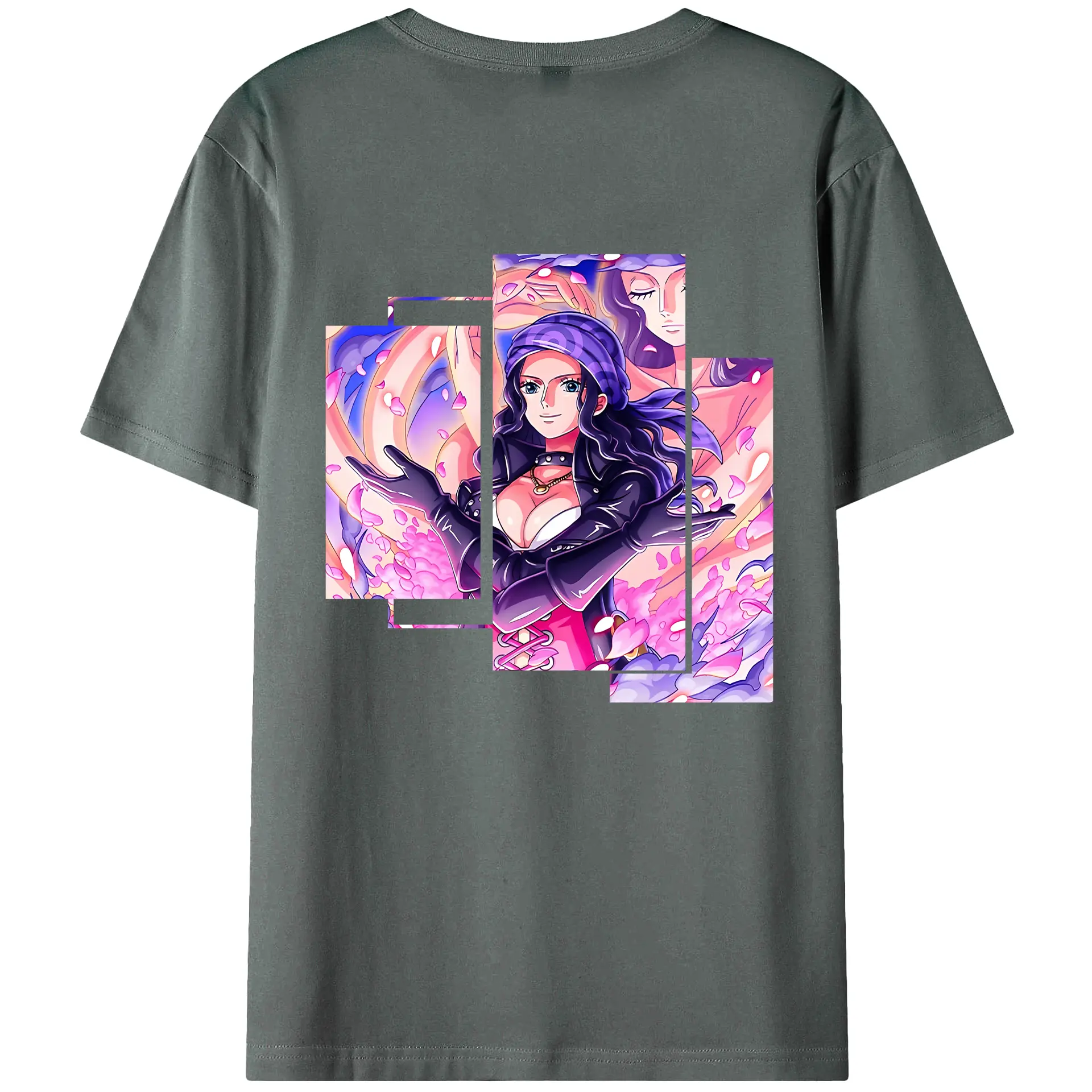 ワンピース グッズ ニコ・ロビン - 綿100% ヴィンテージ風 半袖Tシャツ ・ 背面プリント ・ 柔らか肌触り ・ 通気性 快適 ・ スポーツ カジュアル 外出用