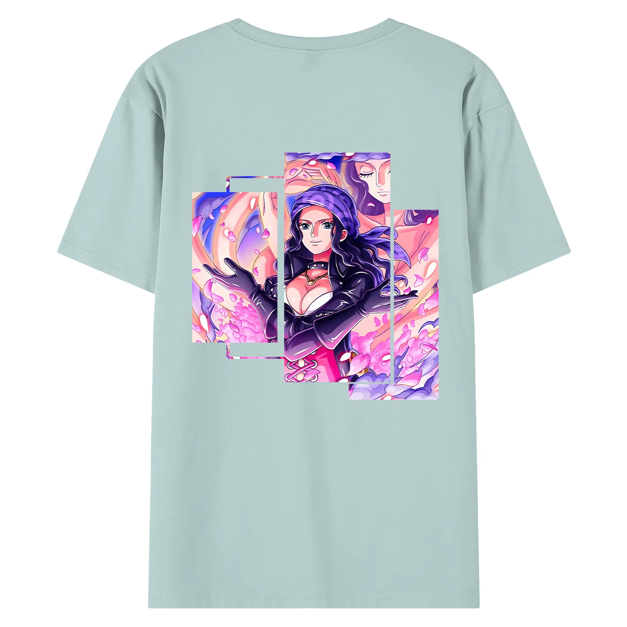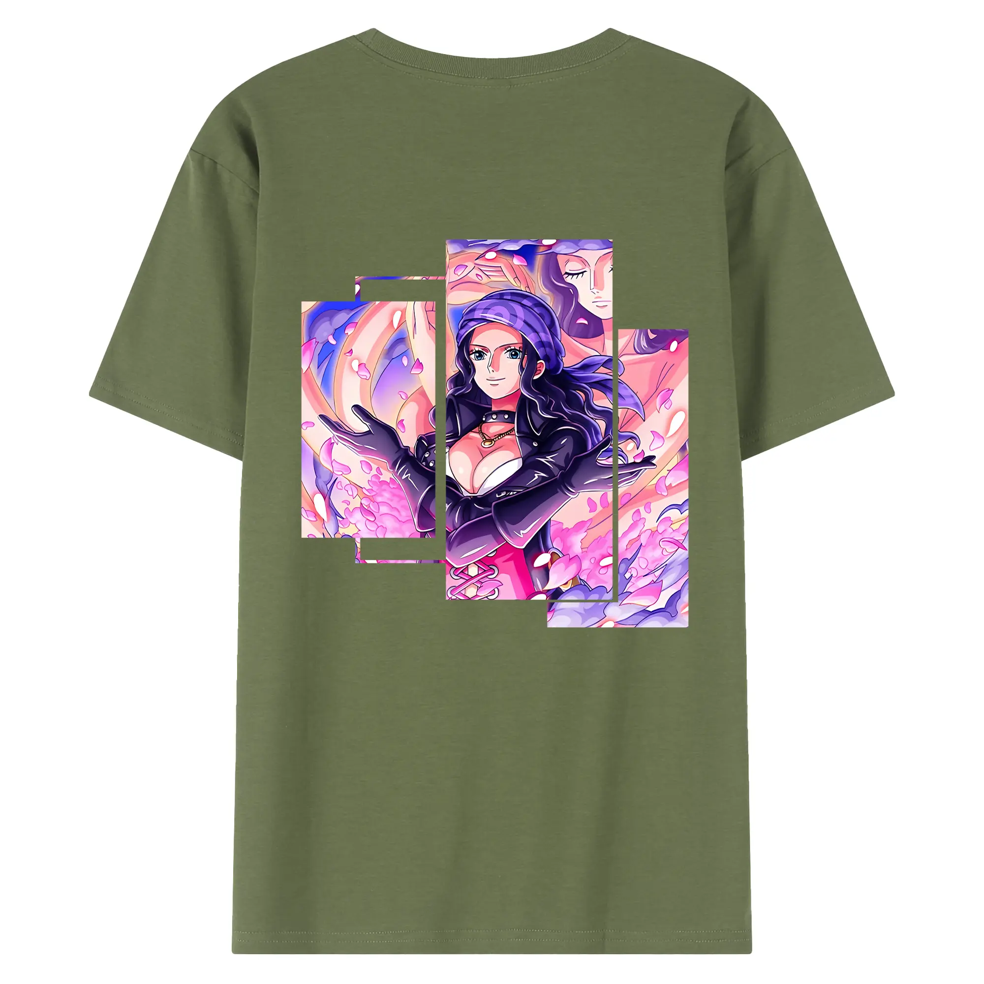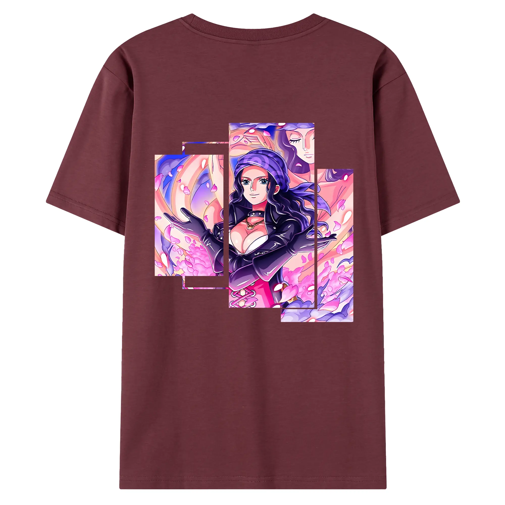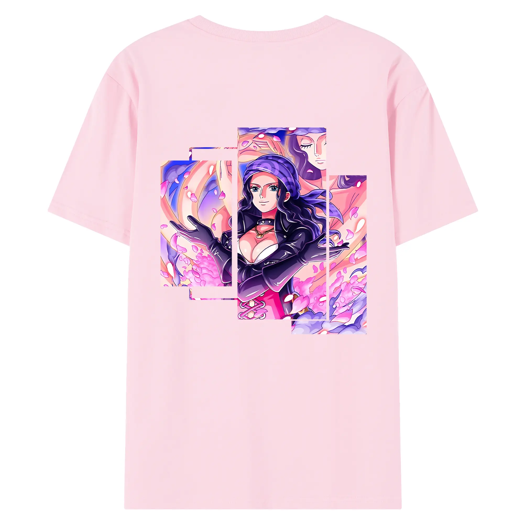 ワンピース グッズ ニコ・ロビン - 綿100% ヴィンテージ風 半袖Tシャツ ・ 背面プリント ・ 柔らか肌触り ・ 通気性 快適 ・ スポーツ カジュアル 外出用