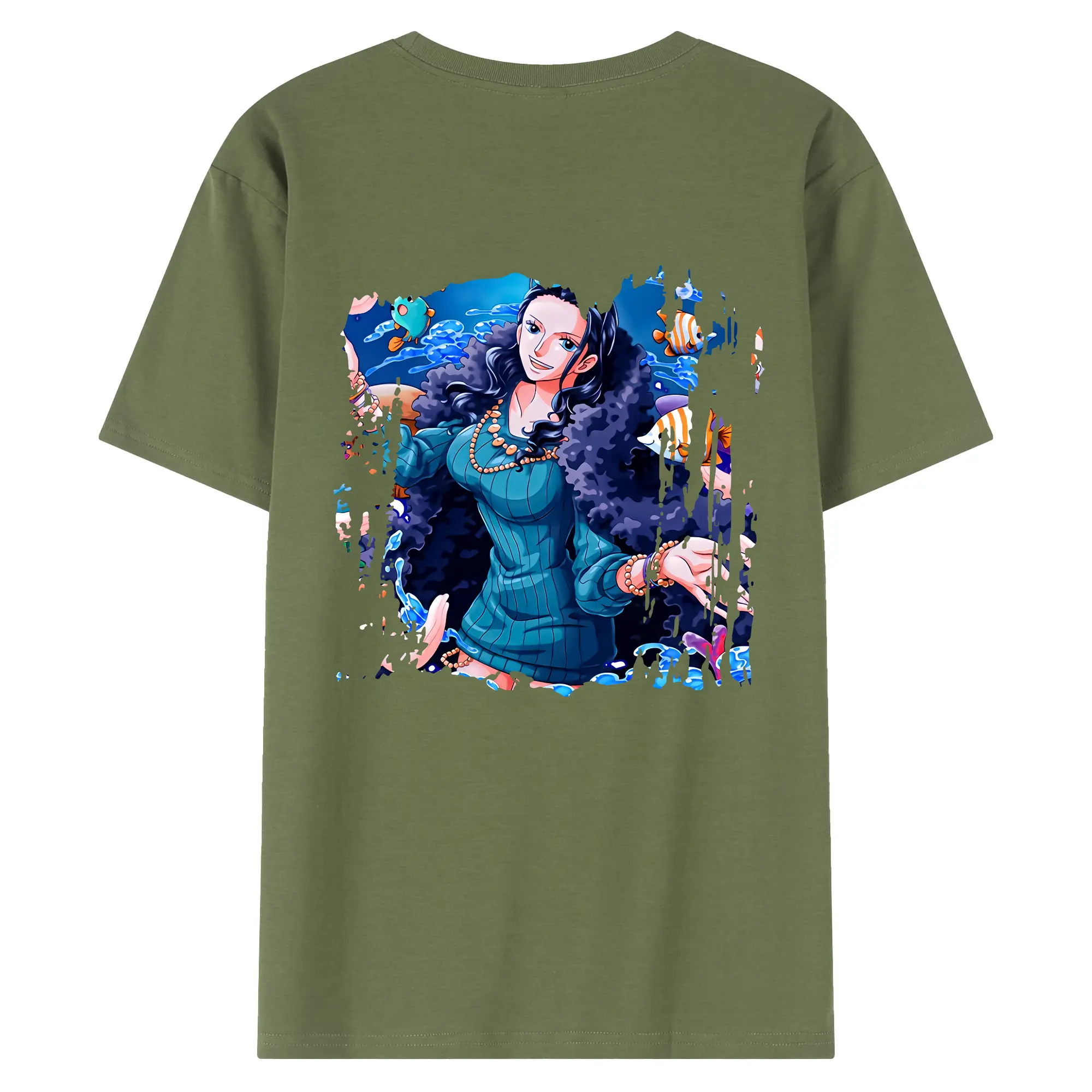 ワンピース グッズ ニコ・ロビン - 綿100% 半袖Tシャツ ・ フロントプリント ・ 快適 通気性 ・ 日常使い 散歩 スポーツ用