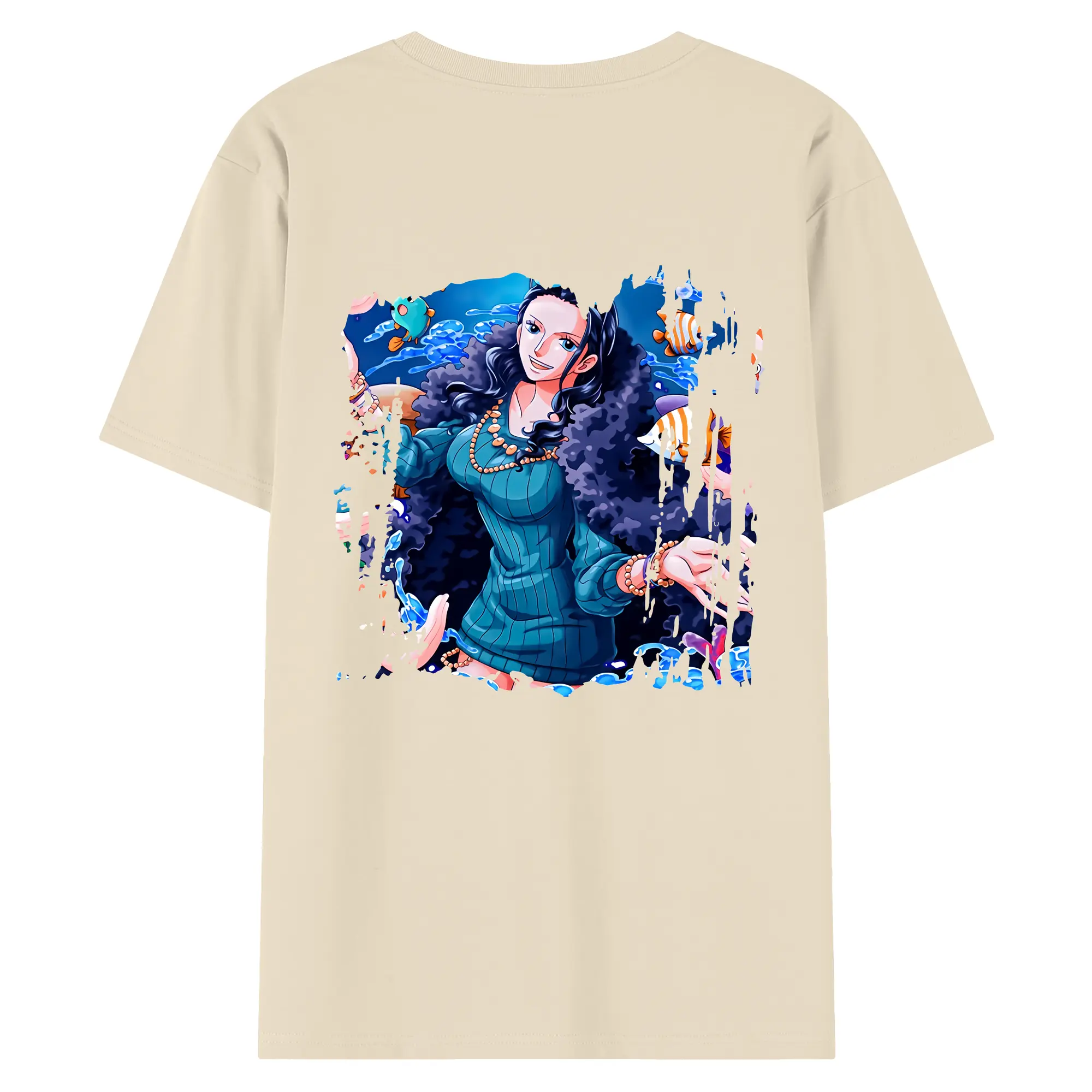 ワンピース グッズ ニコ・ロビン - 綿100% ヴィンテージ風 半袖Tシャツ ・ 背面プリント ・ 柔らか肌触り ・ 通気性 快適 ・ スポーツ カジュアル 外出用
