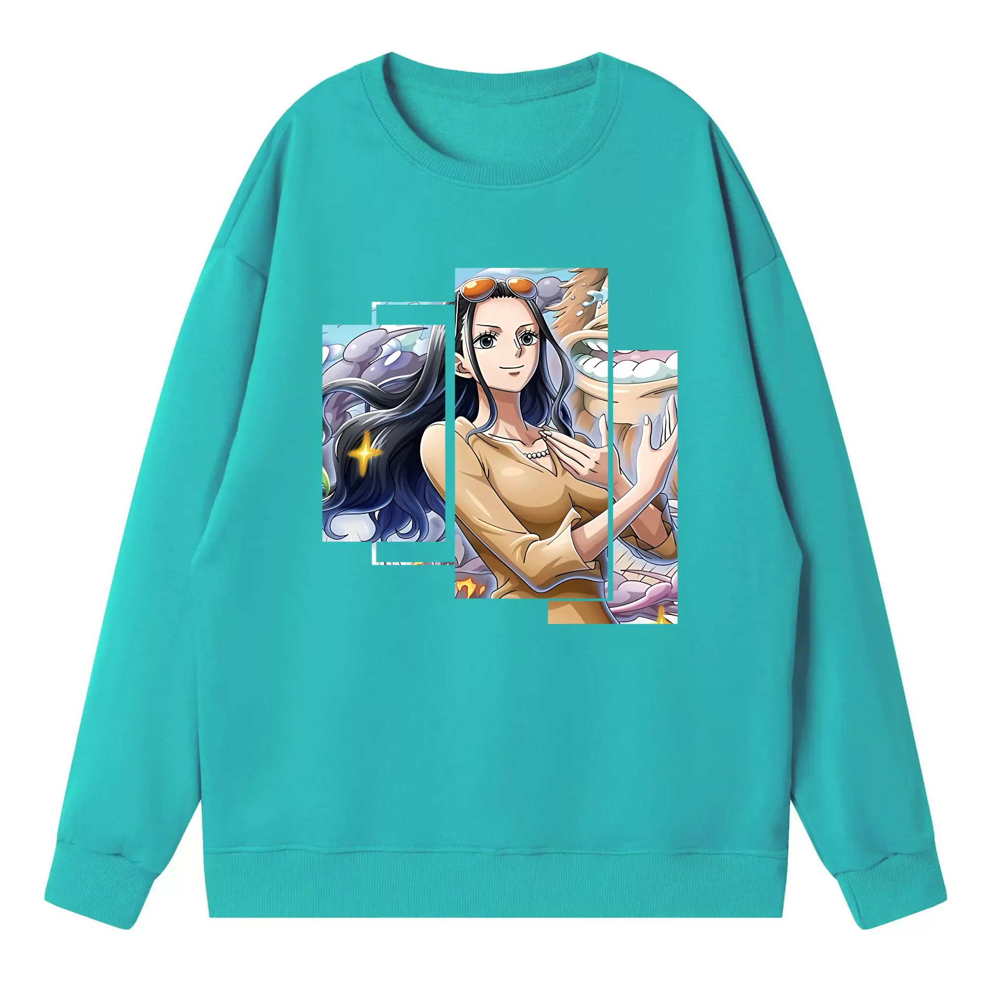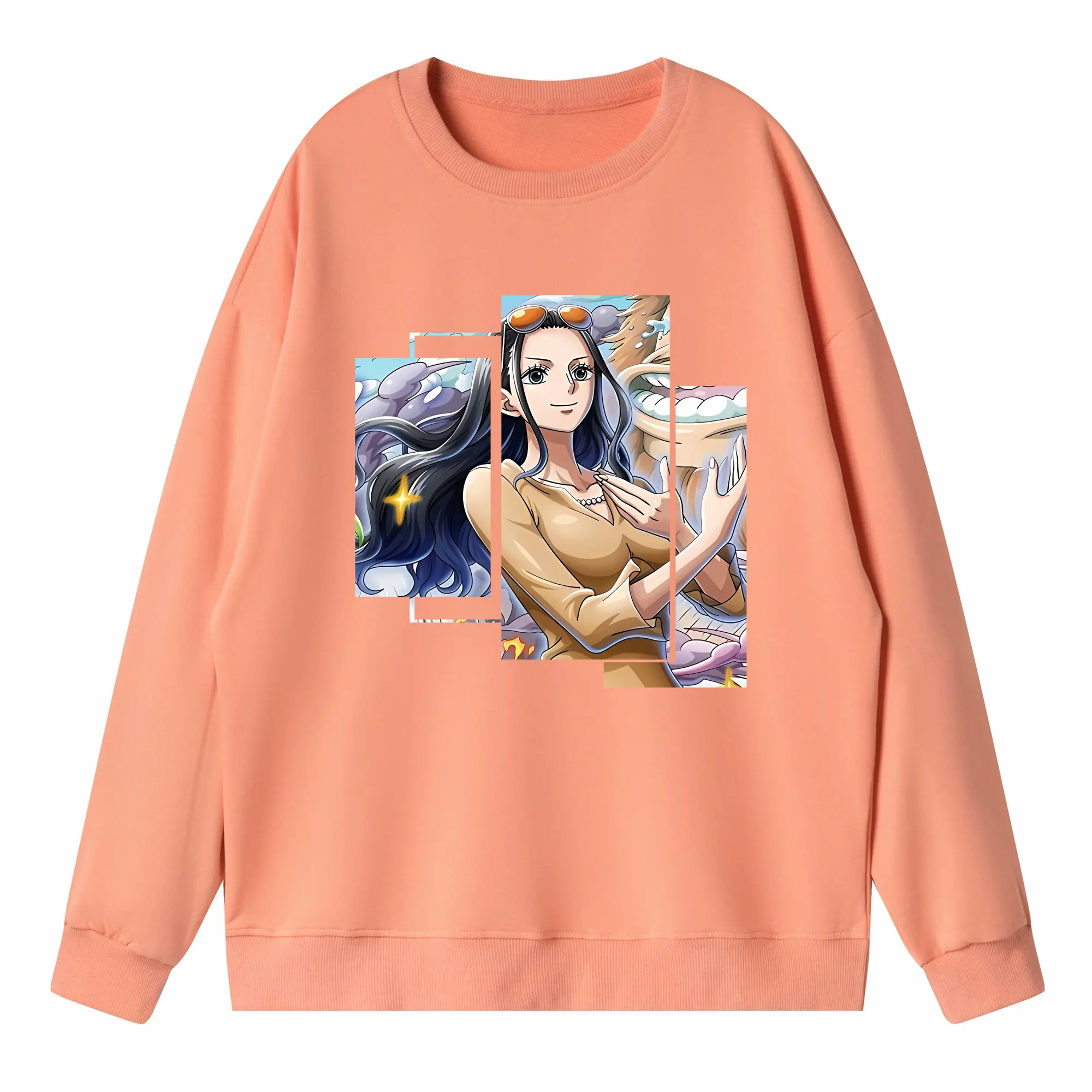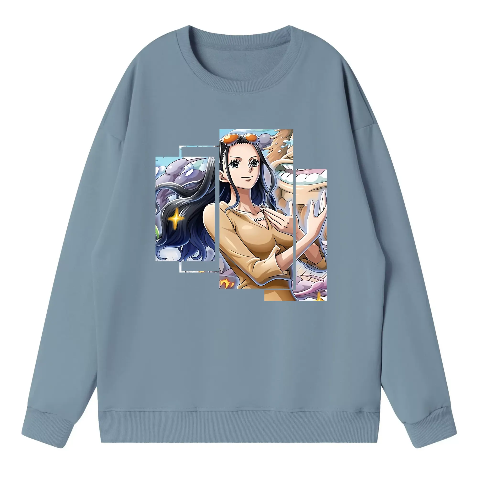 ワンピース グッズ ニコ・ロビン - 高品質 クルーネック スウェット ・ コットン59% ポリエステル41% ・ ユニセックス 長袖 トレーナー ・ カジュアル デイリー スポーツ 散歩用