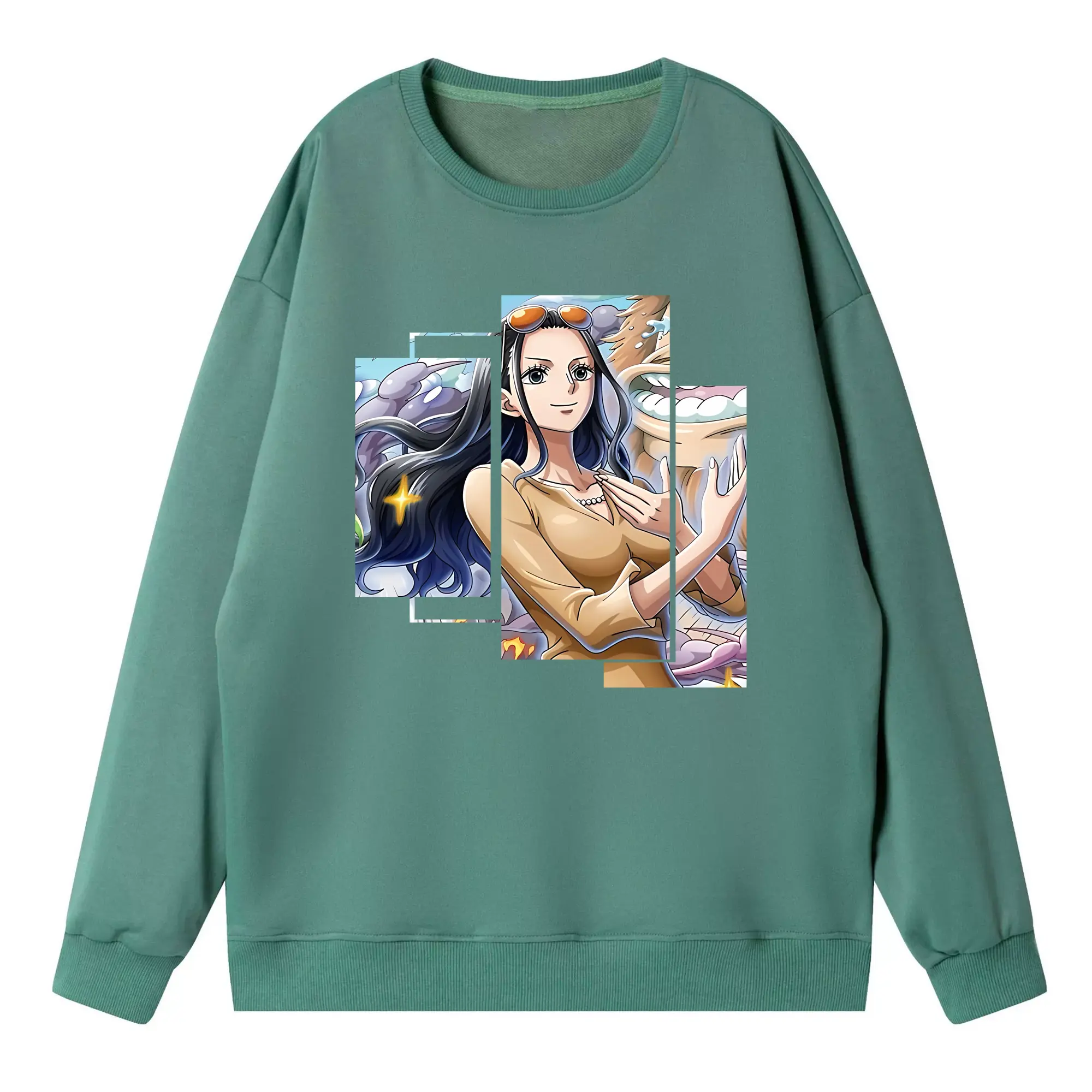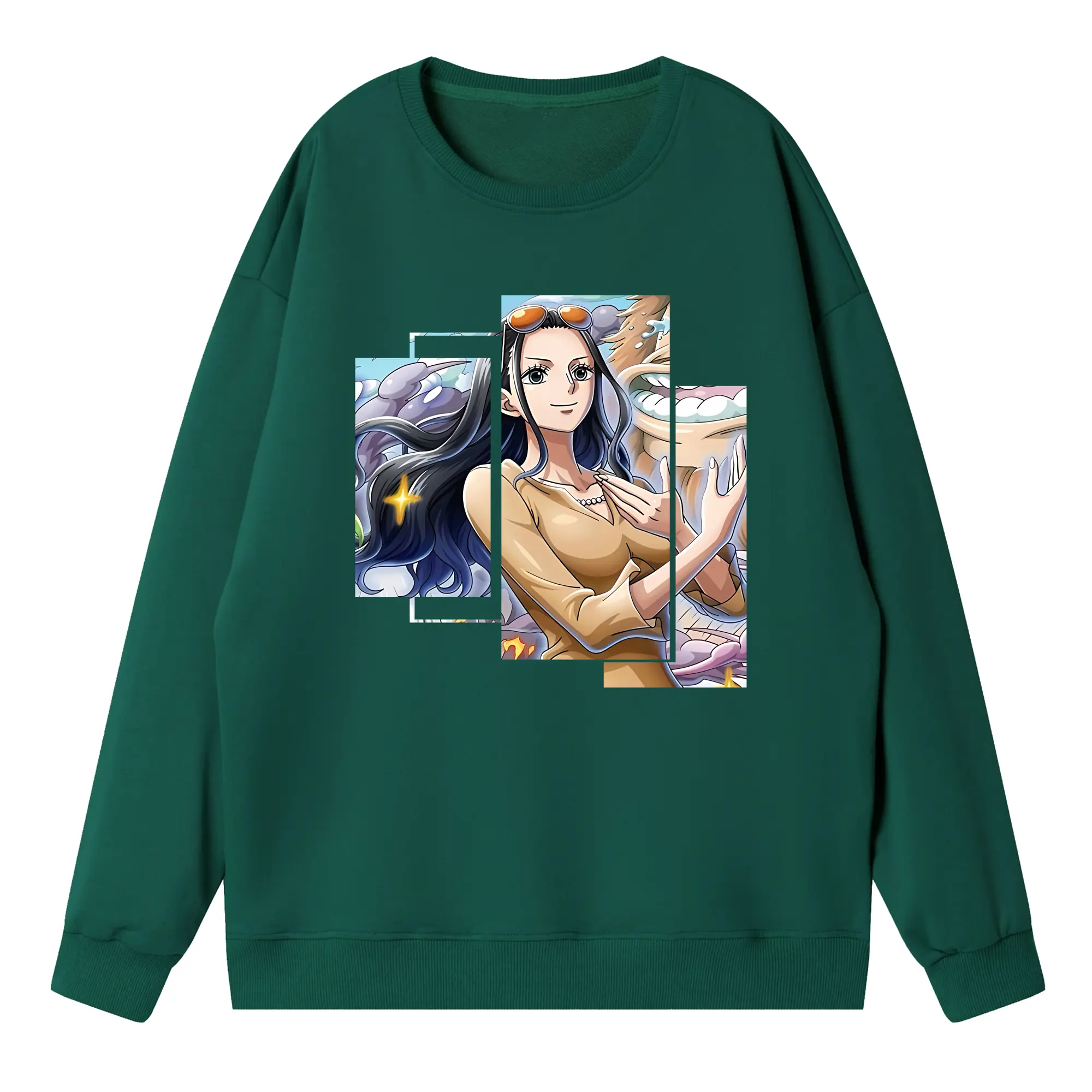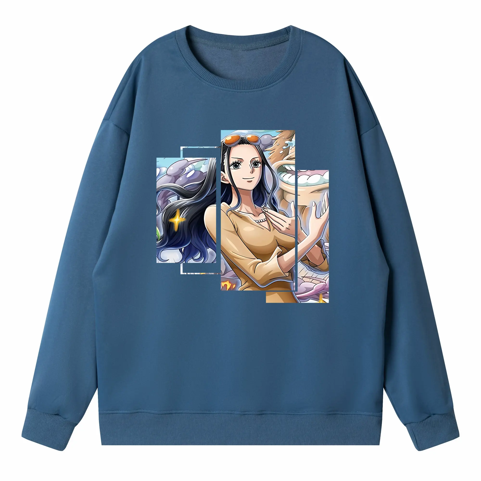 ワンピース グッズ ニコ・ロビン - 高品質 クルーネック スウェット ・ コットン59% ポリエステル41% ・ ユニセックス 長袖 トレーナー ・ カジュアル デイリー スポーツ 散歩用