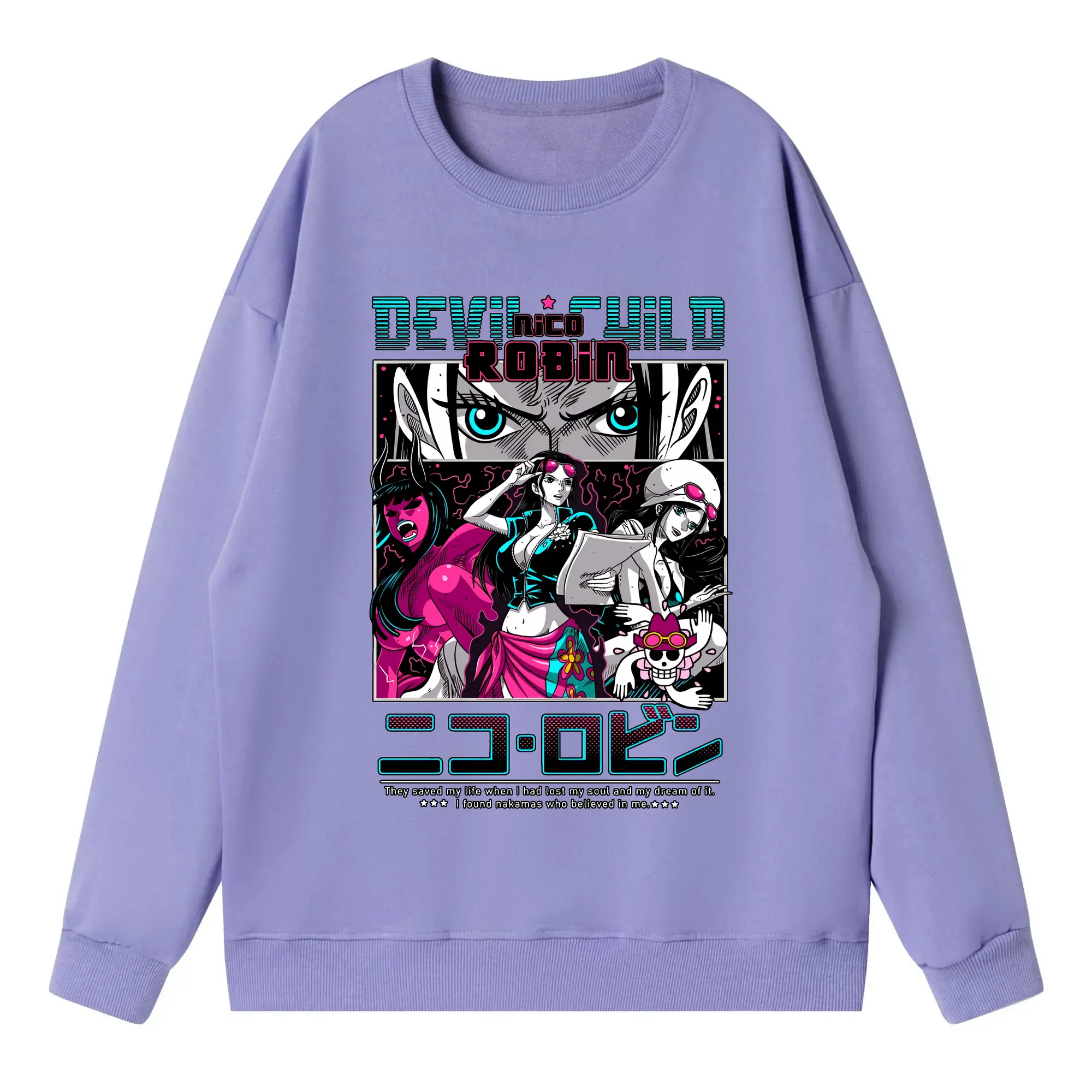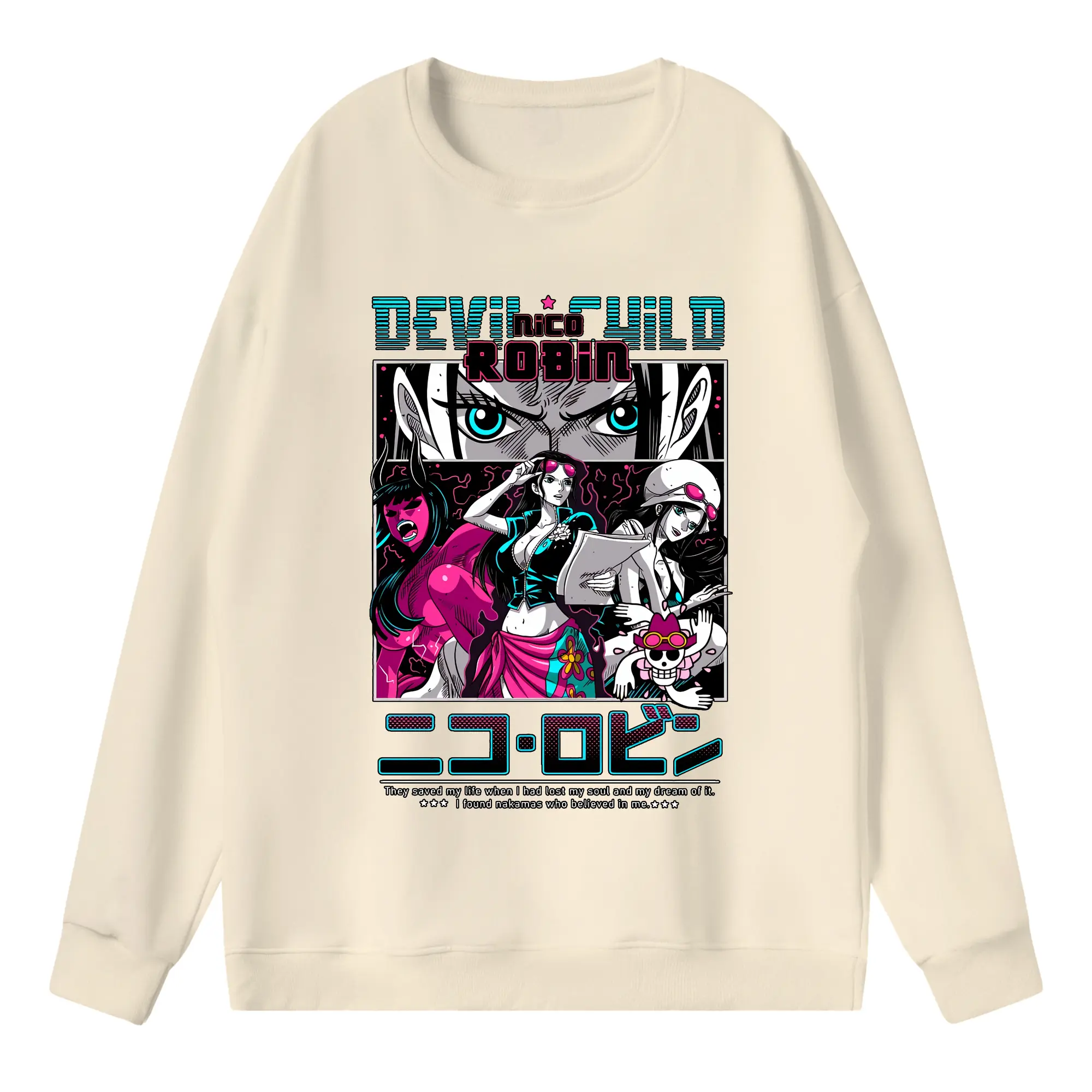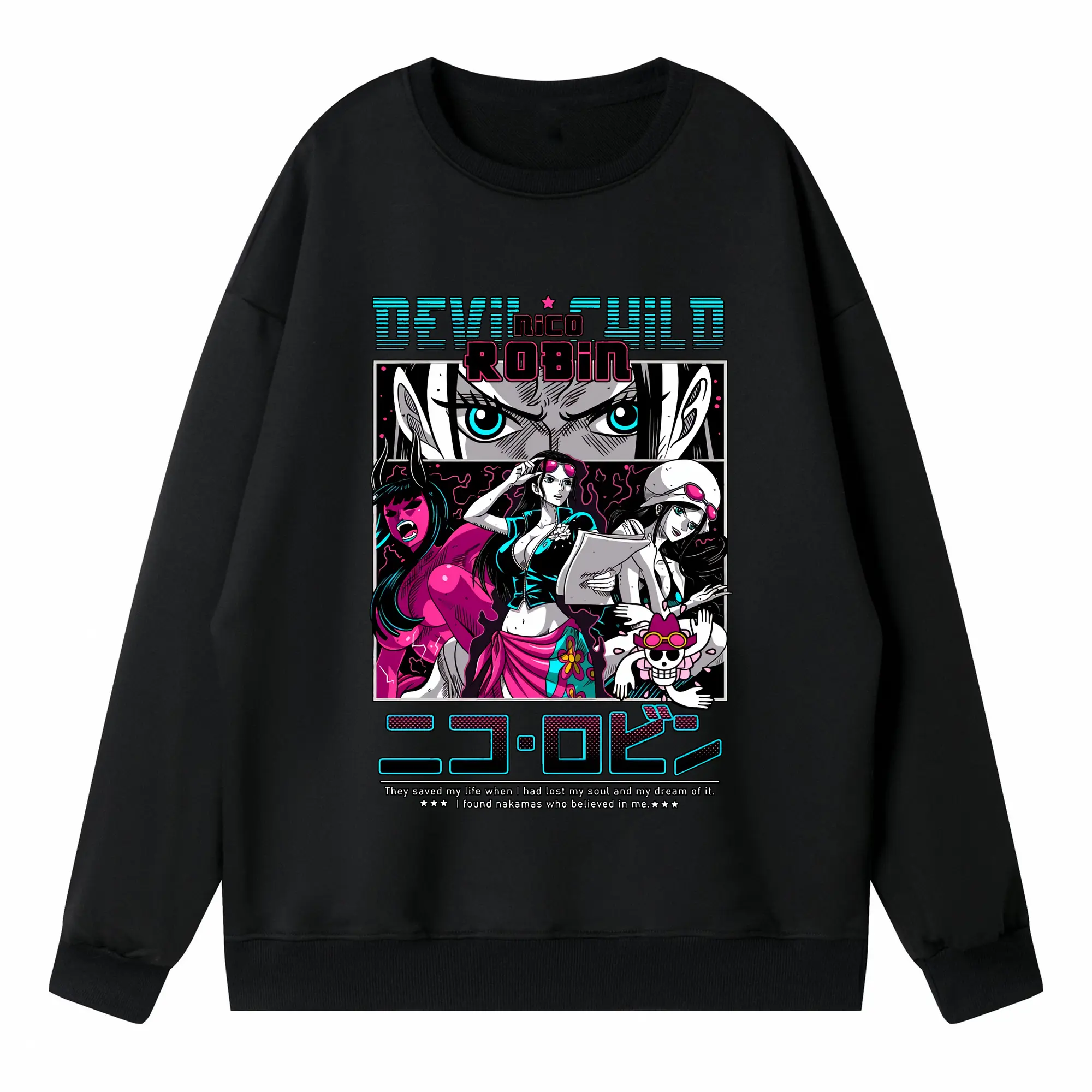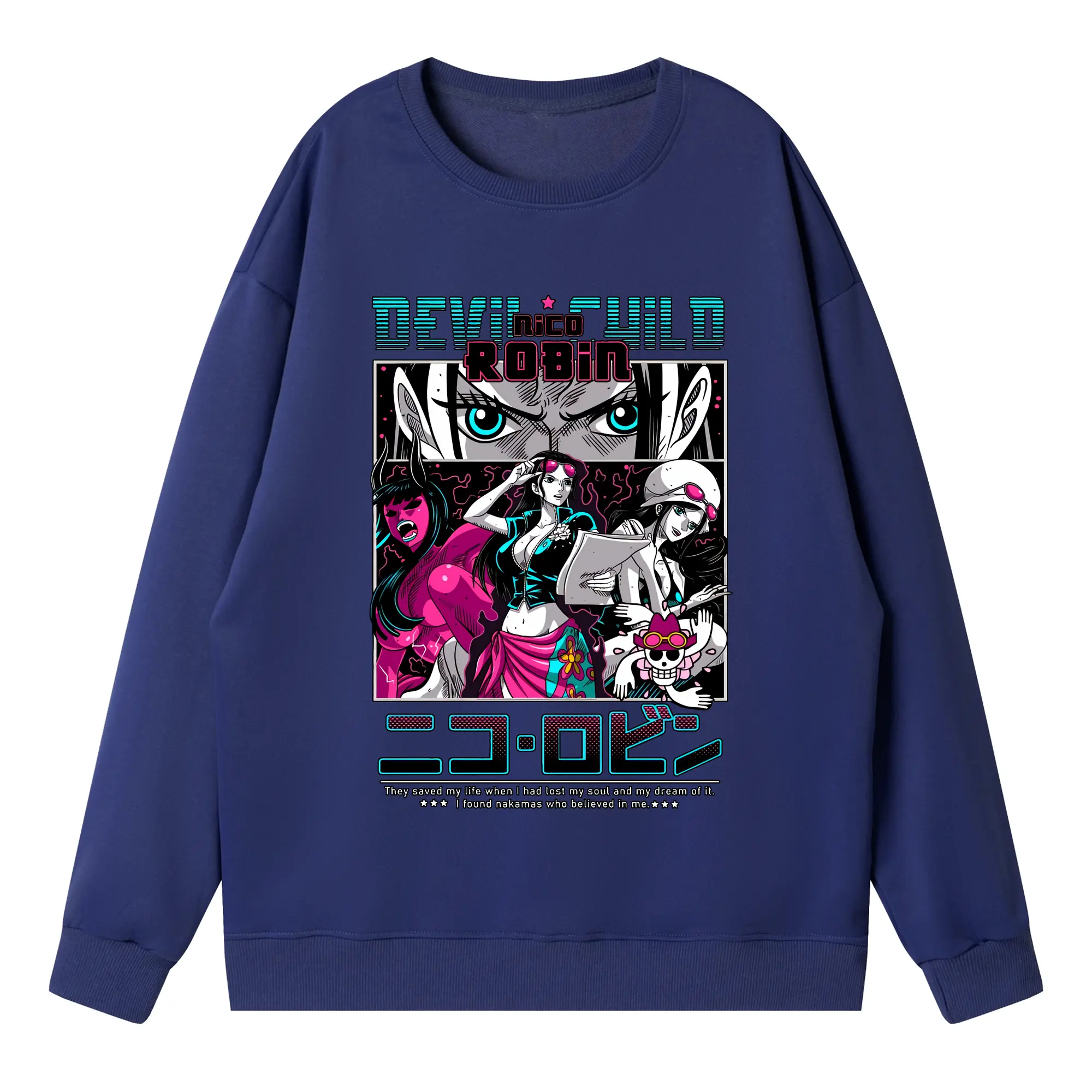 ワンピース グッズ ニコ・ロビン - 高品質 クルーネック スウェット ・ コットン59% ポリエステル41% ・ ユニセックス 長袖 トレーナー ・ カジュアル デイリー スポーツ 散歩用