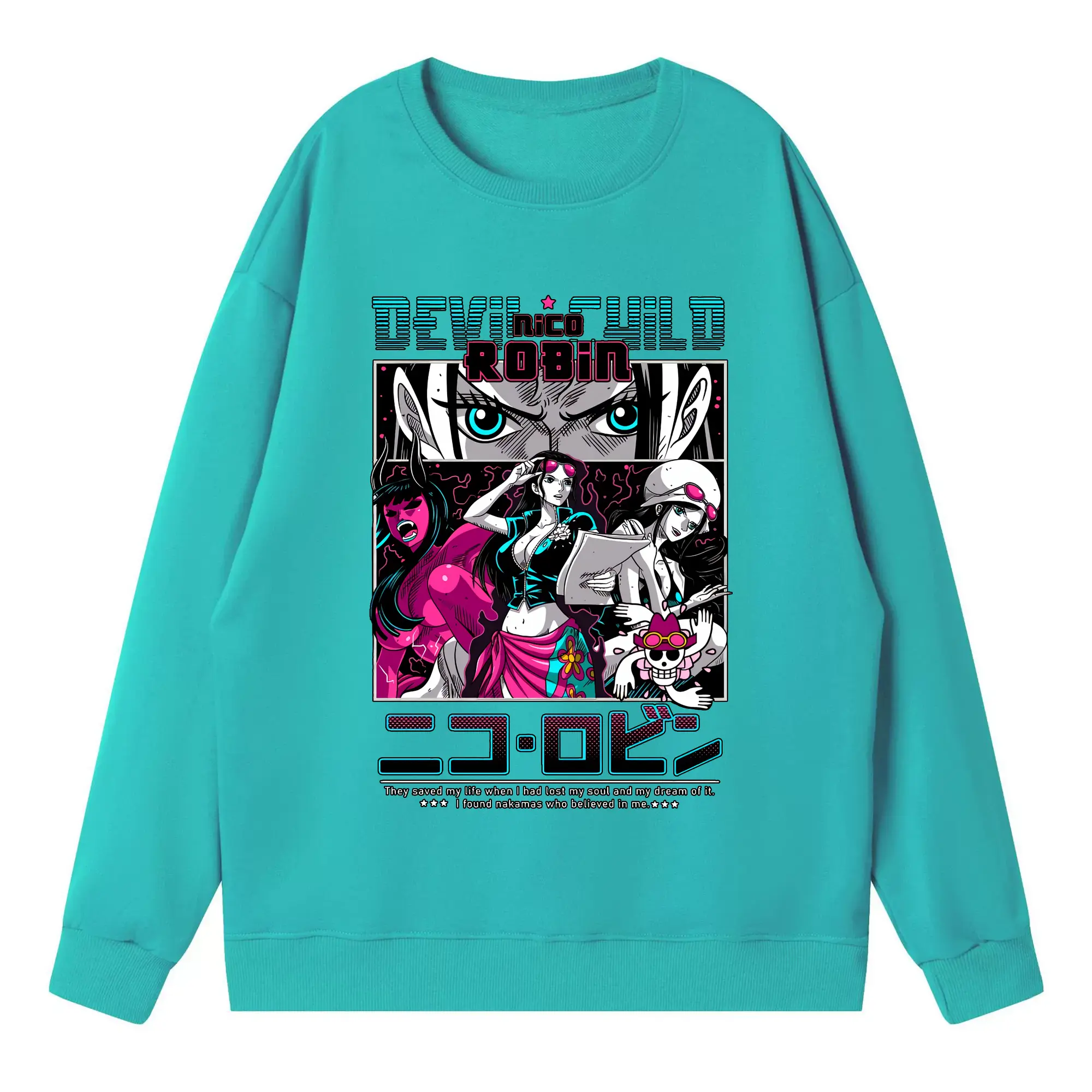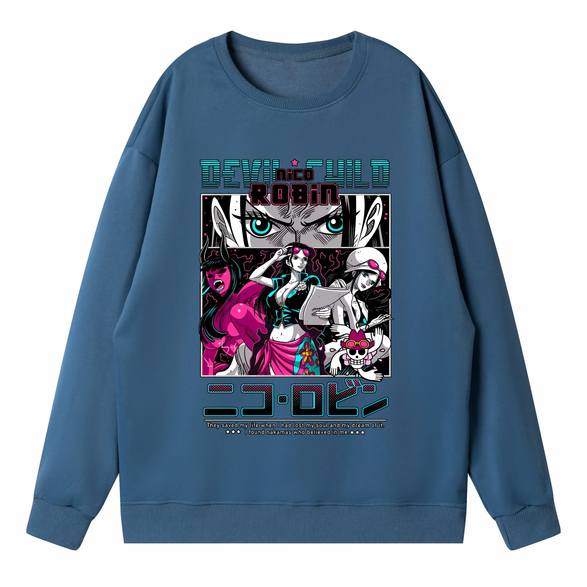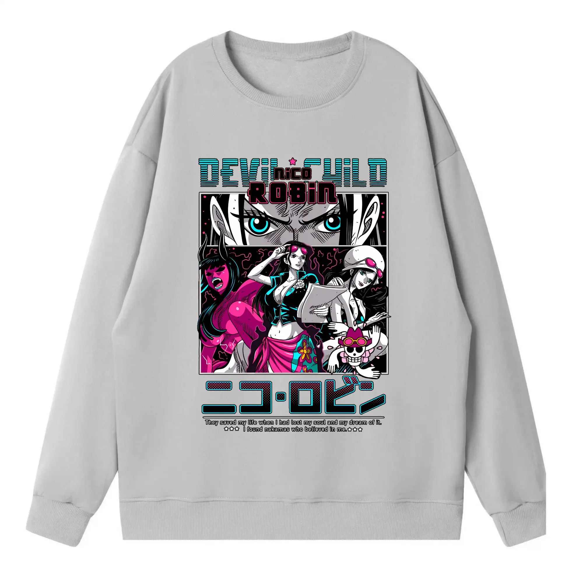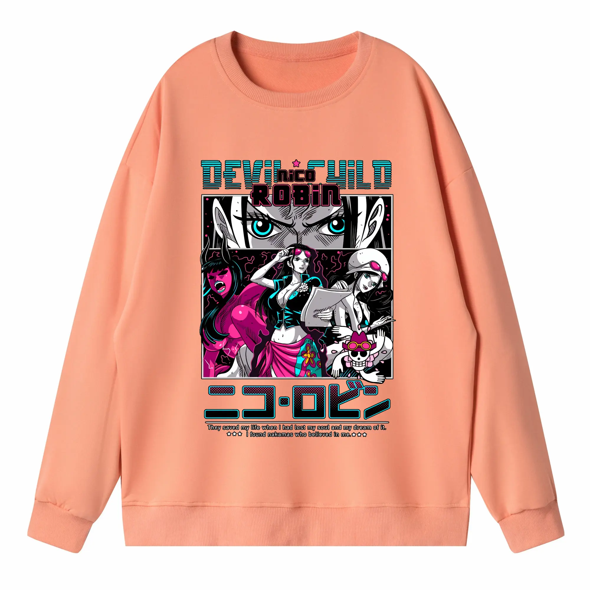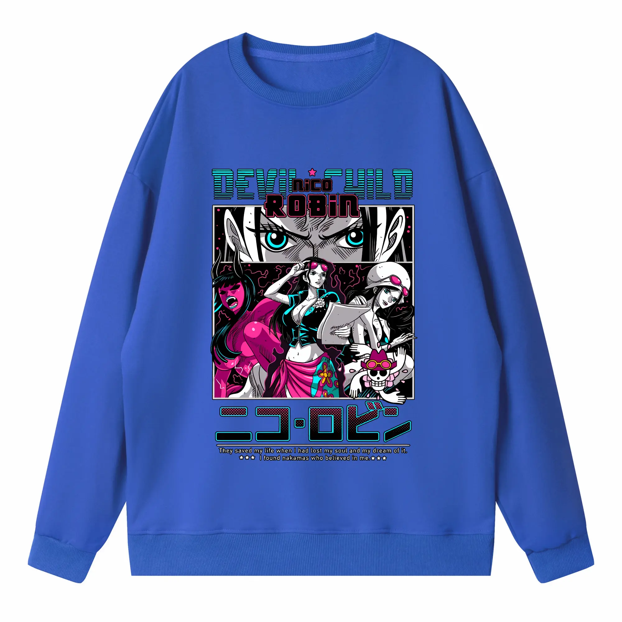 ワンピース グッズ ニコ・ロビン - 高品質 クルーネック スウェット ・ コットン59% ポリエステル41% ・ ユニセックス 長袖 トレーナー ・ カジュアル デイリー スポーツ 散歩用