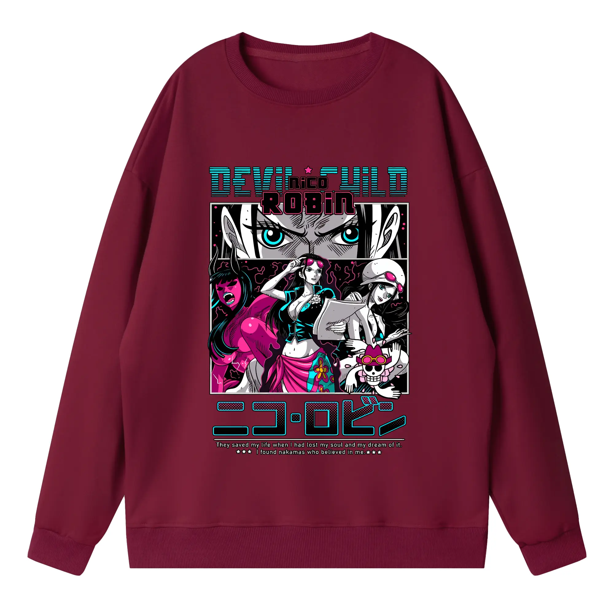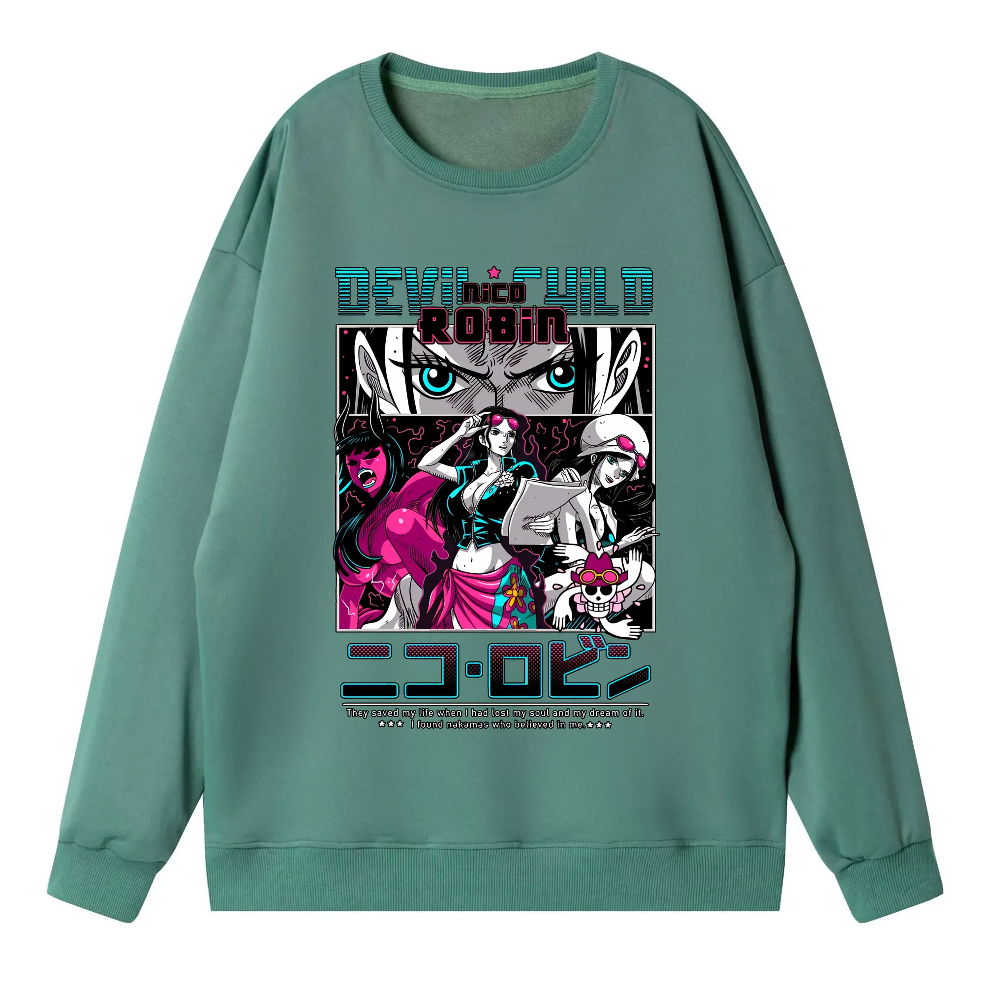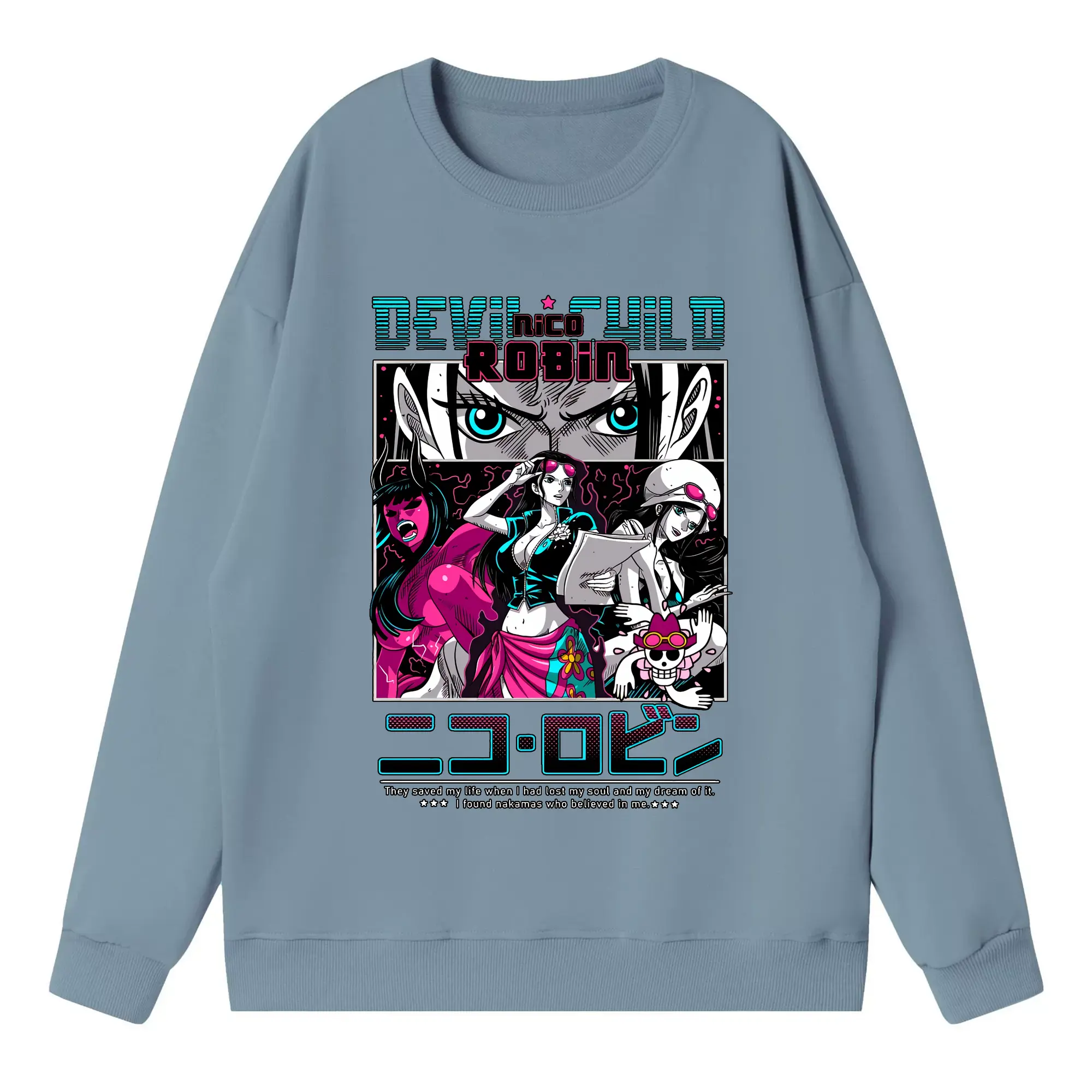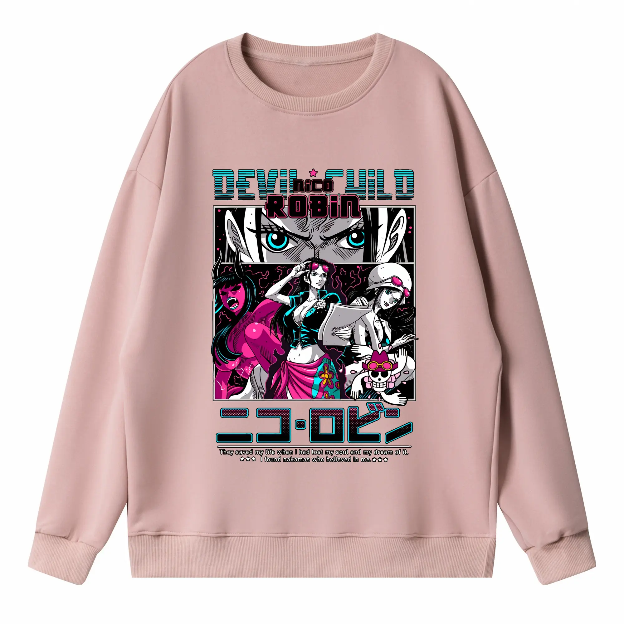 ワンピース グッズ ニコ・ロビン - 高品質 クルーネック スウェット ・ コットン59% ポリエステル41% ・ ユニセックス 長袖 トレーナー ・ カジュアル デイリー スポーツ 散歩用