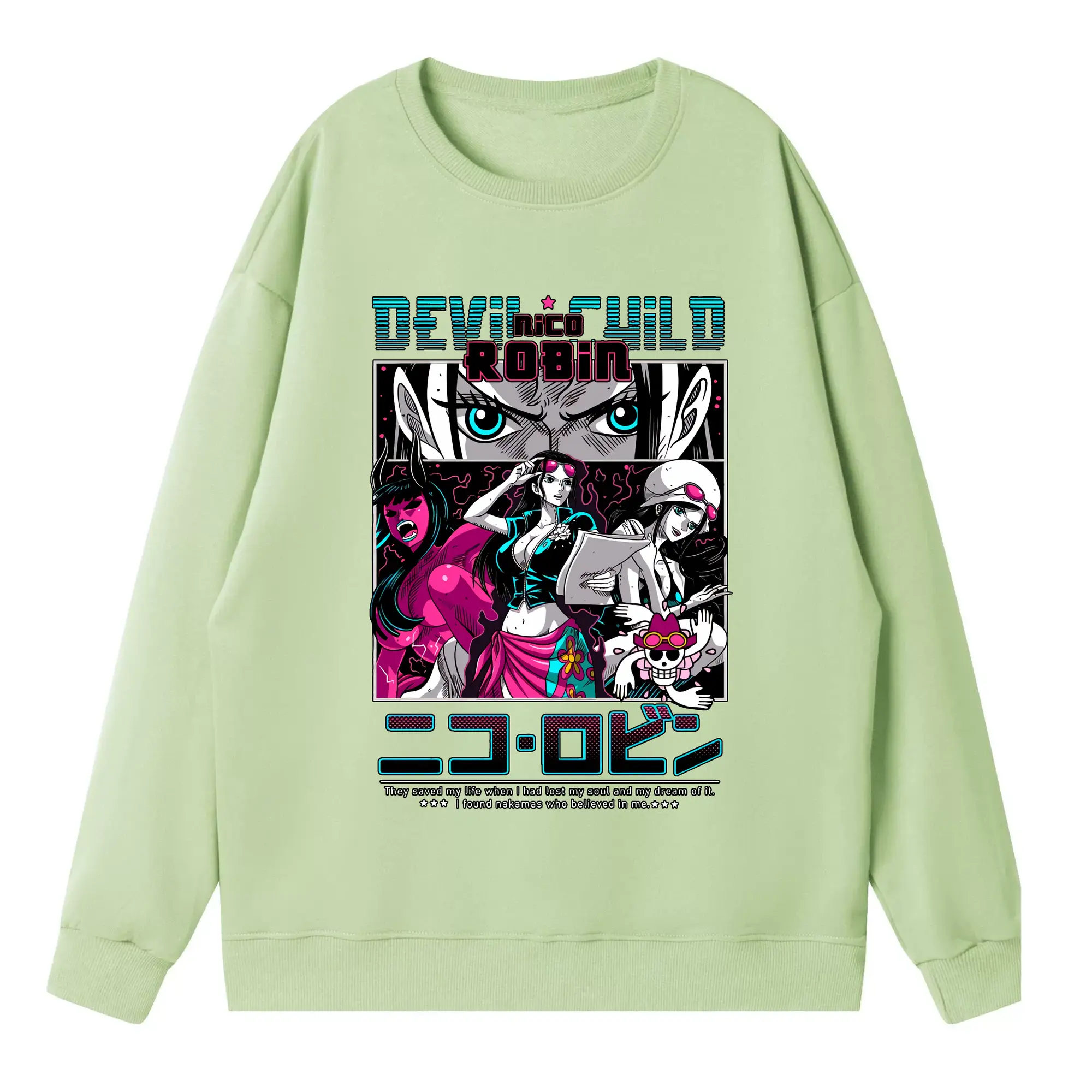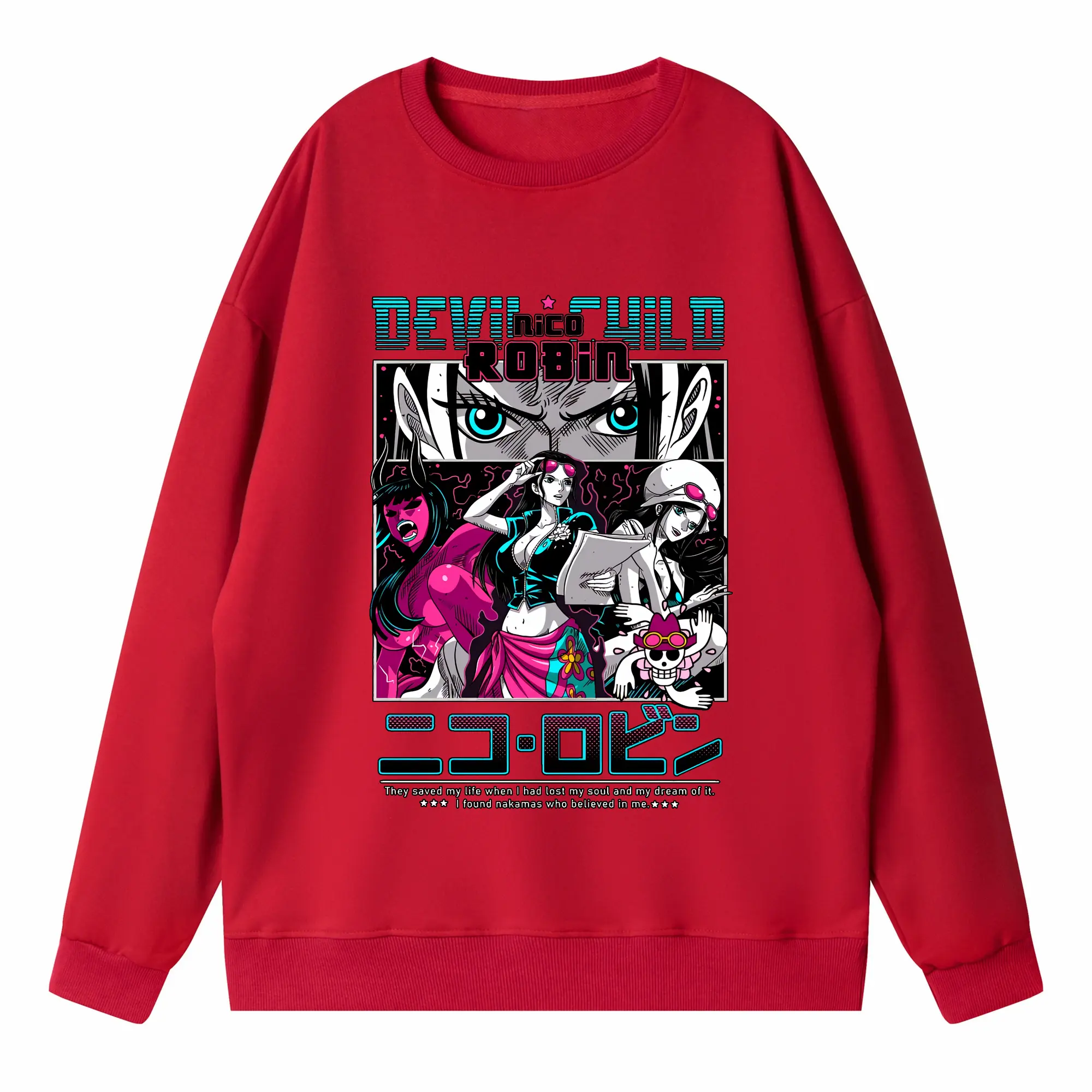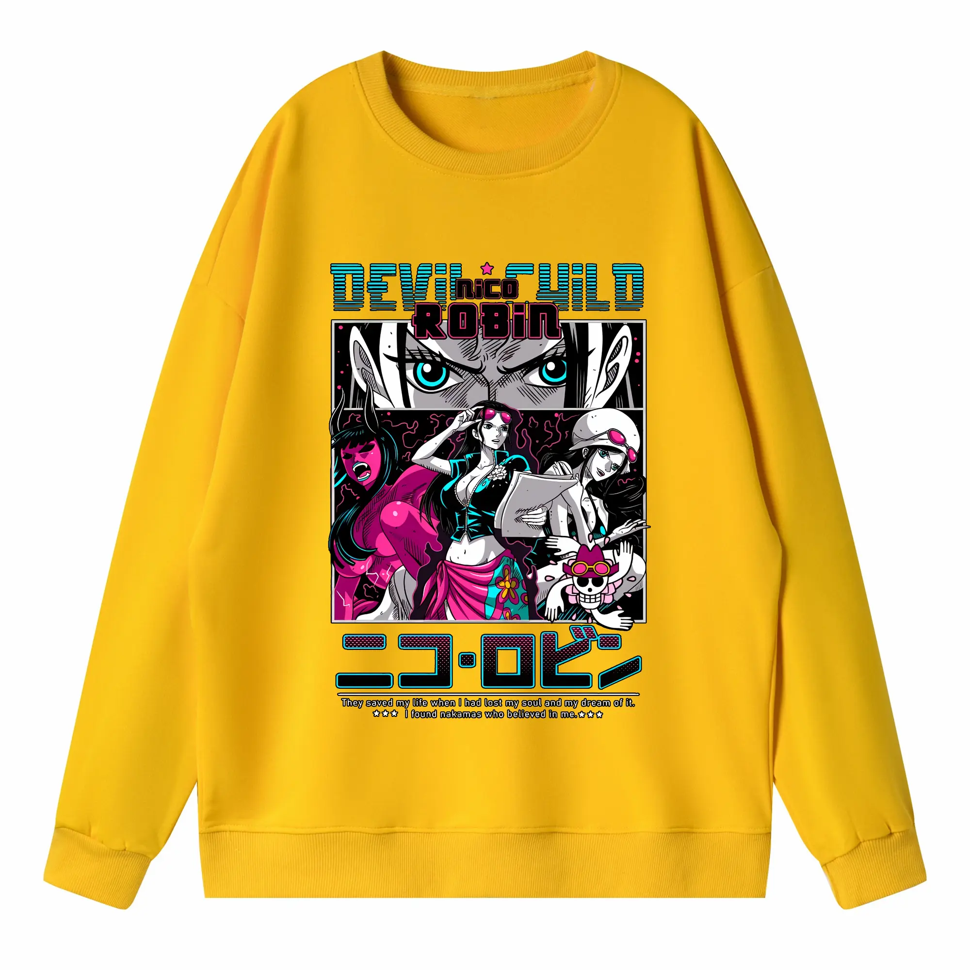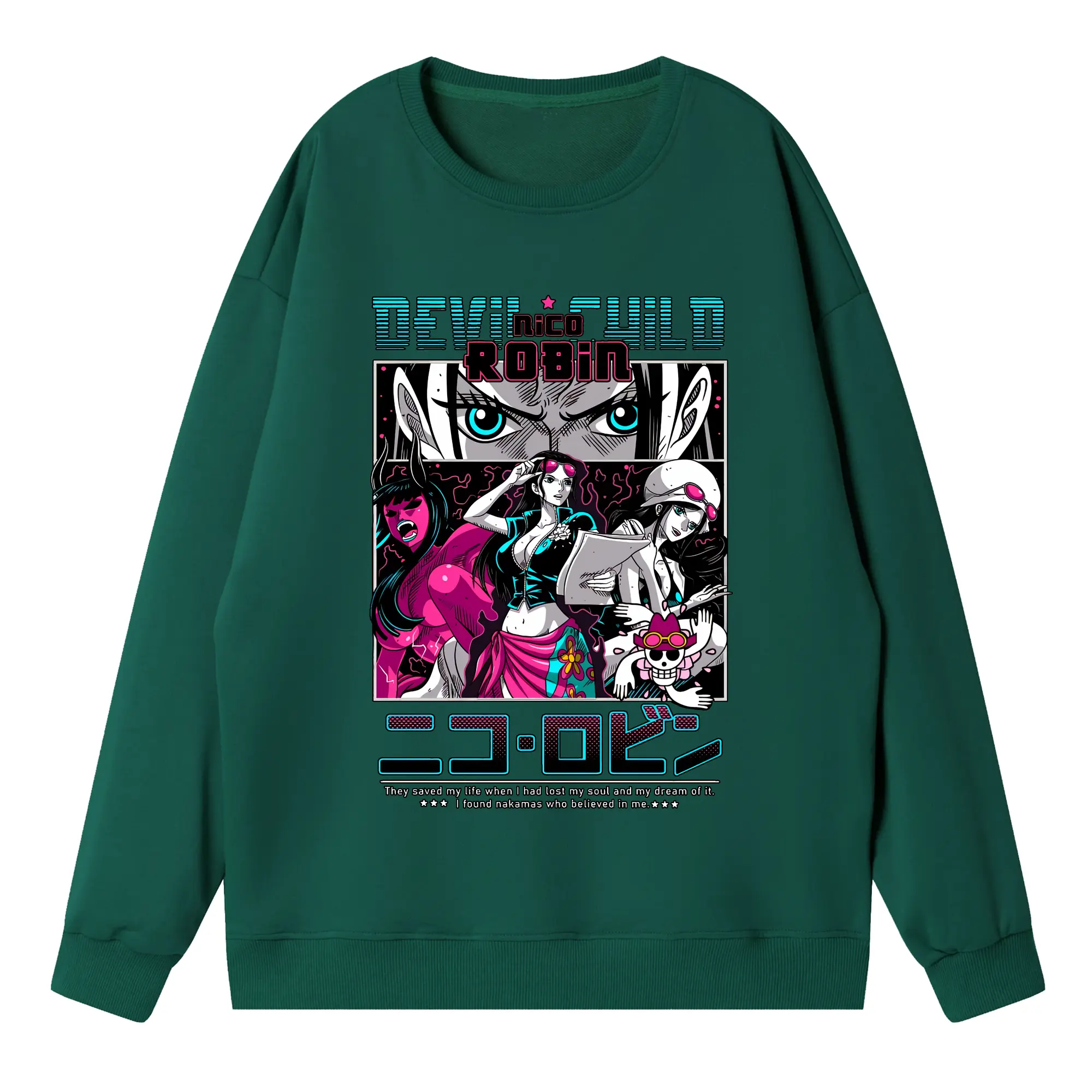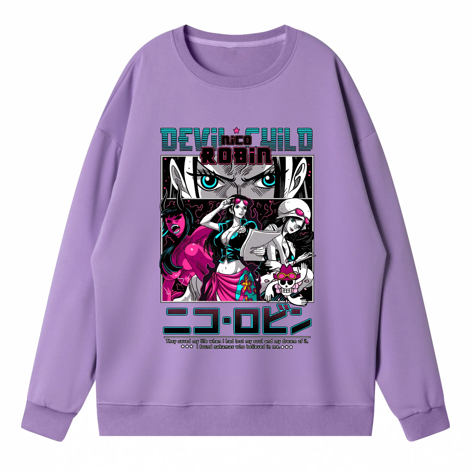 ワンピース グッズ ニコ・ロビン - 高品質 クルーネック スウェット ・ コットン59% ポリエステル41% ・ ユニセックス 長袖 トレーナー ・ カジュアル デイリー スポーツ 散歩用