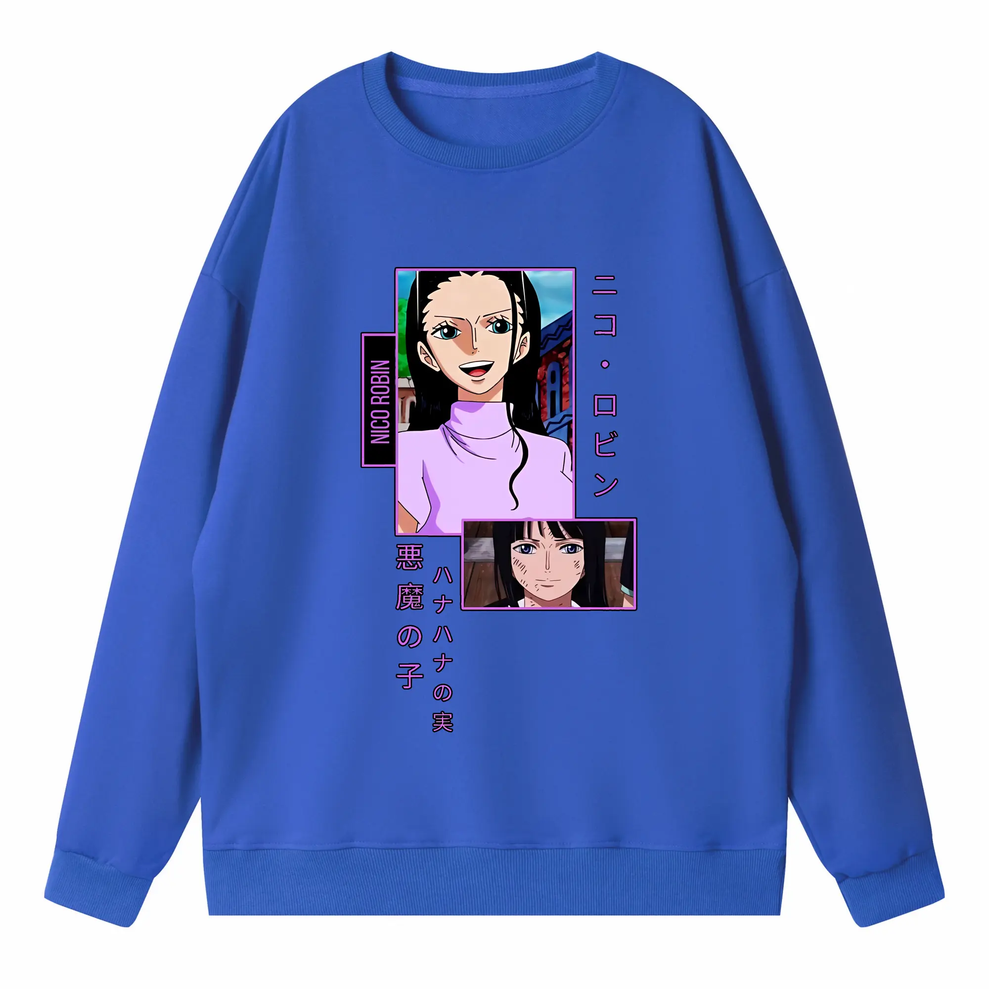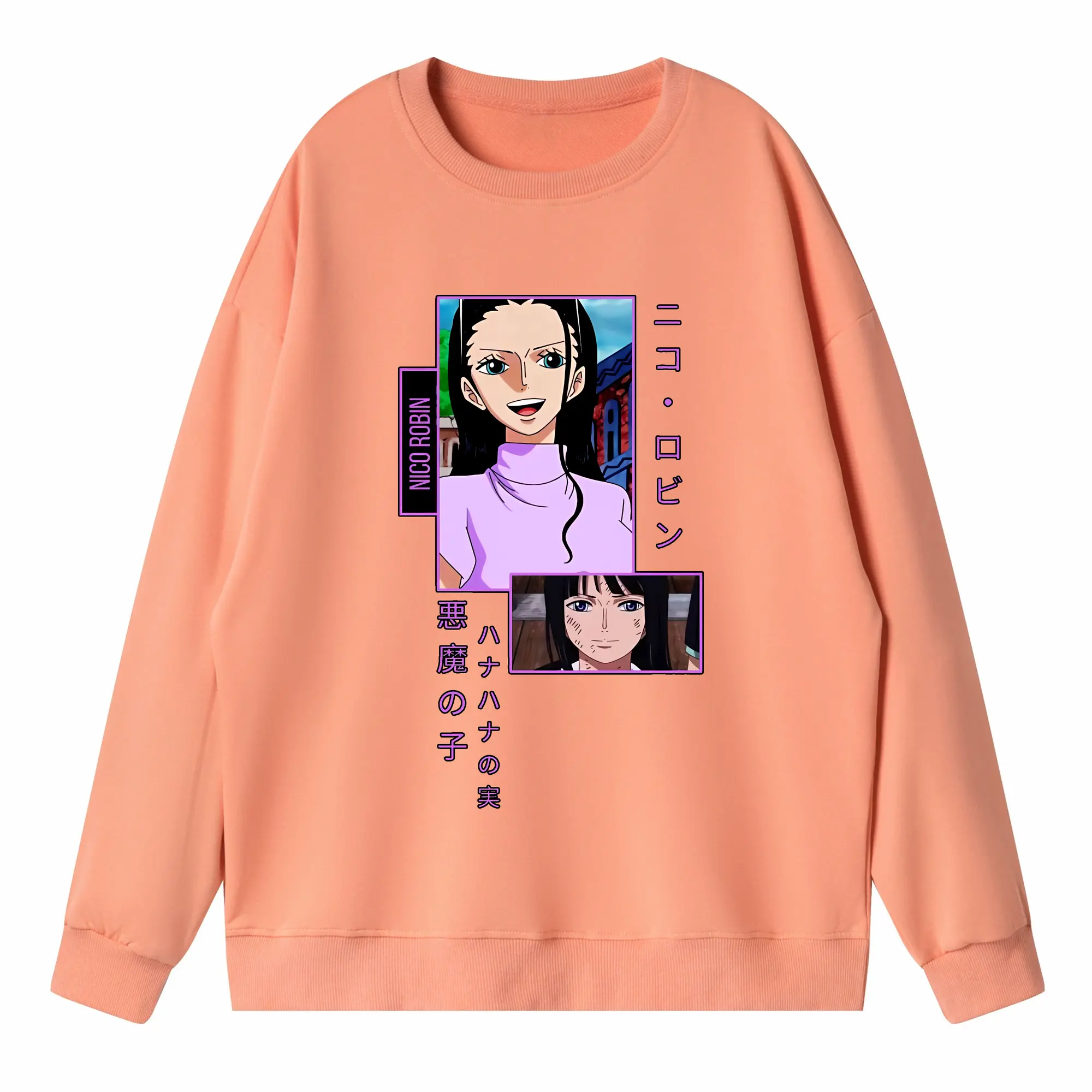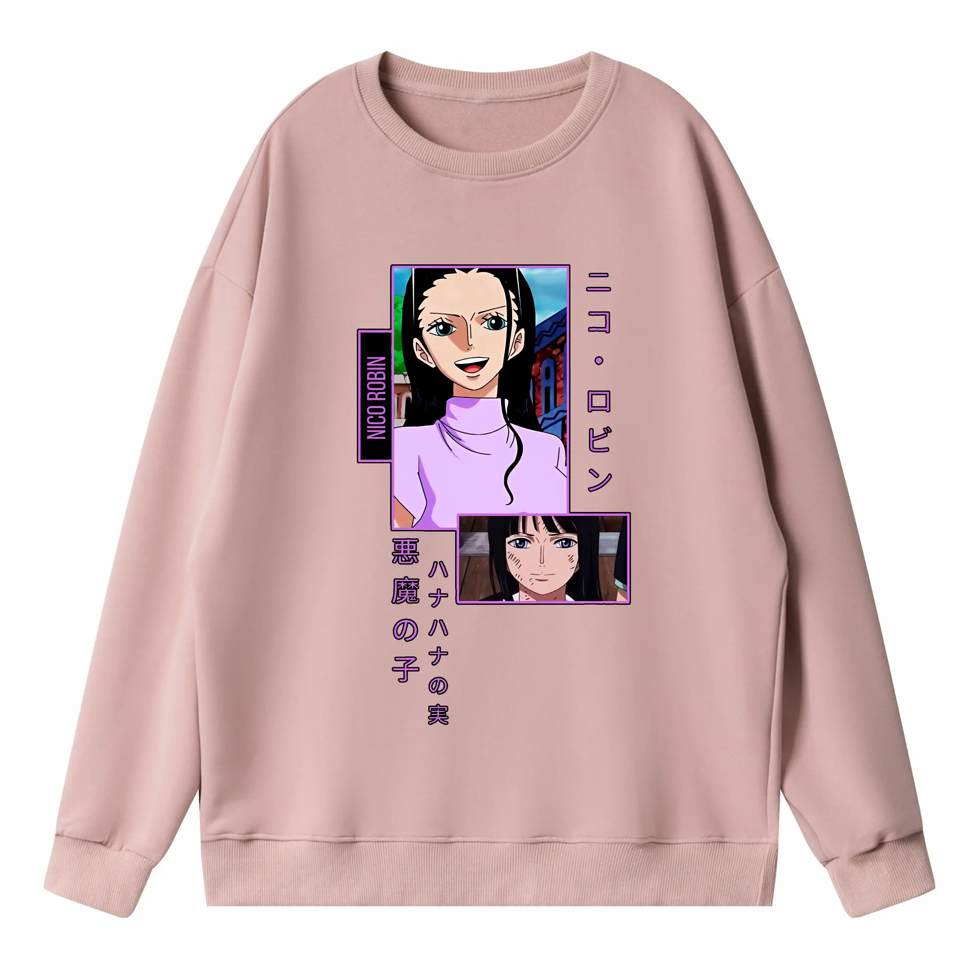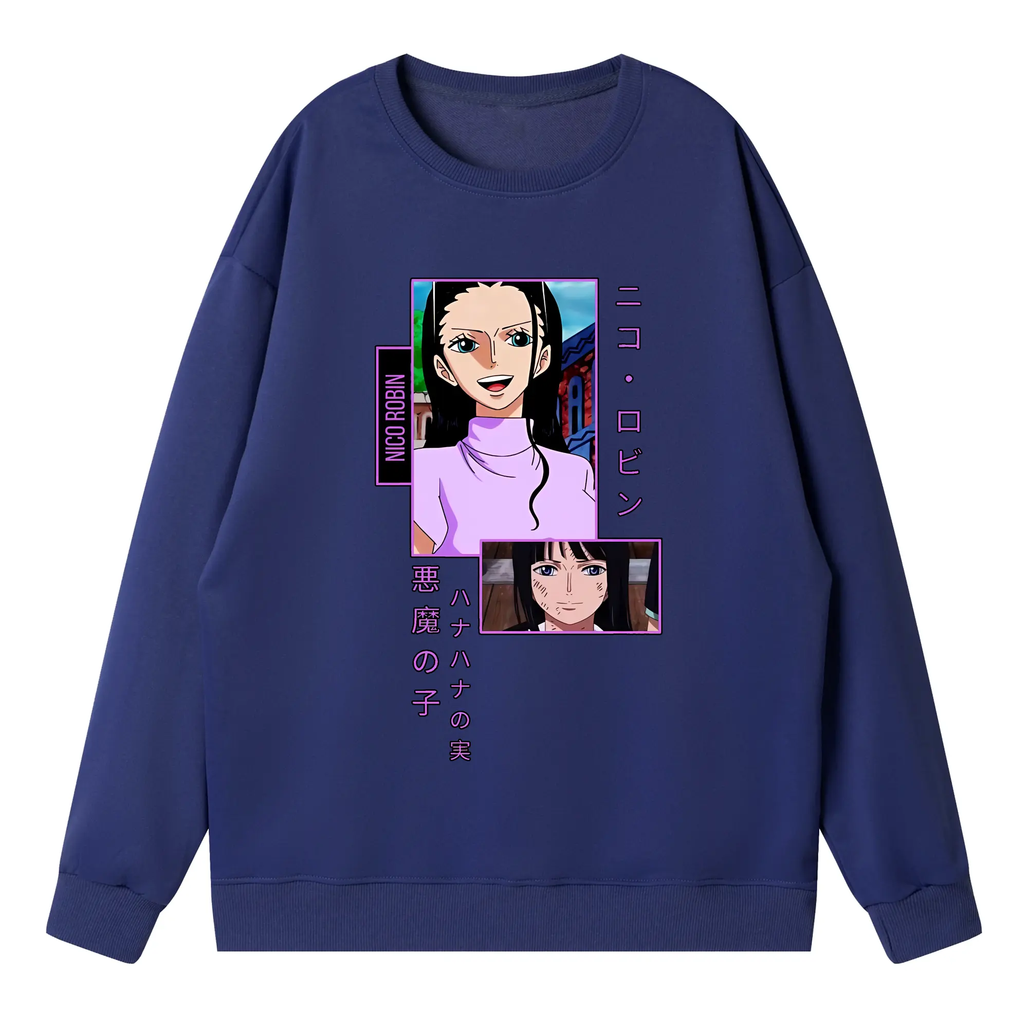 ワンピース グッズ ニコ・ロビン - 高品質 クルーネック スウェット ・ コットン59% ポリエステル41% ・ ユニセックス 長袖 トレーナー ・ カジュアル デイリー スポーツ 散歩用