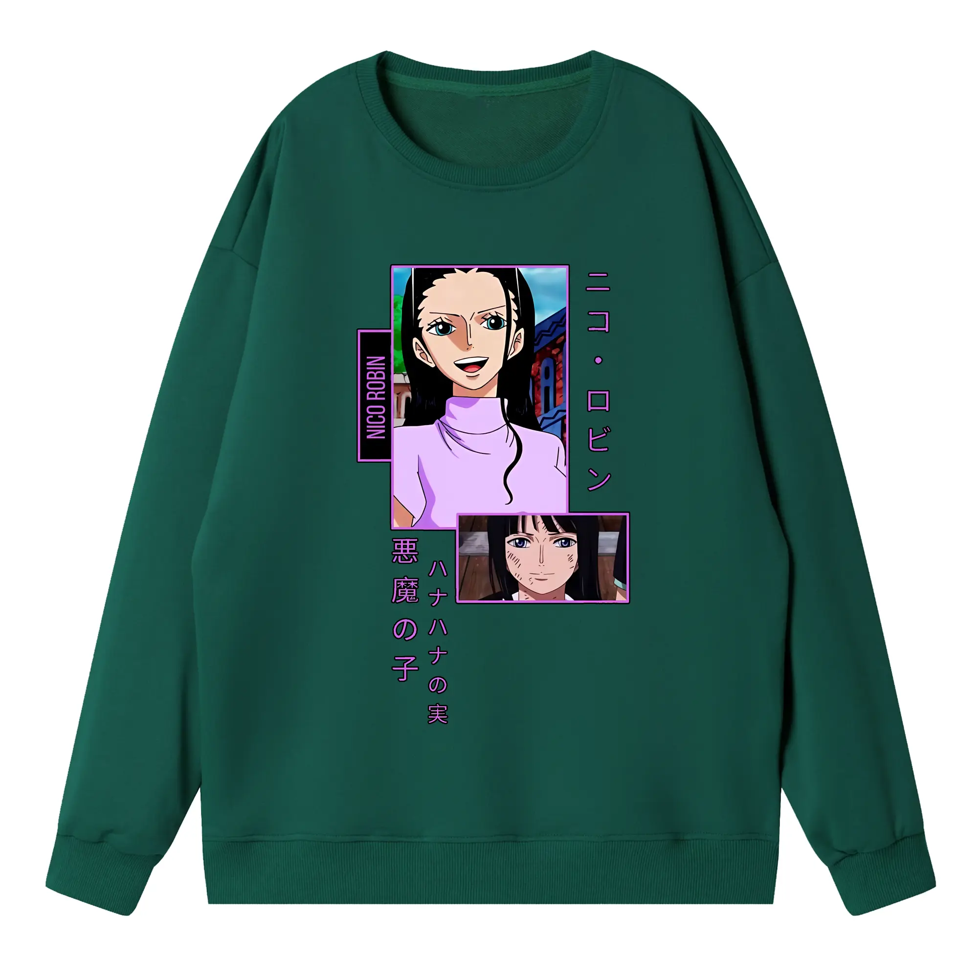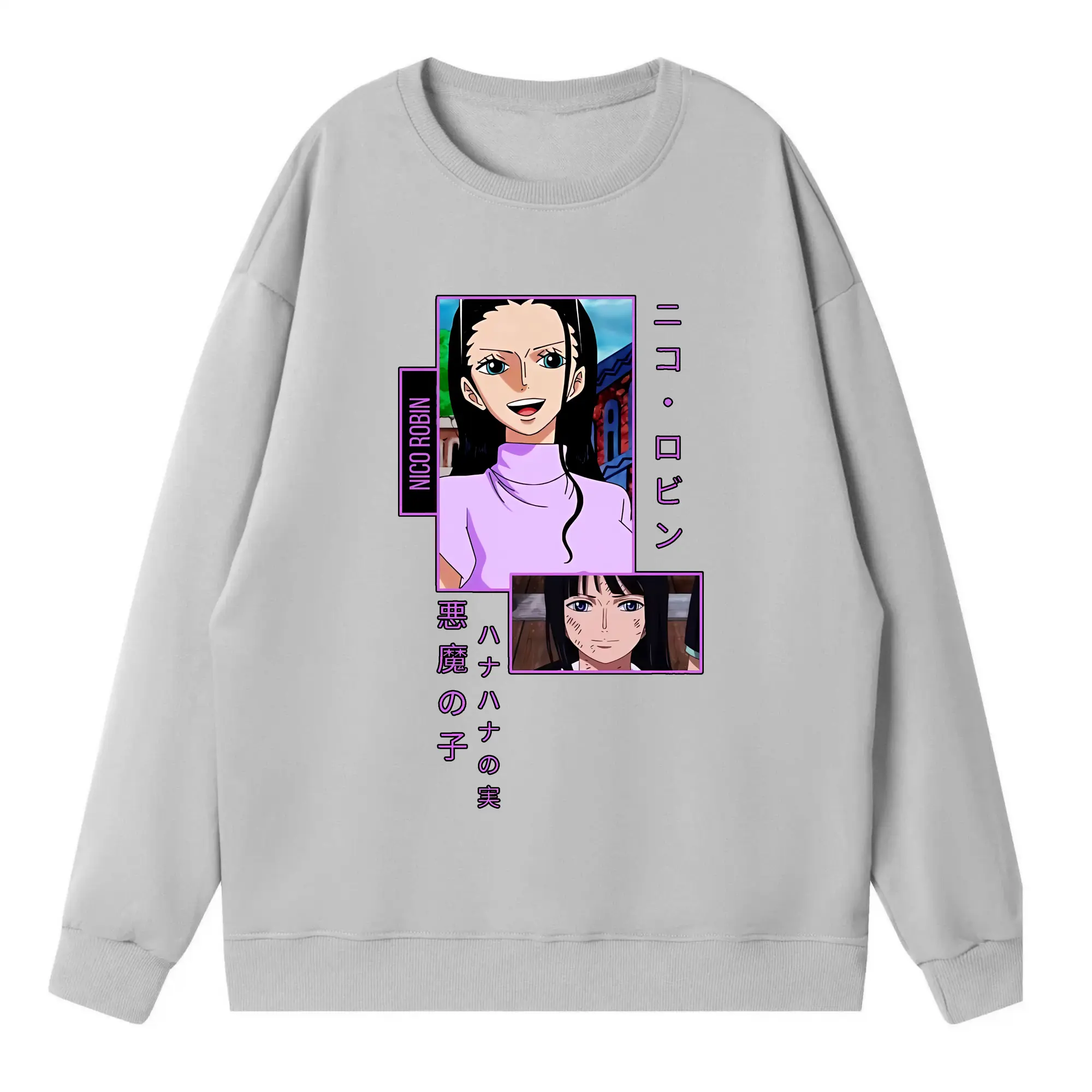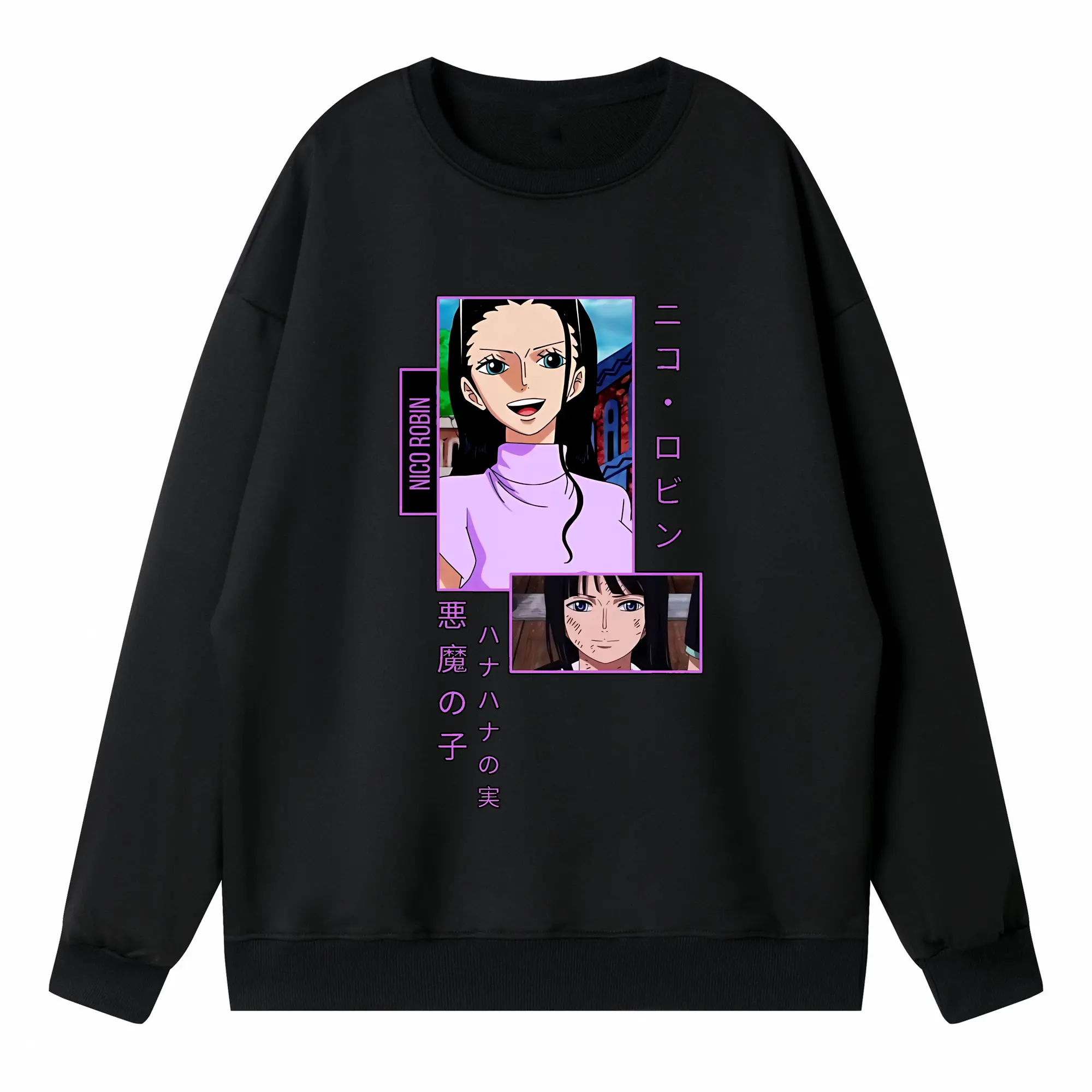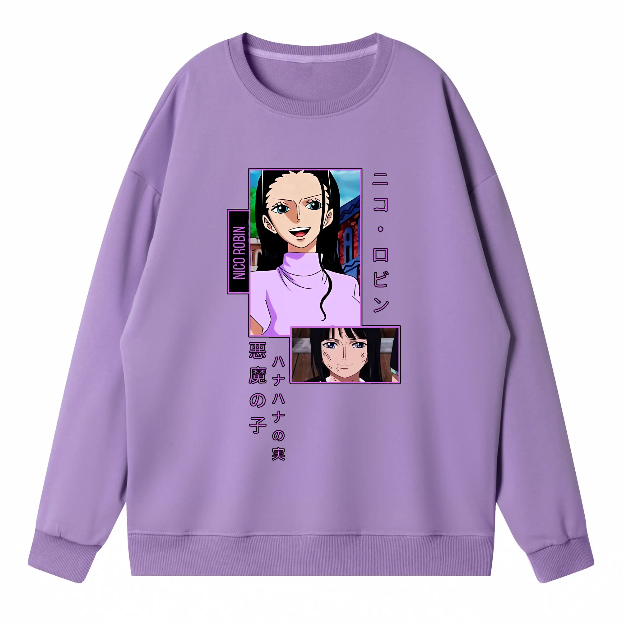 ワンピース グッズ ニコ・ロビン - 高品質 クルーネック スウェット ・ コットン59% ポリエステル41% ・ ユニセックス 長袖 トレーナー ・ カジュアル デイリー スポーツ 散歩用