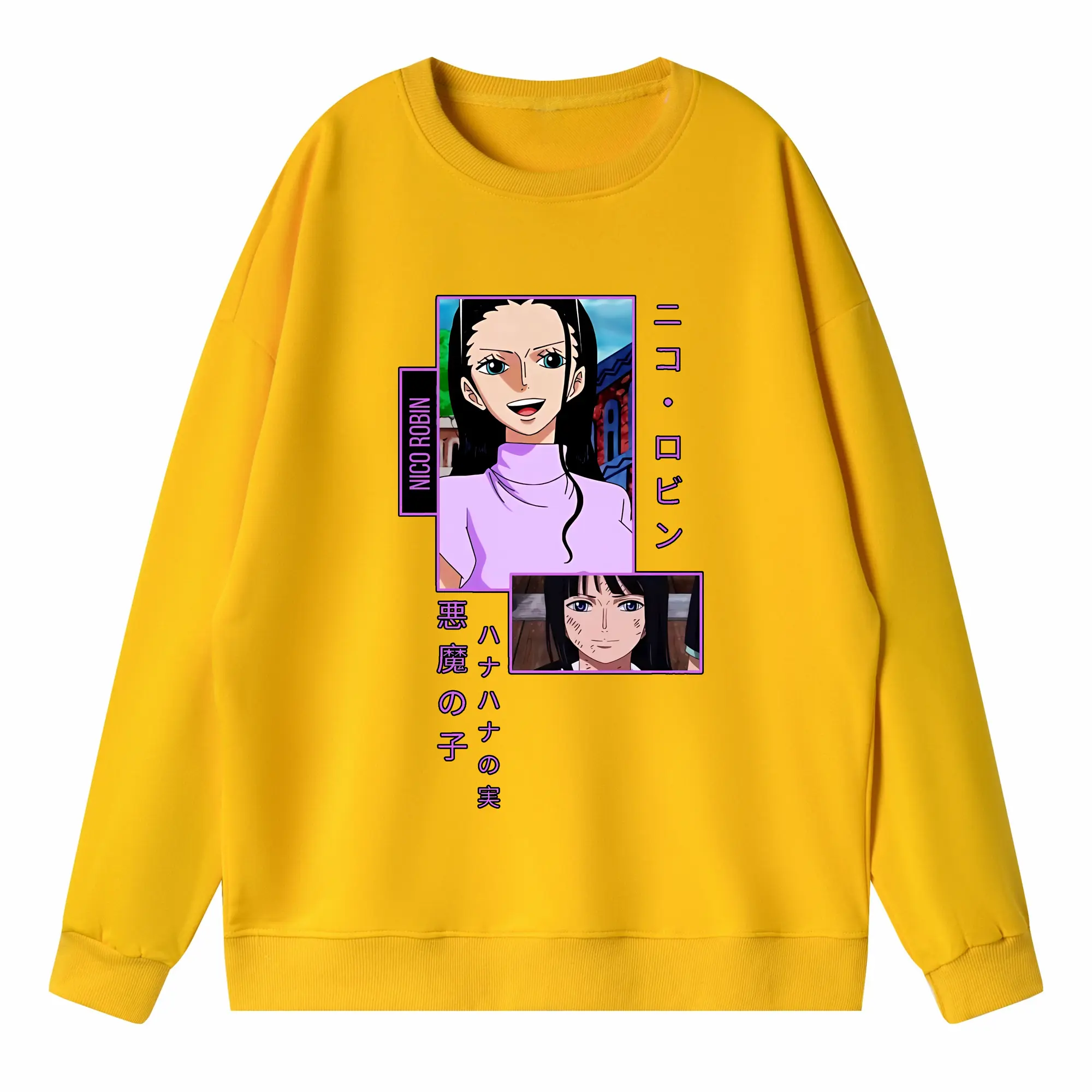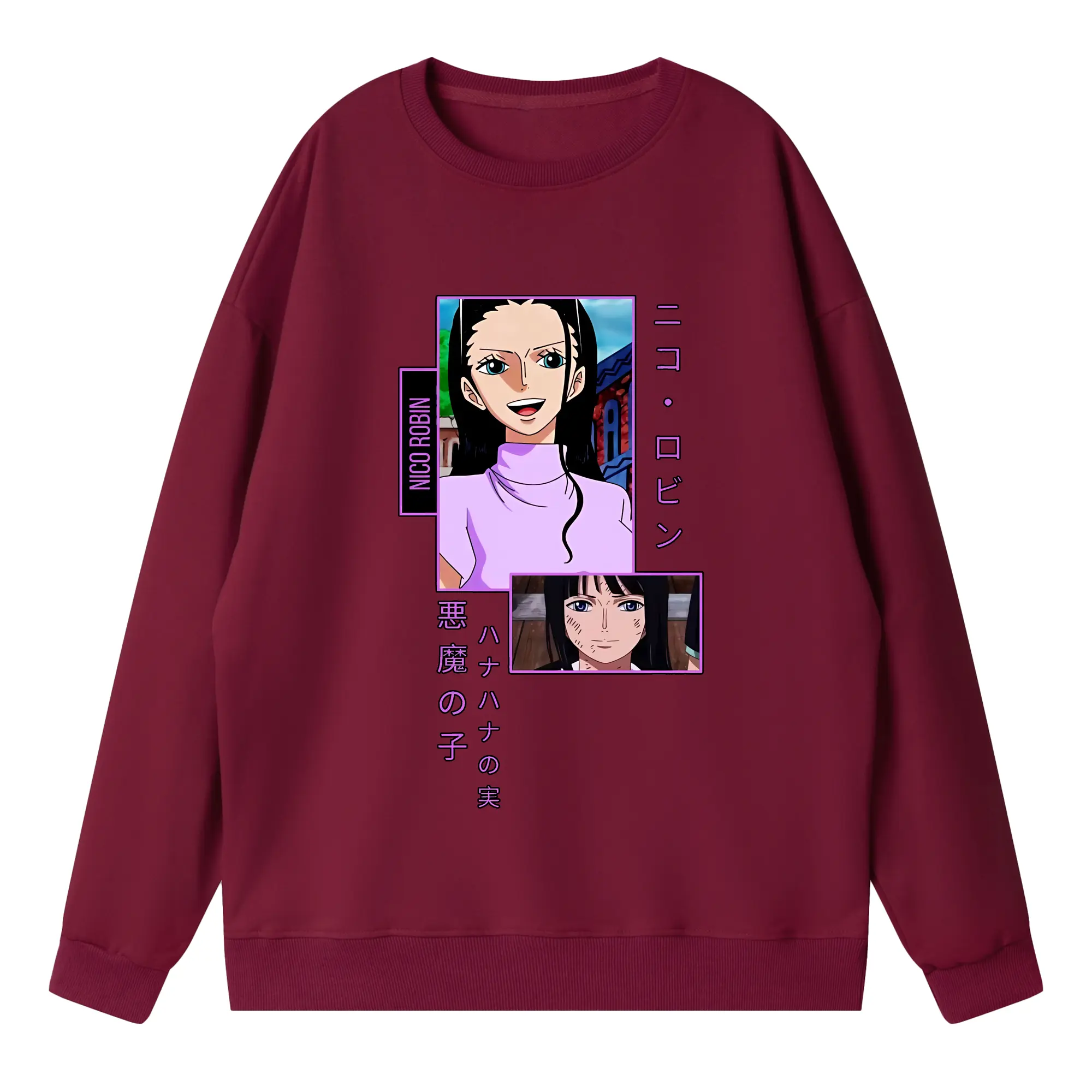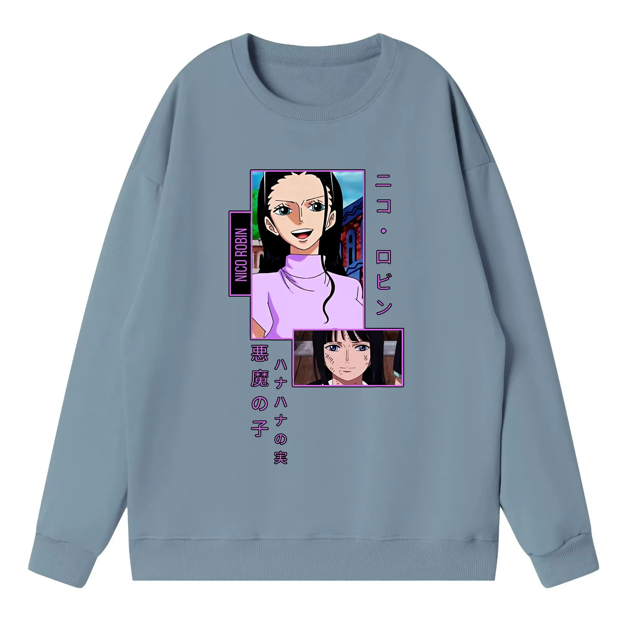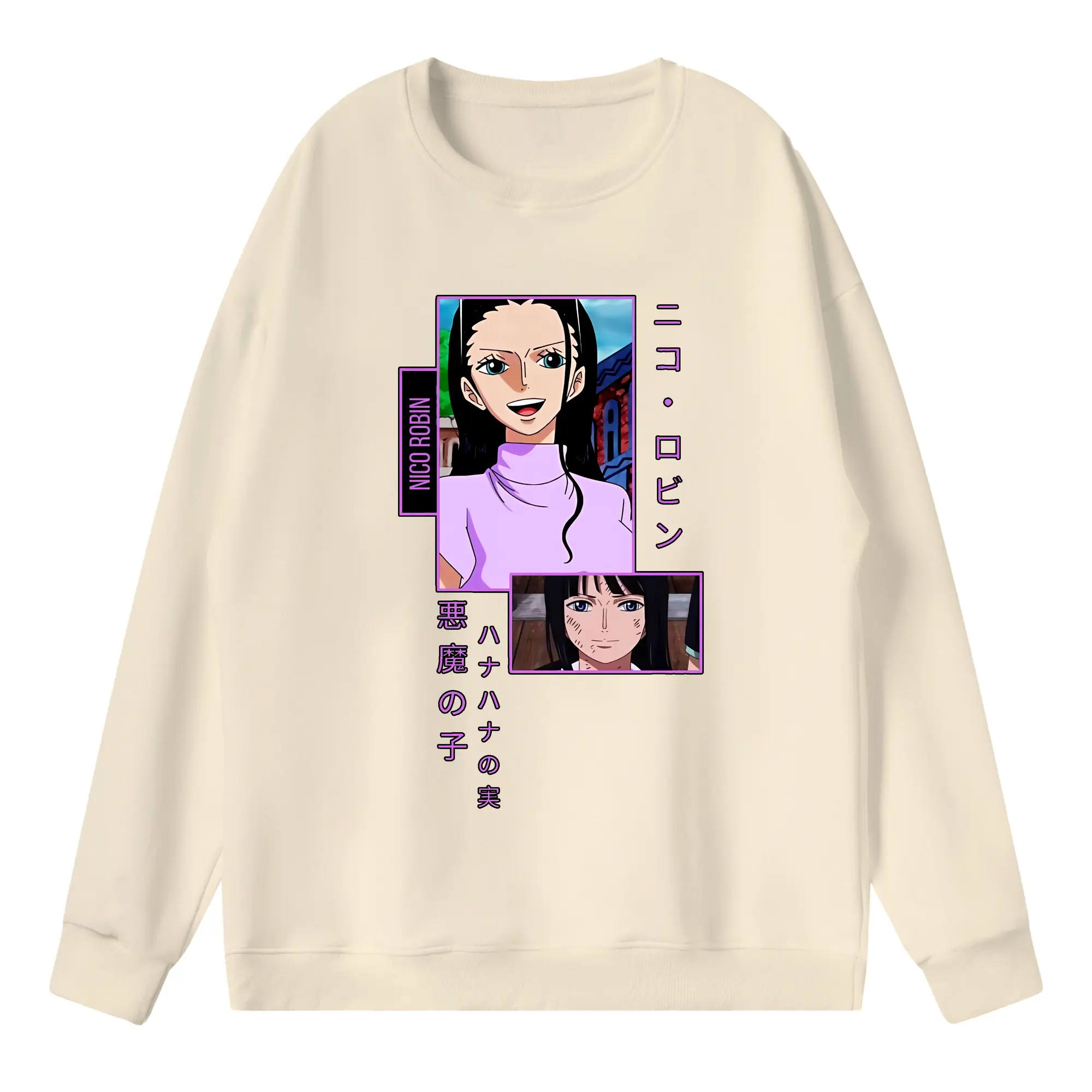 ワンピース グッズ ニコ・ロビン - 高品質 クルーネック スウェット ・ コットン59% ポリエステル41% ・ ユニセックス 長袖 トレーナー ・ カジュアル デイリー スポーツ 散歩用