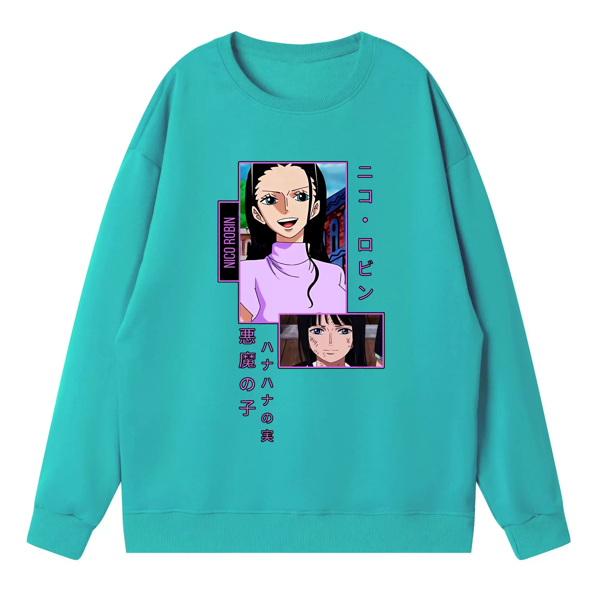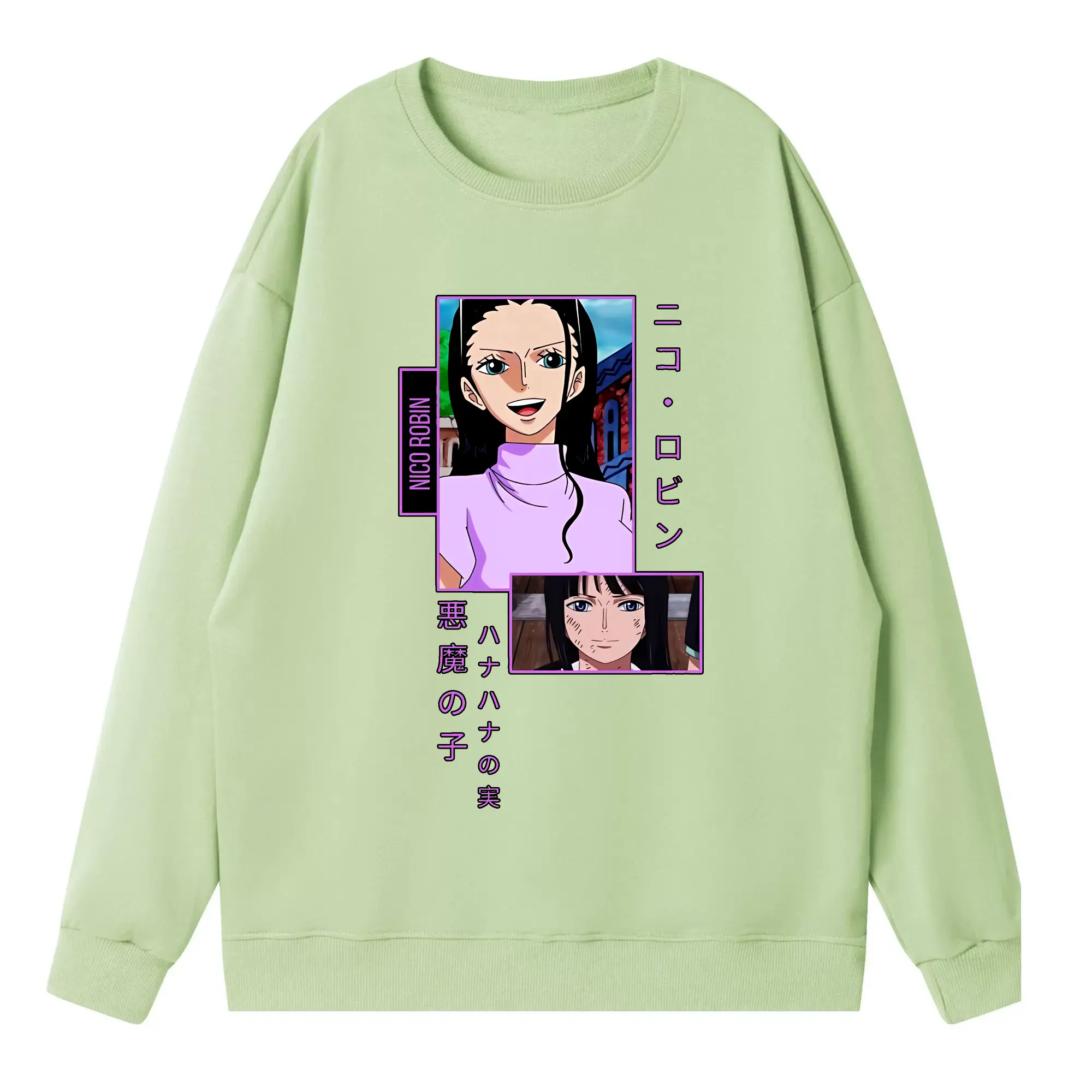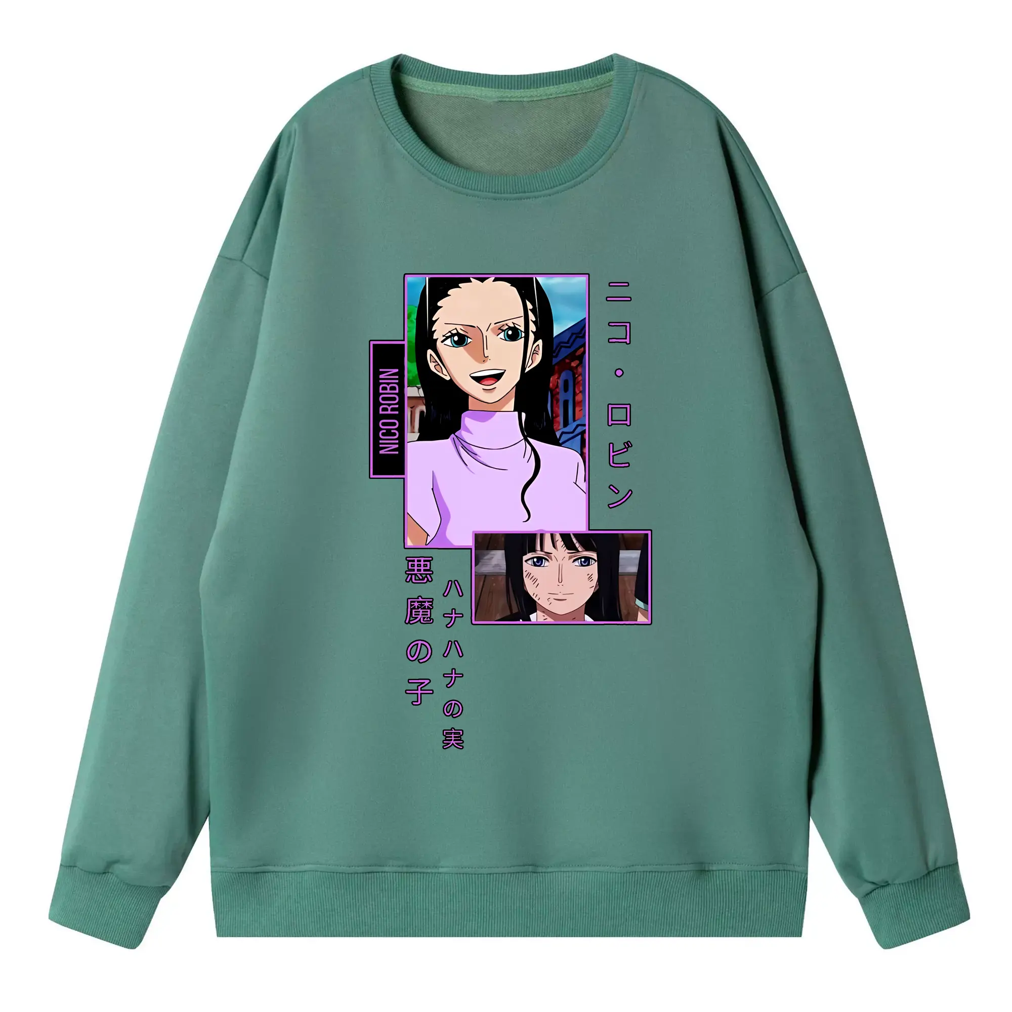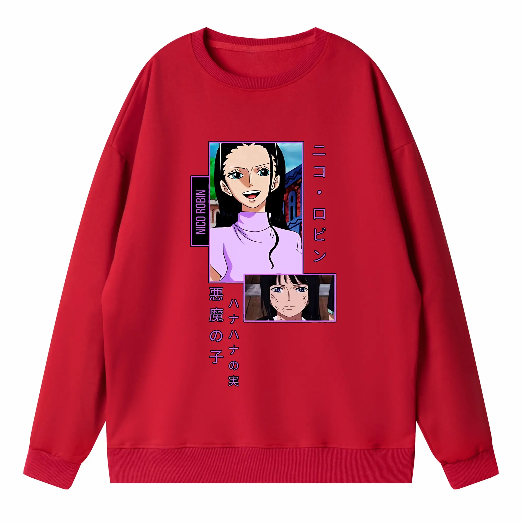 ワンピース グッズ ニコ・ロビン - 高品質 クルーネック スウェット ・ コットン59% ポリエステル41% ・ ユニセックス 長袖 トレーナー ・ カジュアル デイリー スポーツ 散歩用