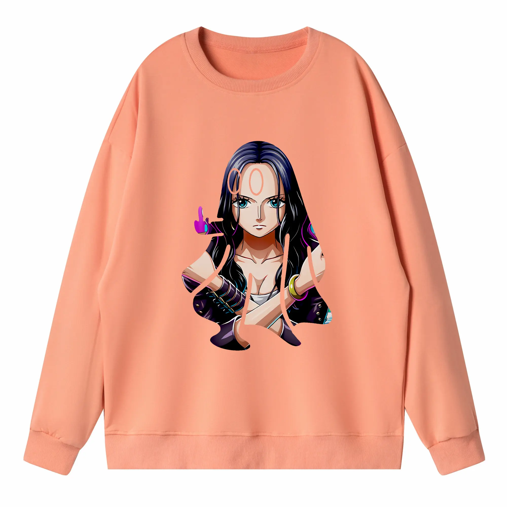 ワンピース グッズ ニコ・ロビン - 高品質 クルーネック スウェット ・ コットン59% ポリエステル41% ・ ユニセックス 長袖 トレーナー ・ カジュアル デイリー スポーツ 散歩用