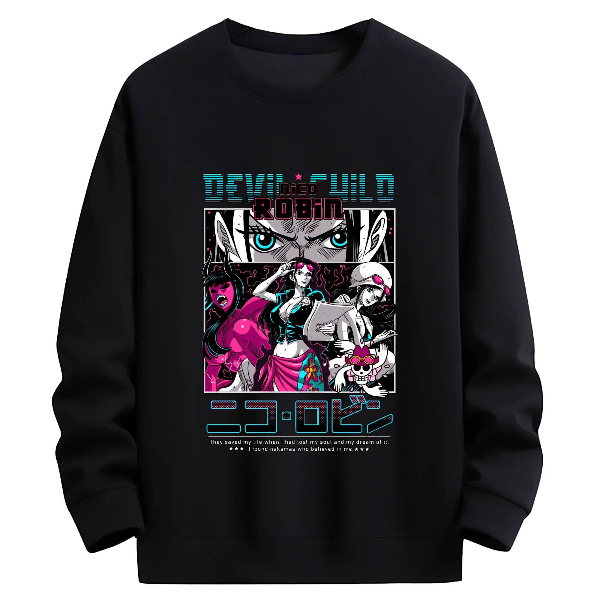 ワンピース グッズ ニコ・ロビン - 高品質 クルーネック スウェット ・ コットン59% ポリエステル41% ・ ユニセックス 長袖 トレーナー ・ カジュアル デイリー スポーツ 散歩用