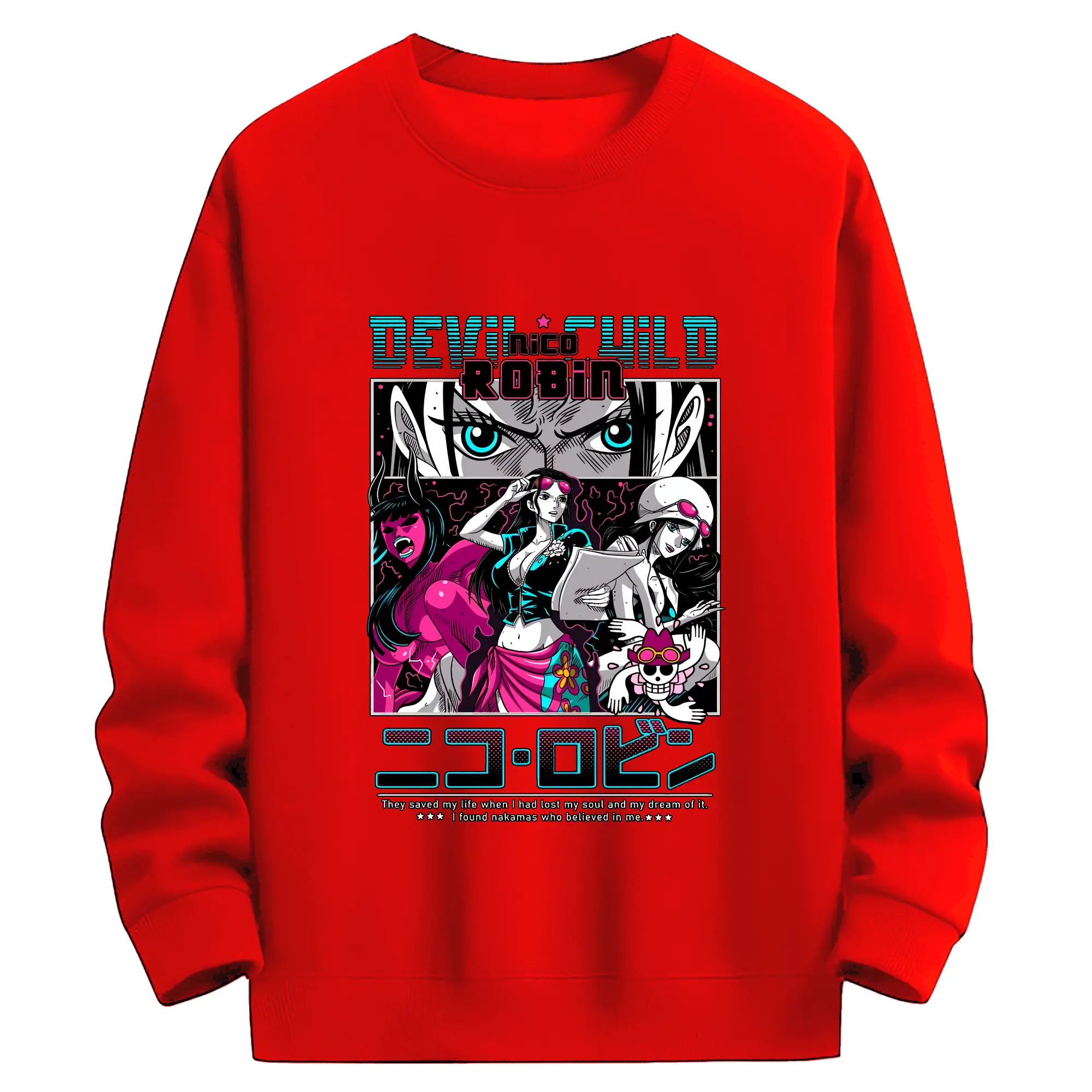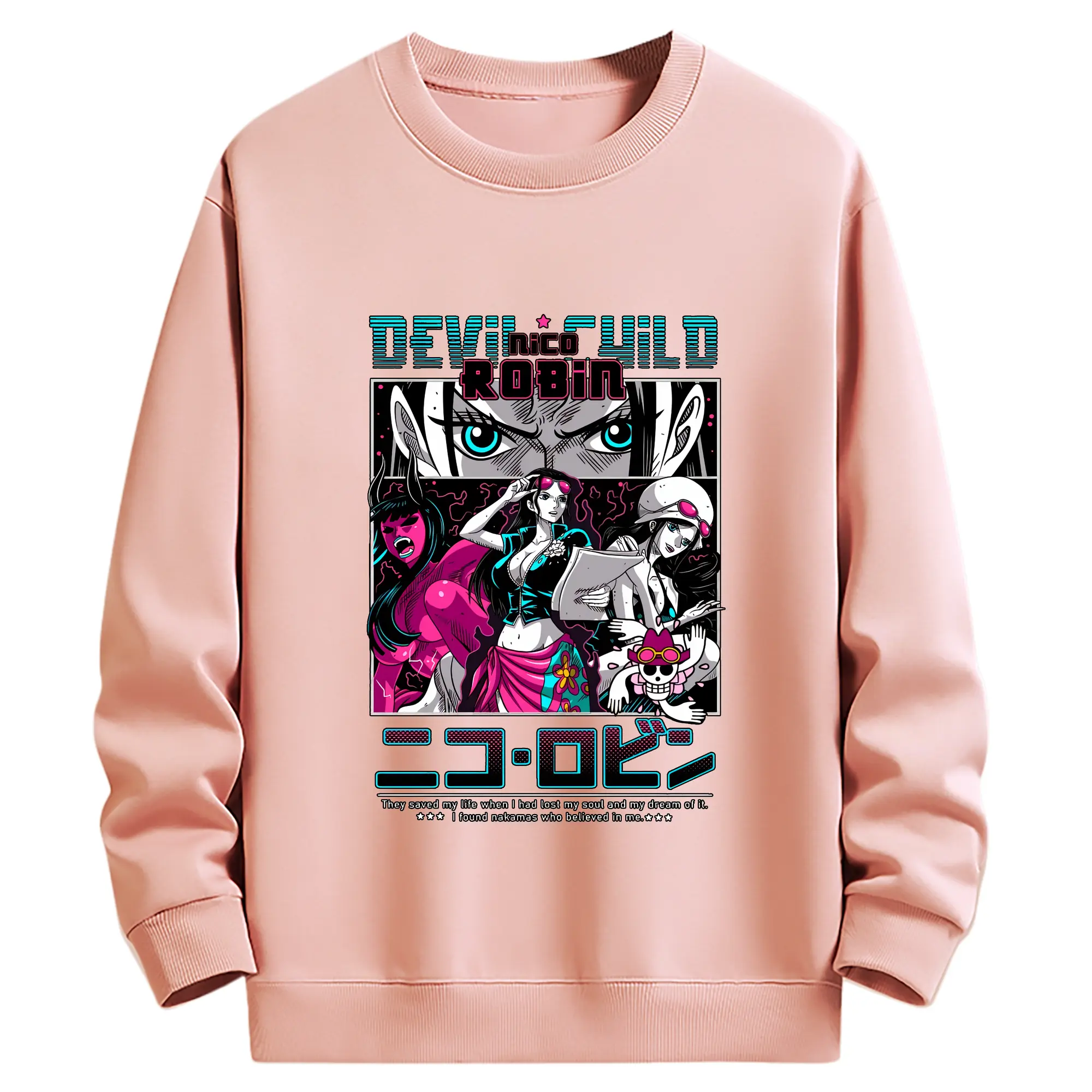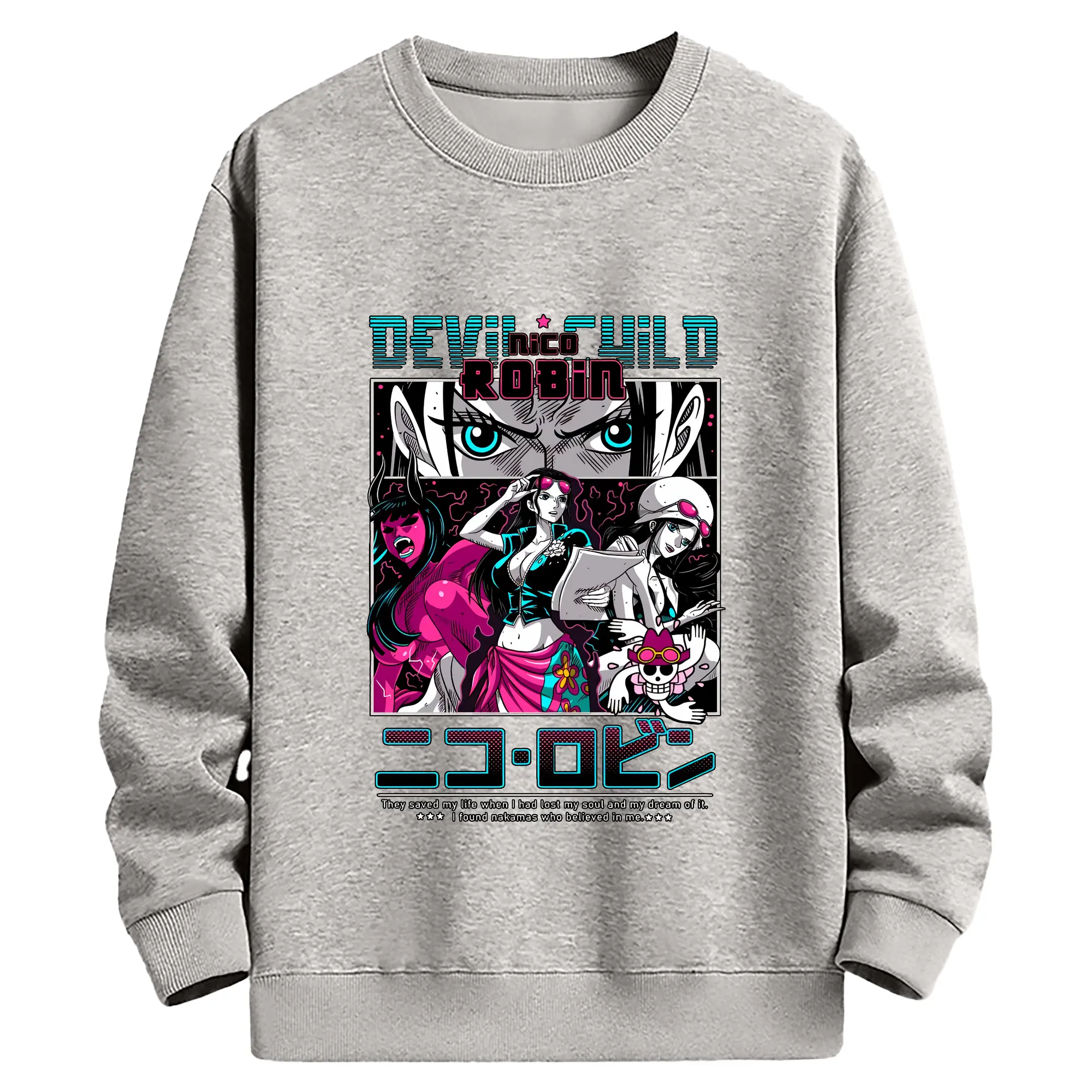 ワンピース グッズ ニコ・ロビン - 薄手 クルーネック スウェット 裏毛260g · ポリエステル 春秋向け カジュアル 男女兼用 · トレーナー デイリー スポーツ 散歩に最適