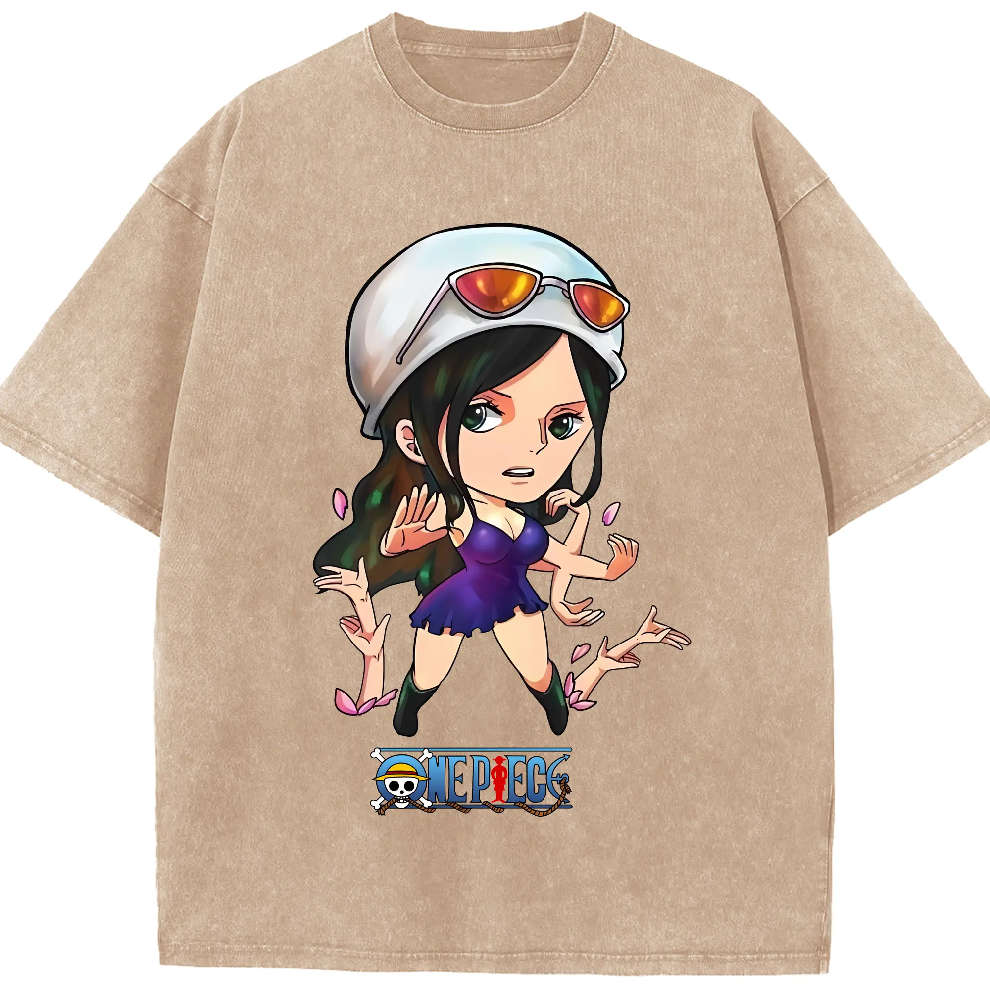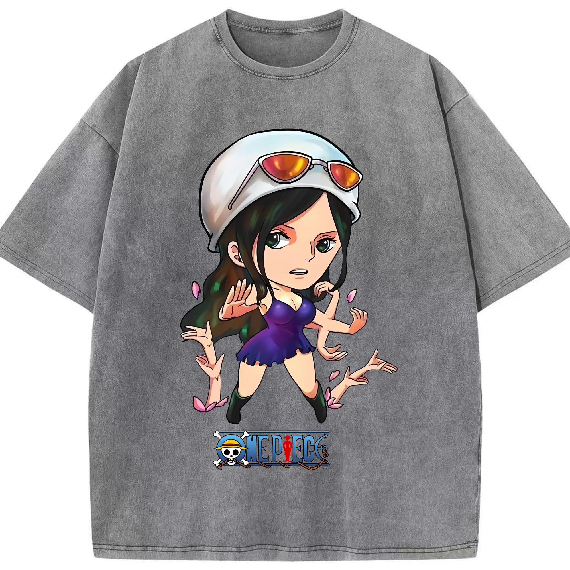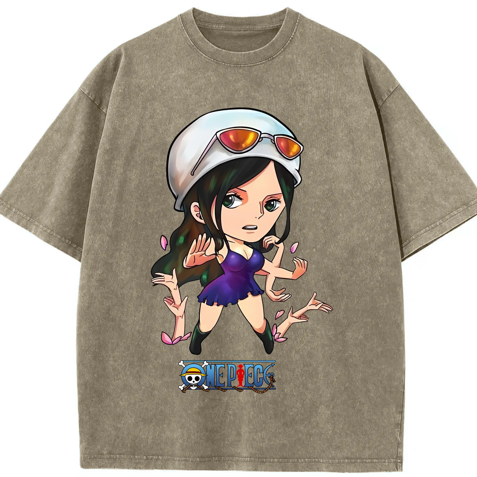 ワンピース グッズ ニコ・ロビン - 綿100% ヴィンテージ風 半袖Tシャツ ・ 背面プリント ・ 柔らか肌触り ・ 通気性 快適 ・ スポーツ カジュアル 外出用