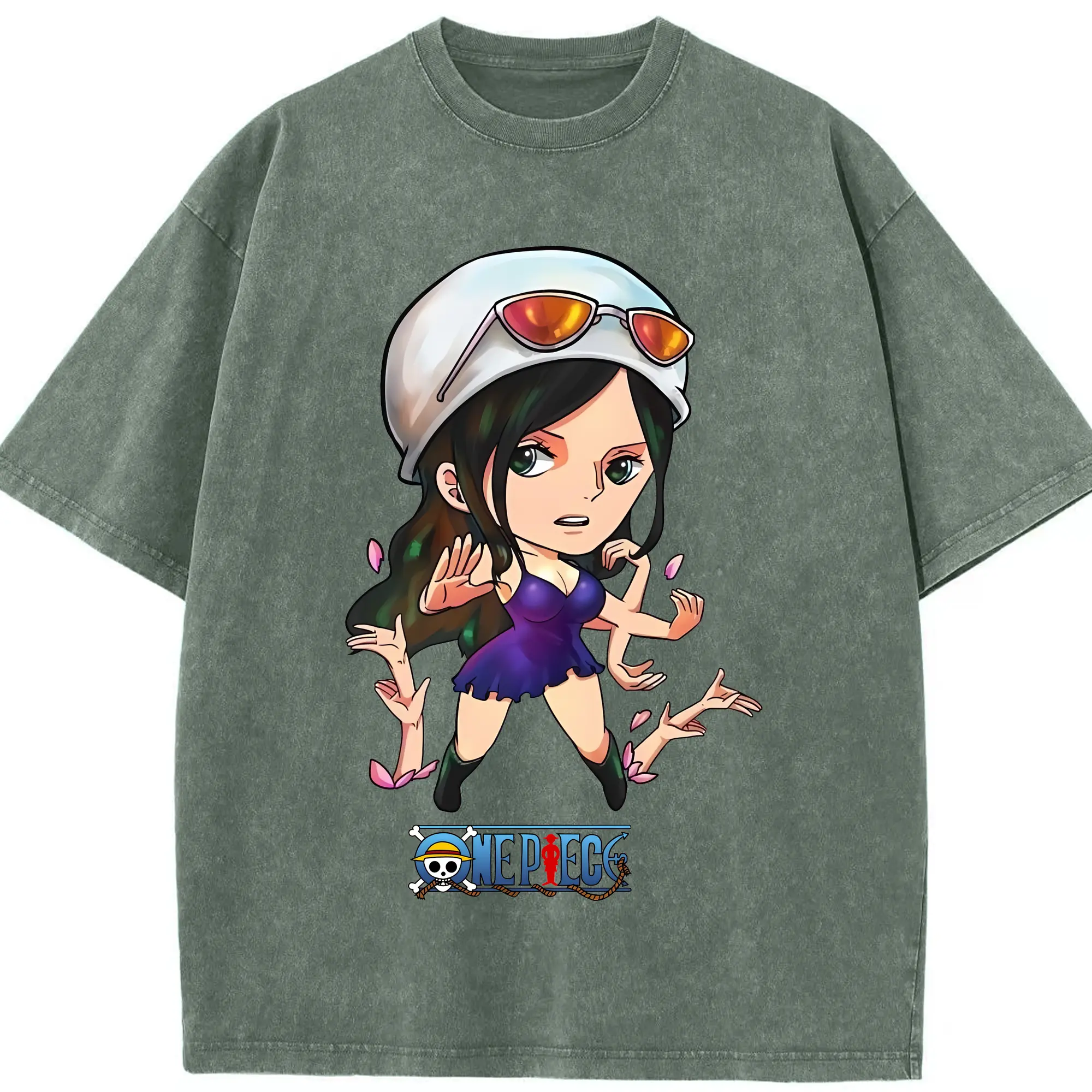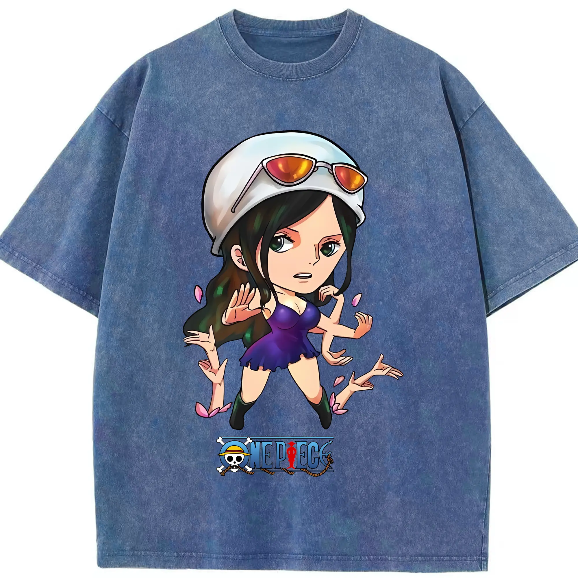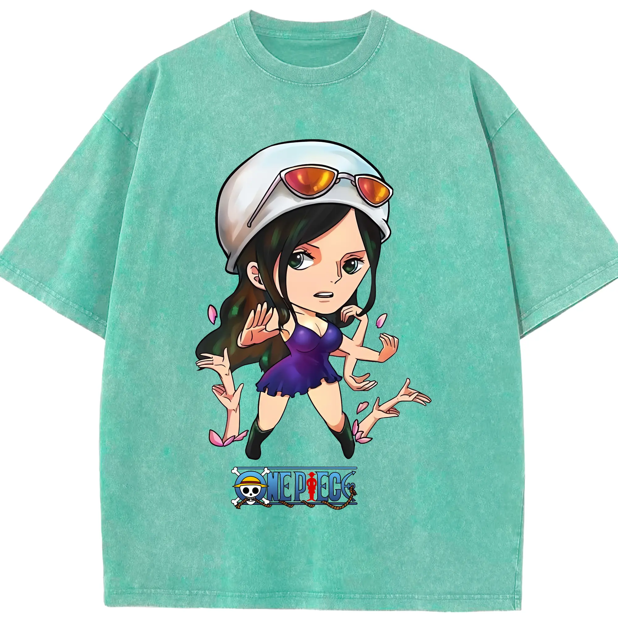 ワンピース グッズ ニコ・ロビン - 綿100% ヴィンテージ風 半袖Tシャツ ・ 背面プリント ・ 柔らか肌触り ・ 通気性 快適 ・ スポーツ カジュアル 外出用