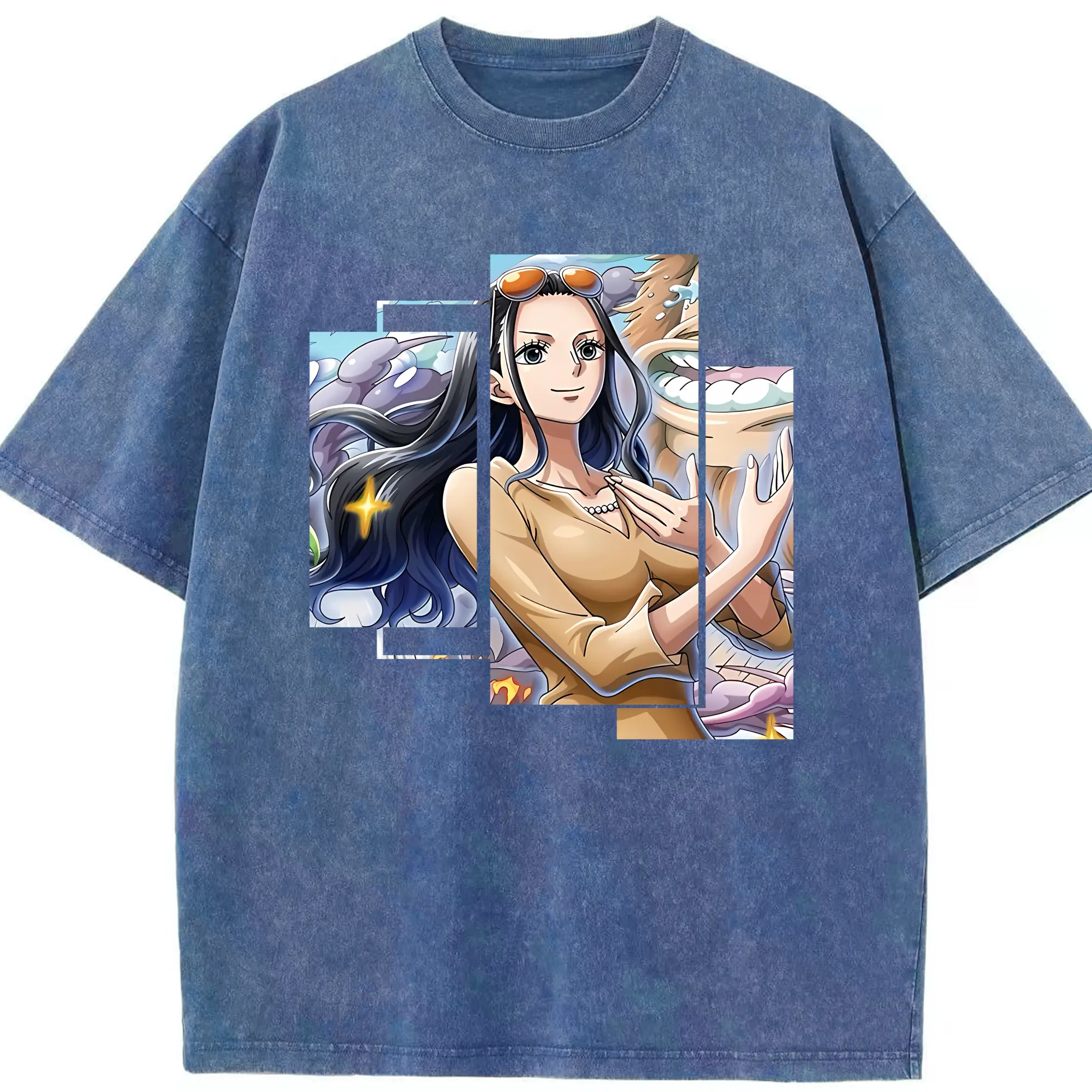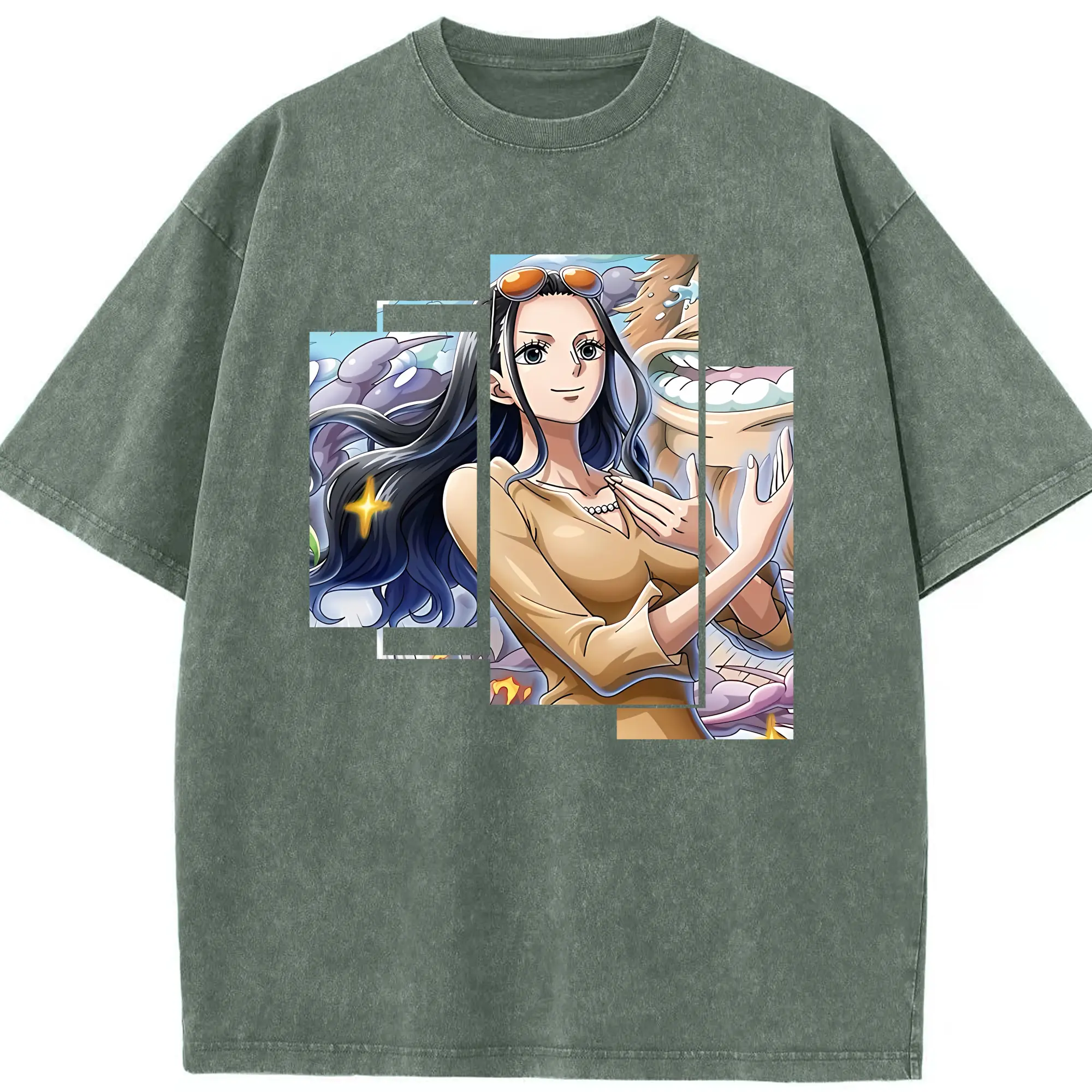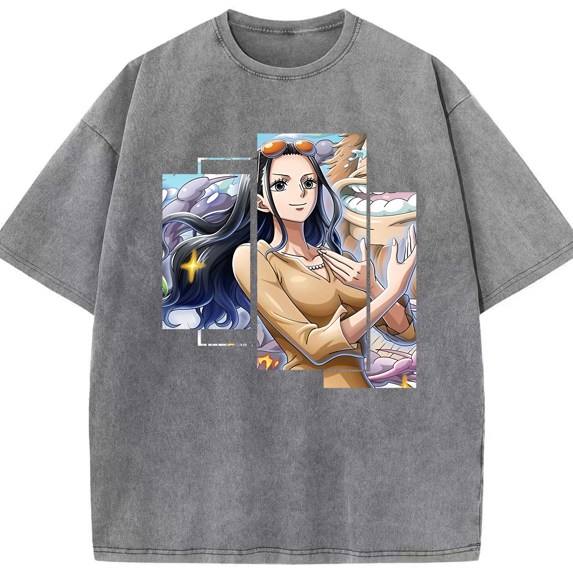 ワンピース グッズ ニコ・ロビン - 綿100% ヴィンテージ風 半袖Tシャツ ・ 背面プリント ・ 柔らか肌触り ・ 通気性 快適 ・ スポーツ カジュアル 外出用
