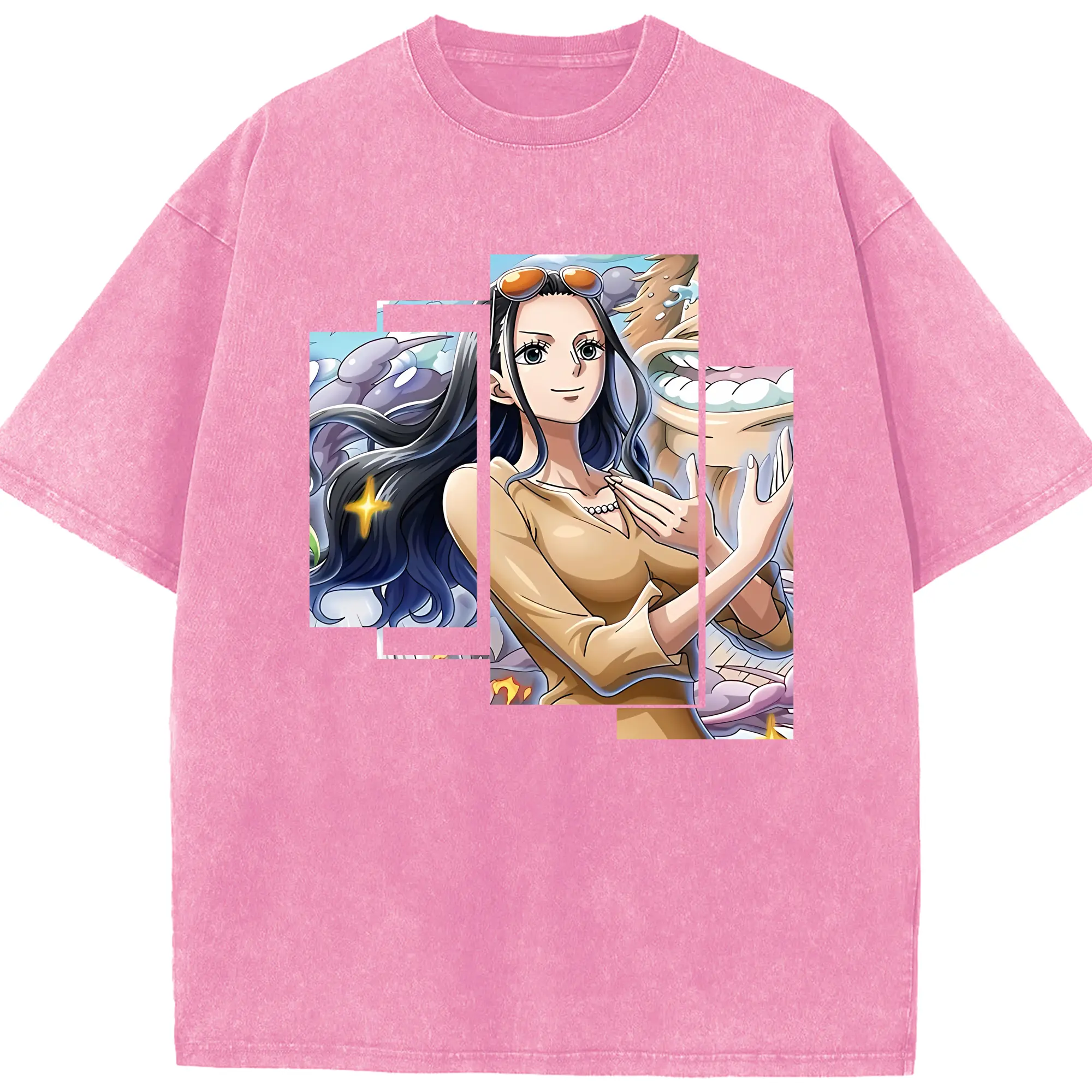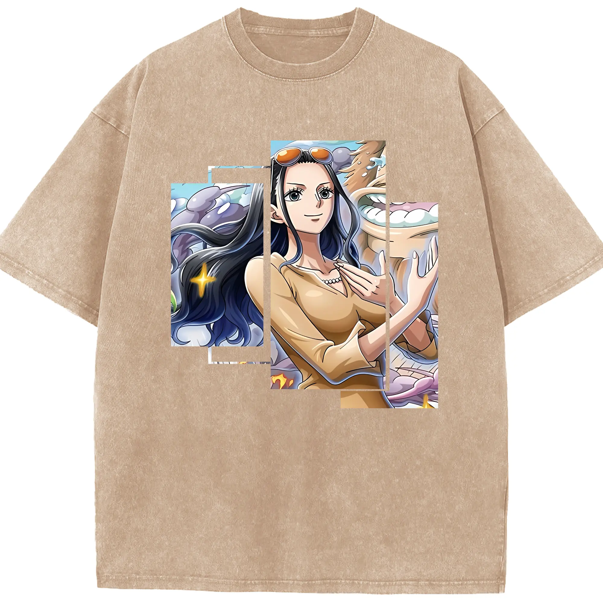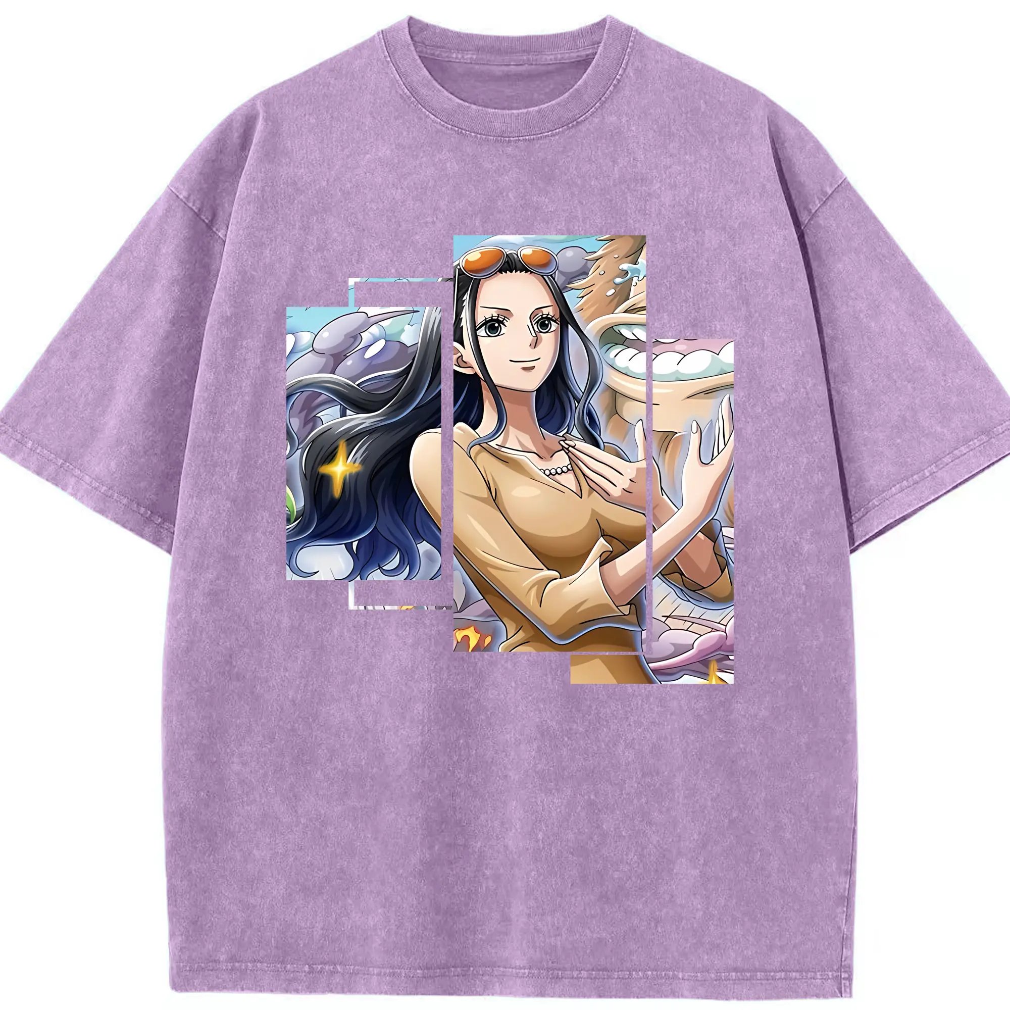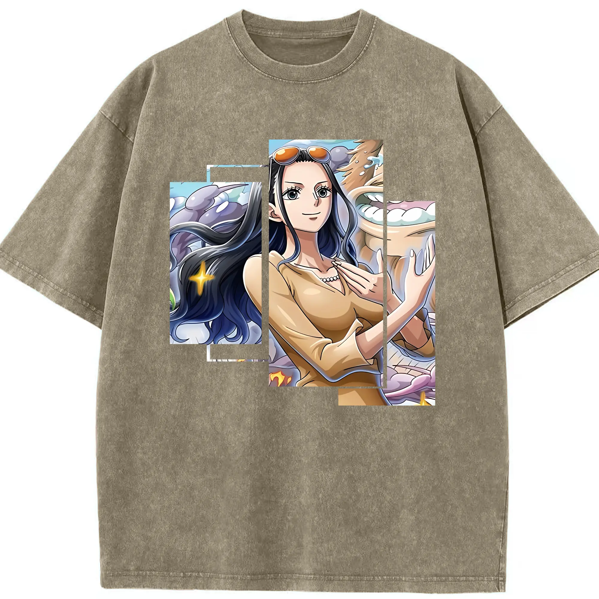 ワンピース グッズ ニコ・ロビン - 綿100% ヴィンテージ風 半袖Tシャツ ・ 背面プリント ・ 柔らか肌触り ・ 通気性 快適 ・ スポーツ カジュアル 外出用