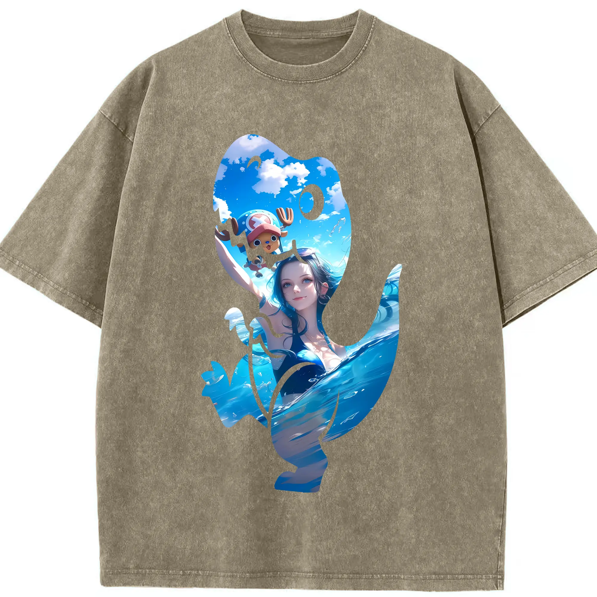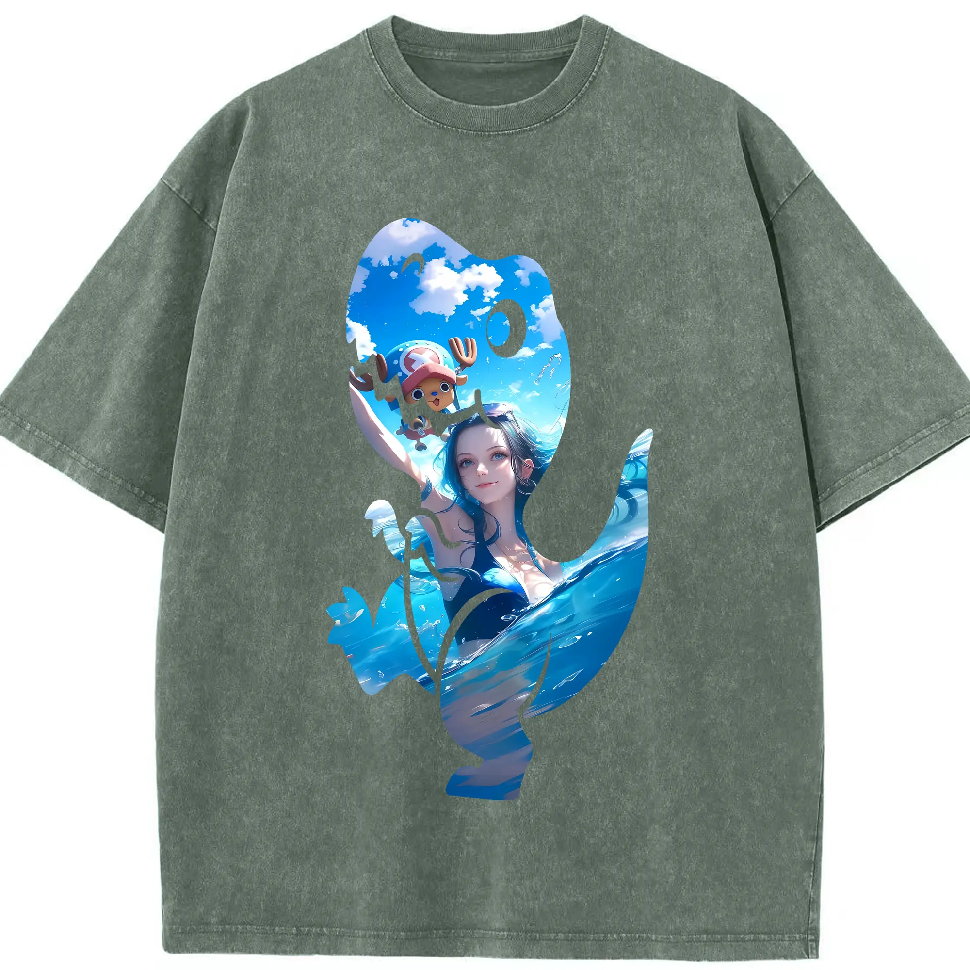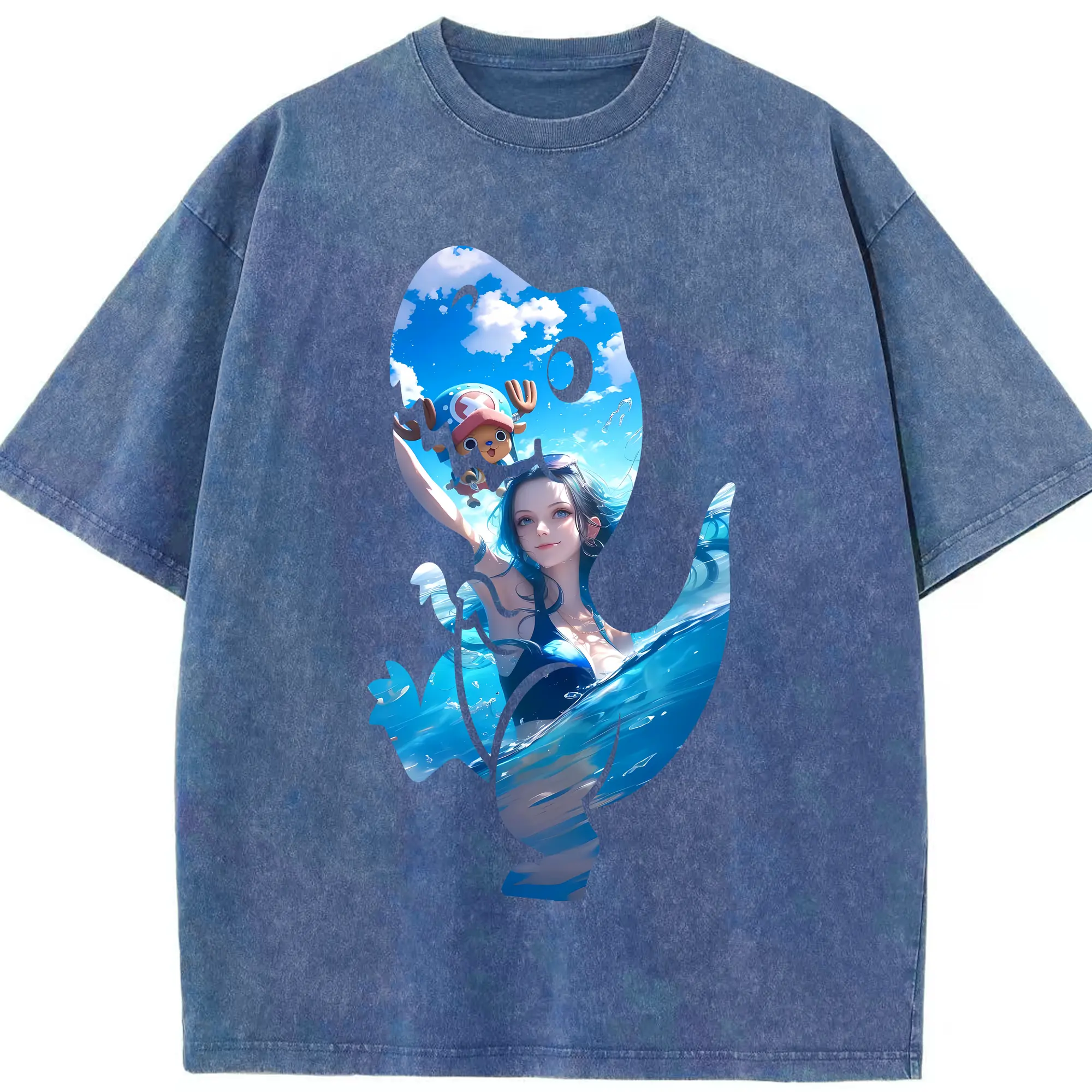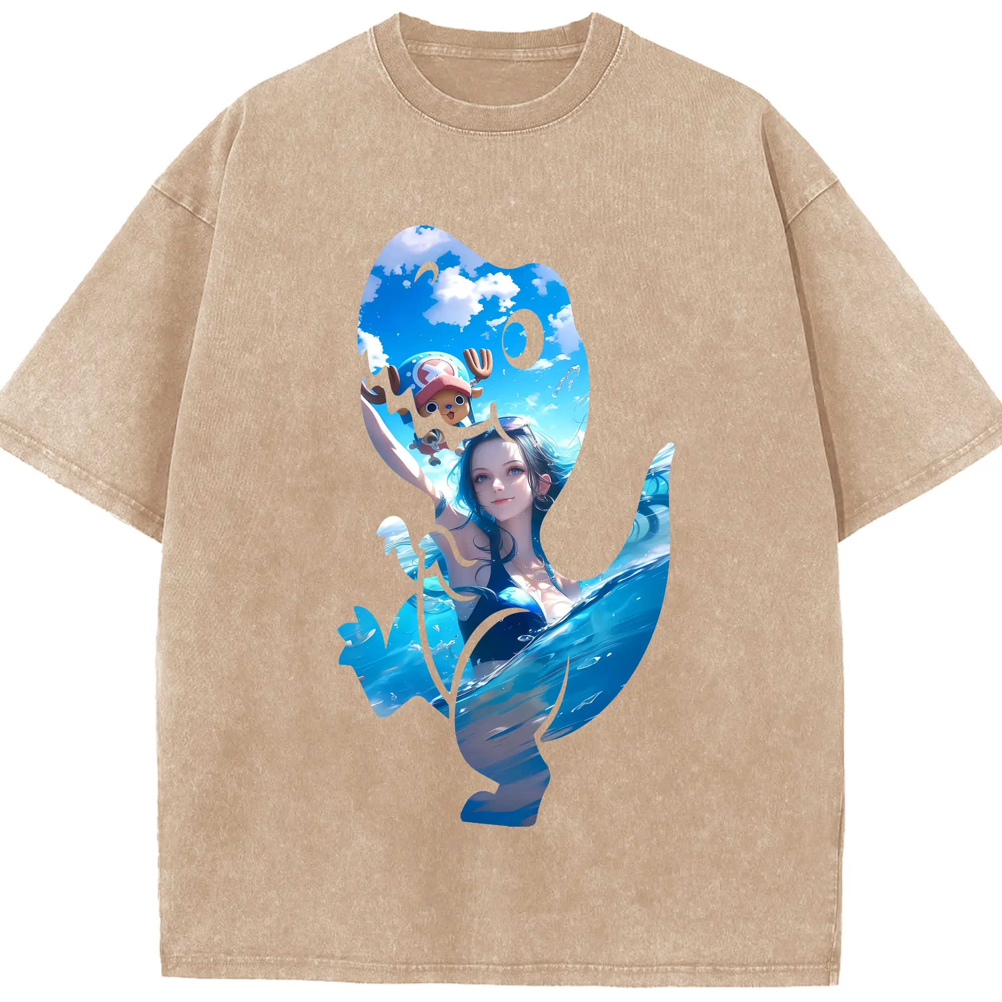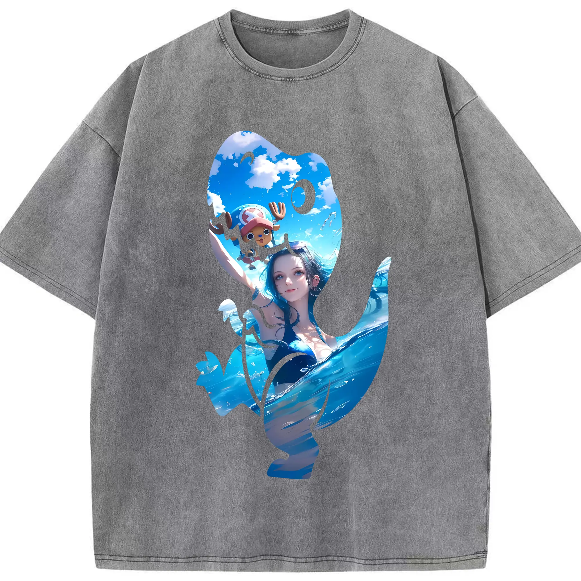 ワンピース グッズ ニコ・ロビン - 綿100% ヴィンテージ風 半袖Tシャツ ・ 背面プリント ・ 柔らか肌触り ・ 通気性 快適 ・ スポーツ カジュアル 外出用