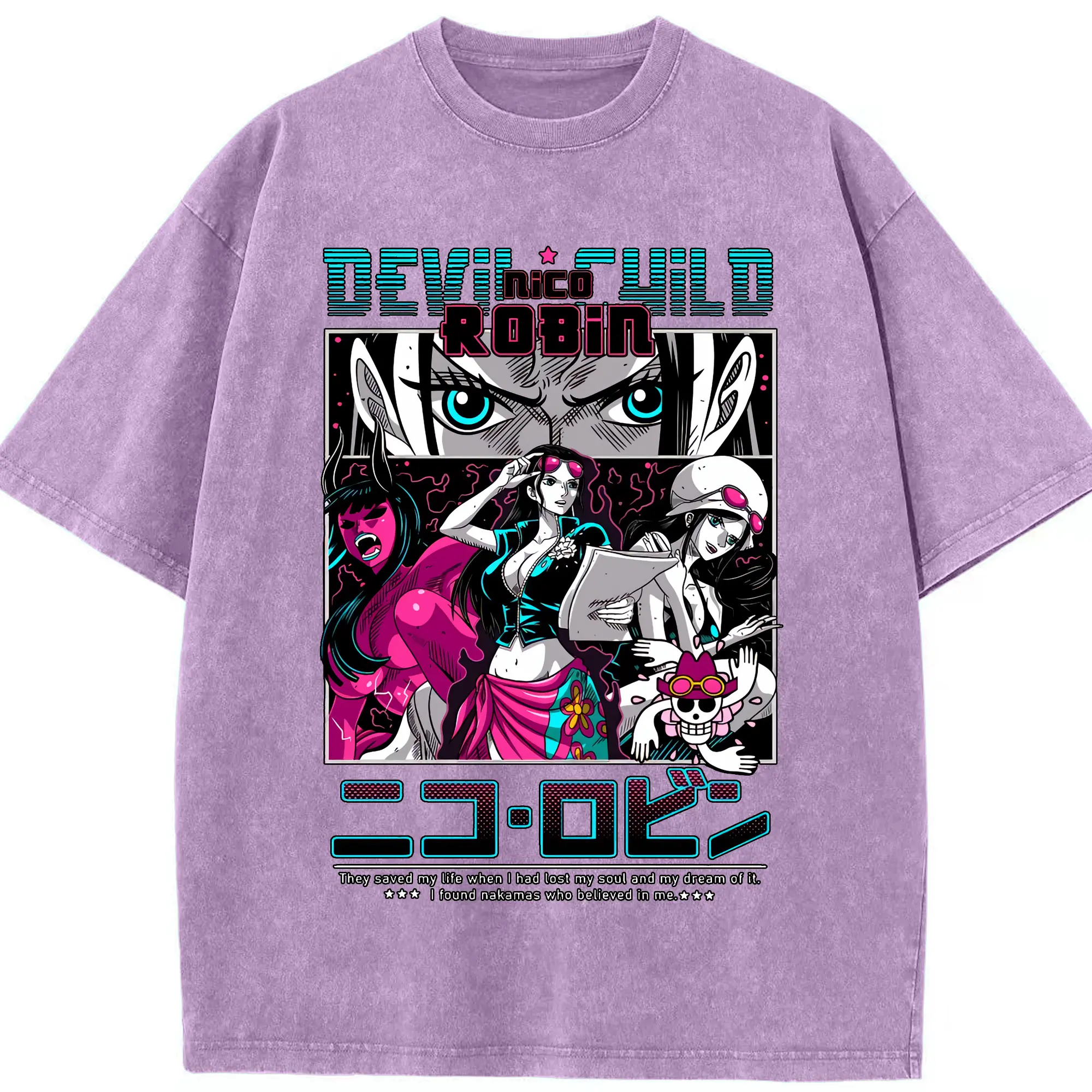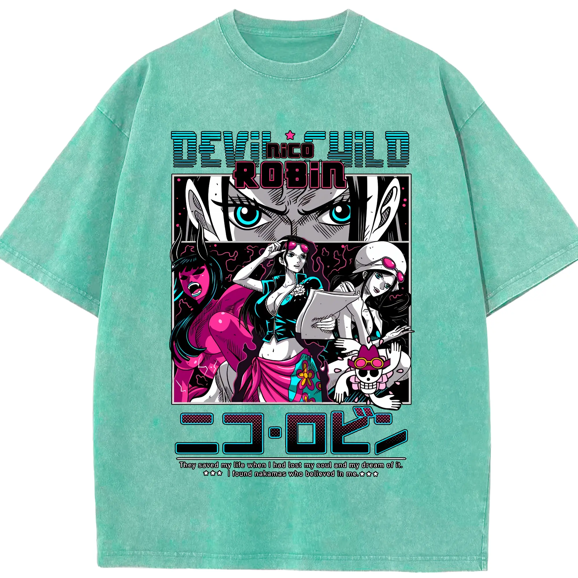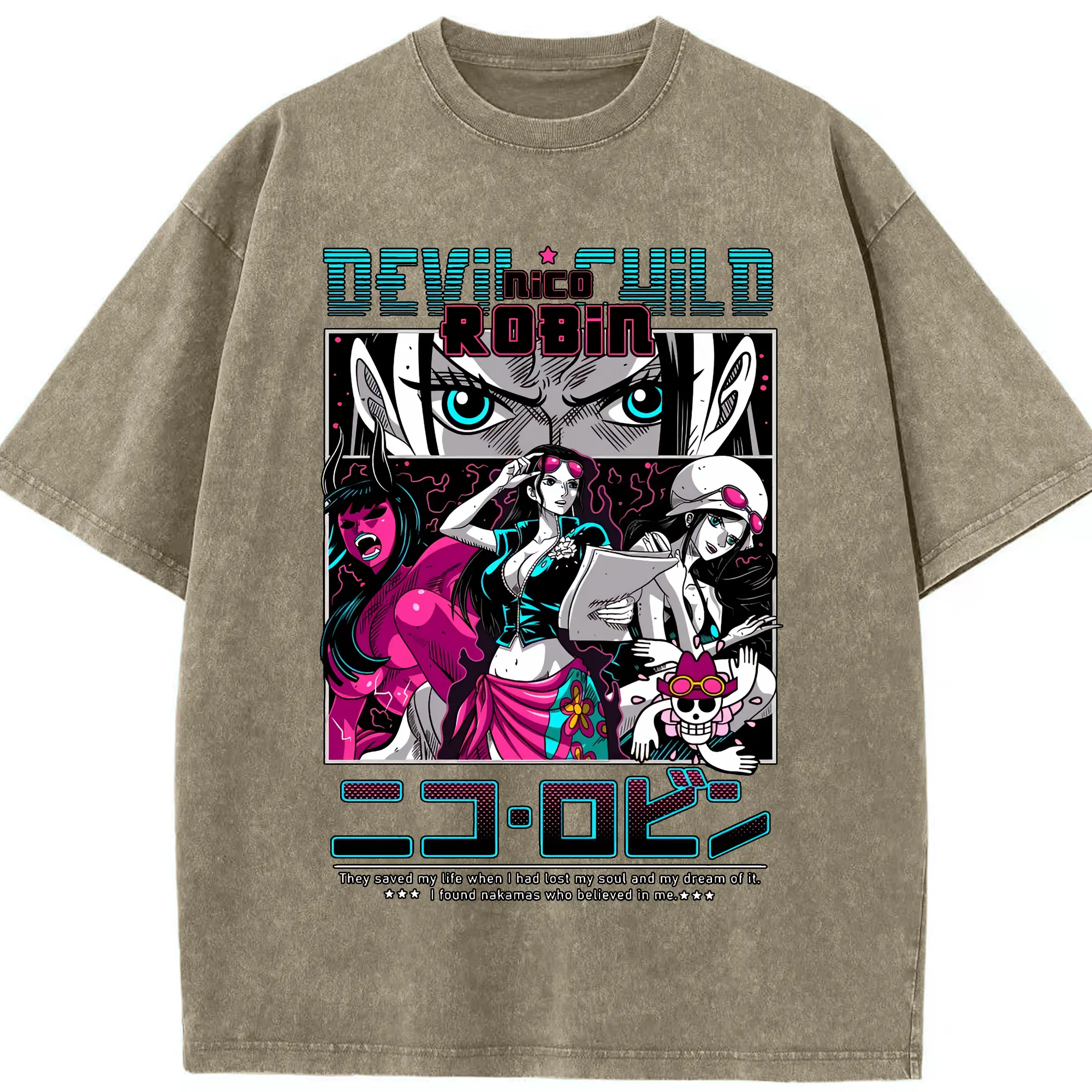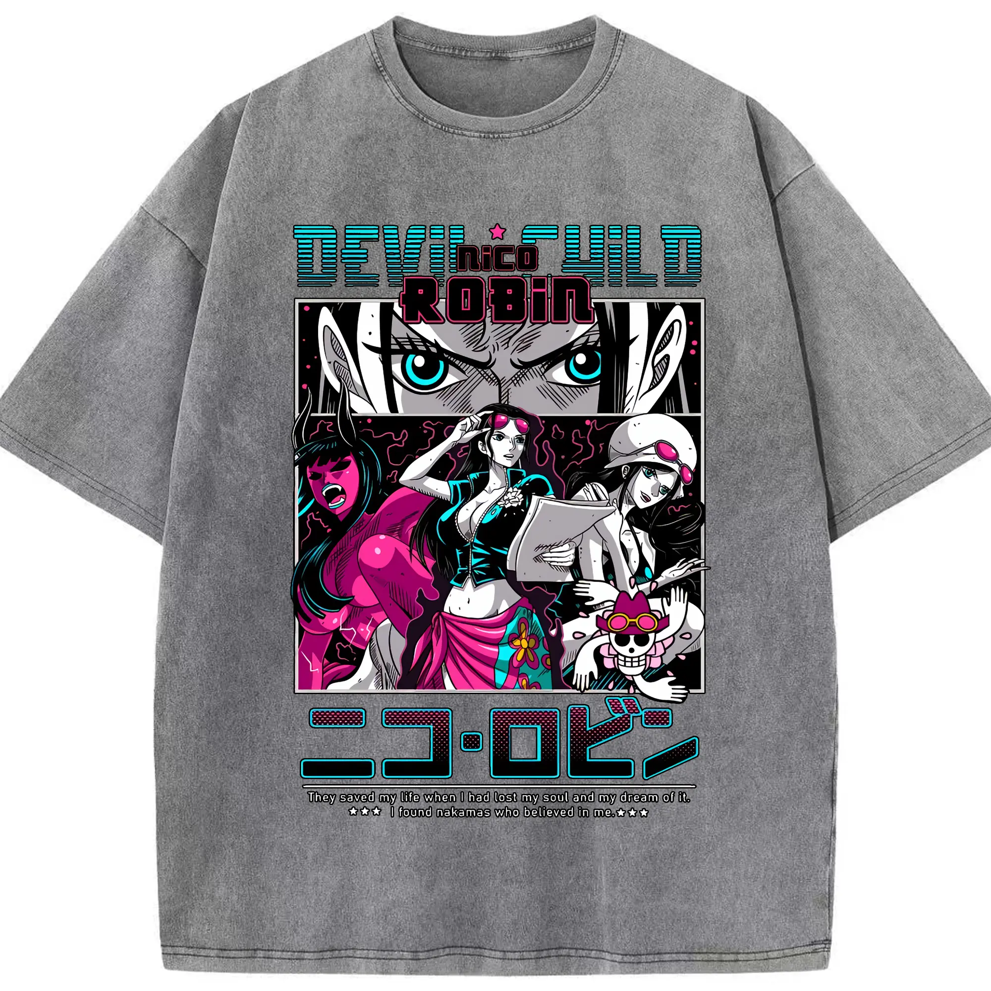ワンピース グッズ ニコ・ロビン - 綿100% ヴィンテージ風 半袖Tシャツ ・ 背面プリント ・ 柔らか肌触り ・ 通気性 快適 ・ スポーツ カジュアル 外出用