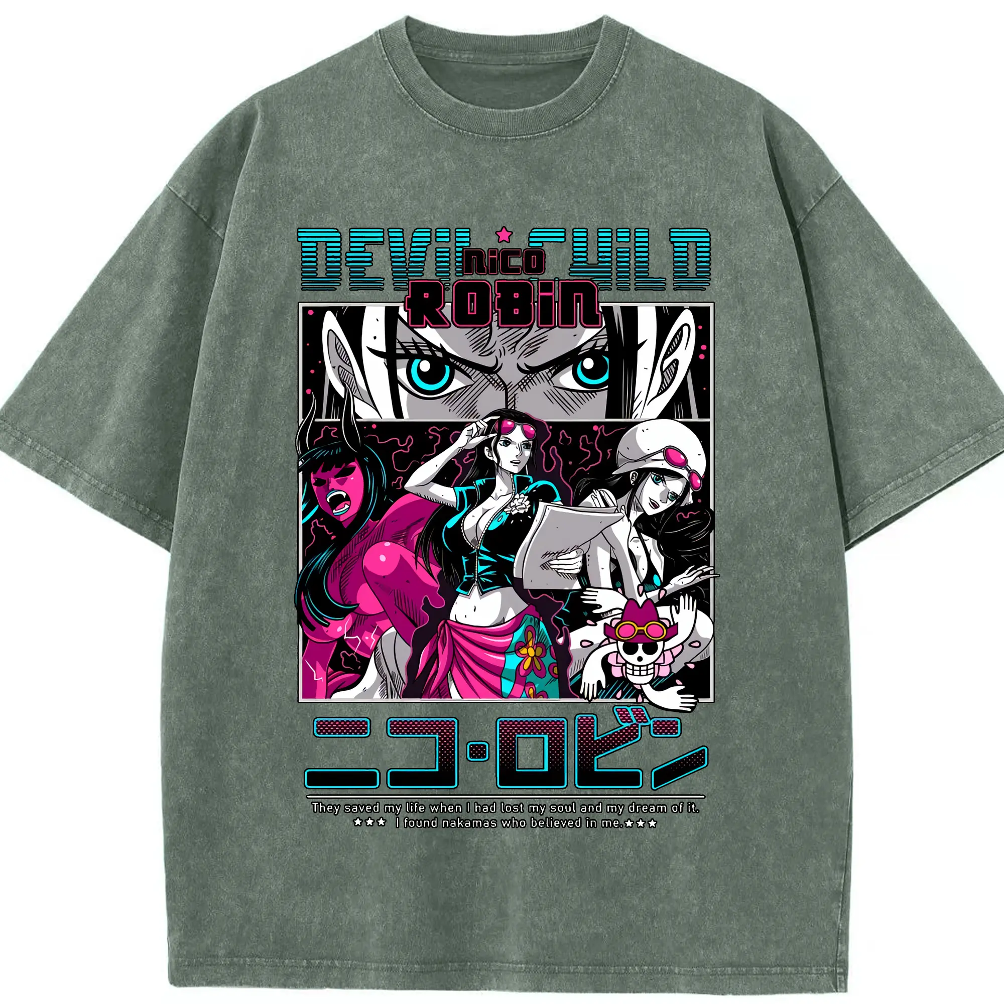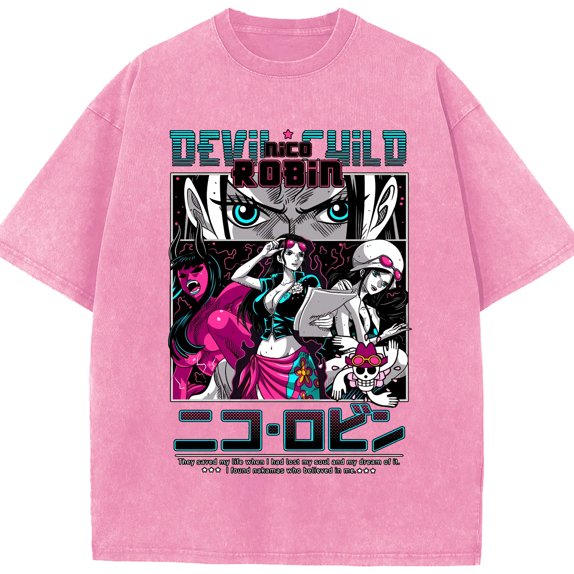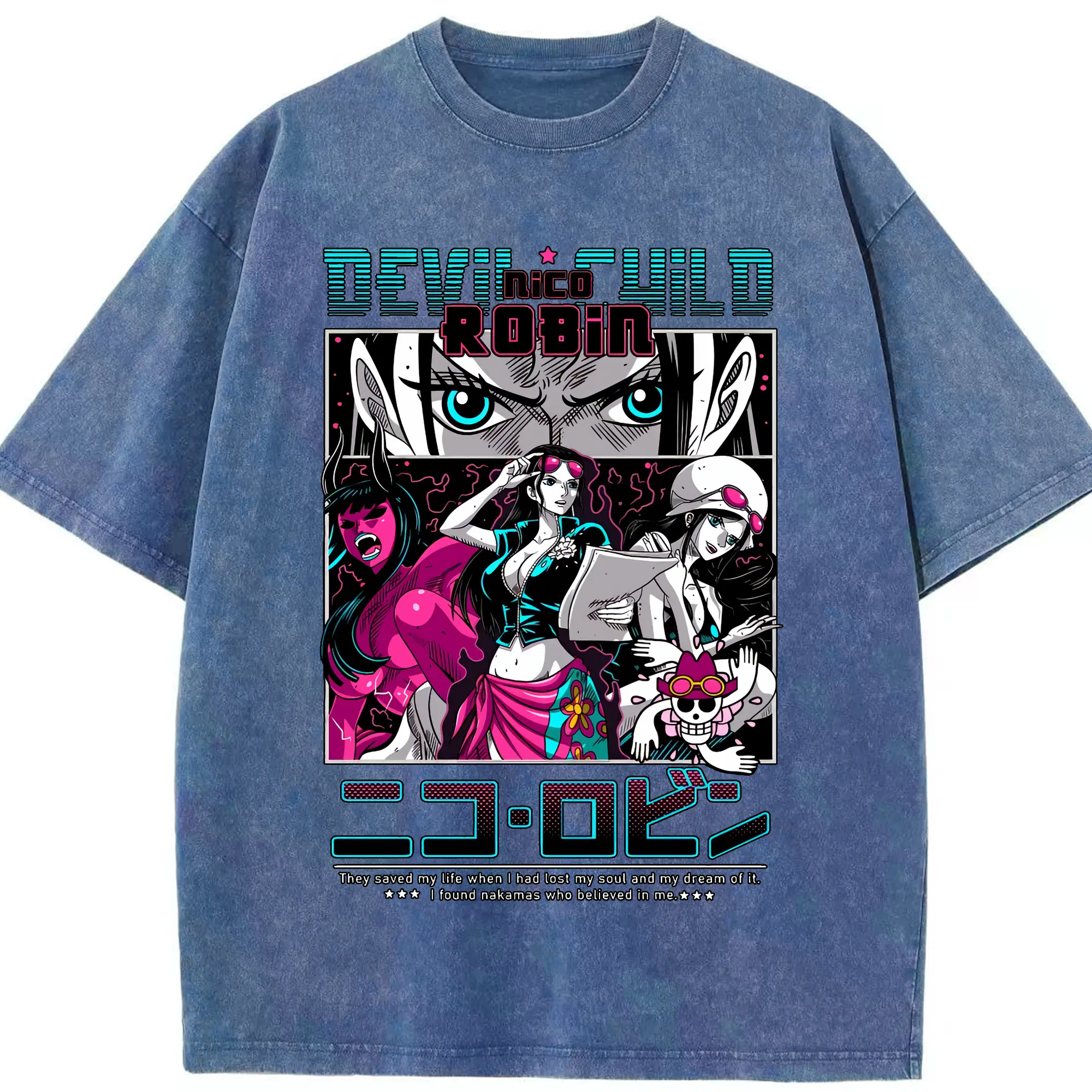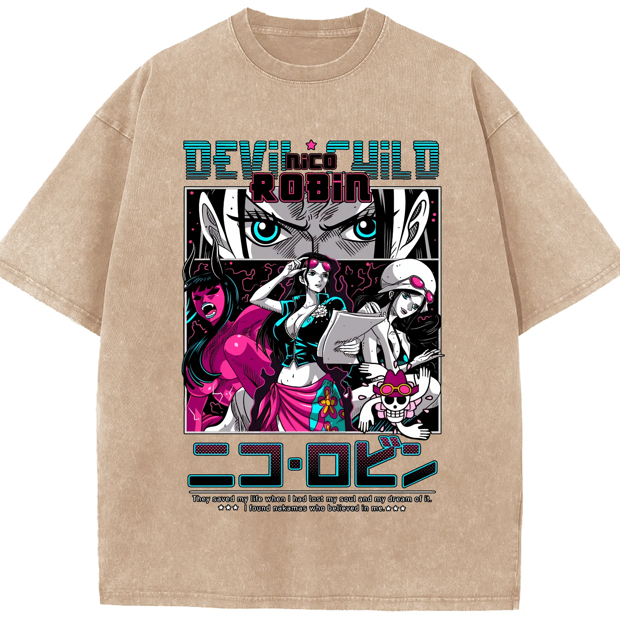ワンピース グッズ ニコ・ロビン - 綿100% ヴィンテージ風 半袖Tシャツ ・ 背面プリント ・ 柔らか肌触り ・ 通気性 快適 ・ スポーツ カジュアル 外出用