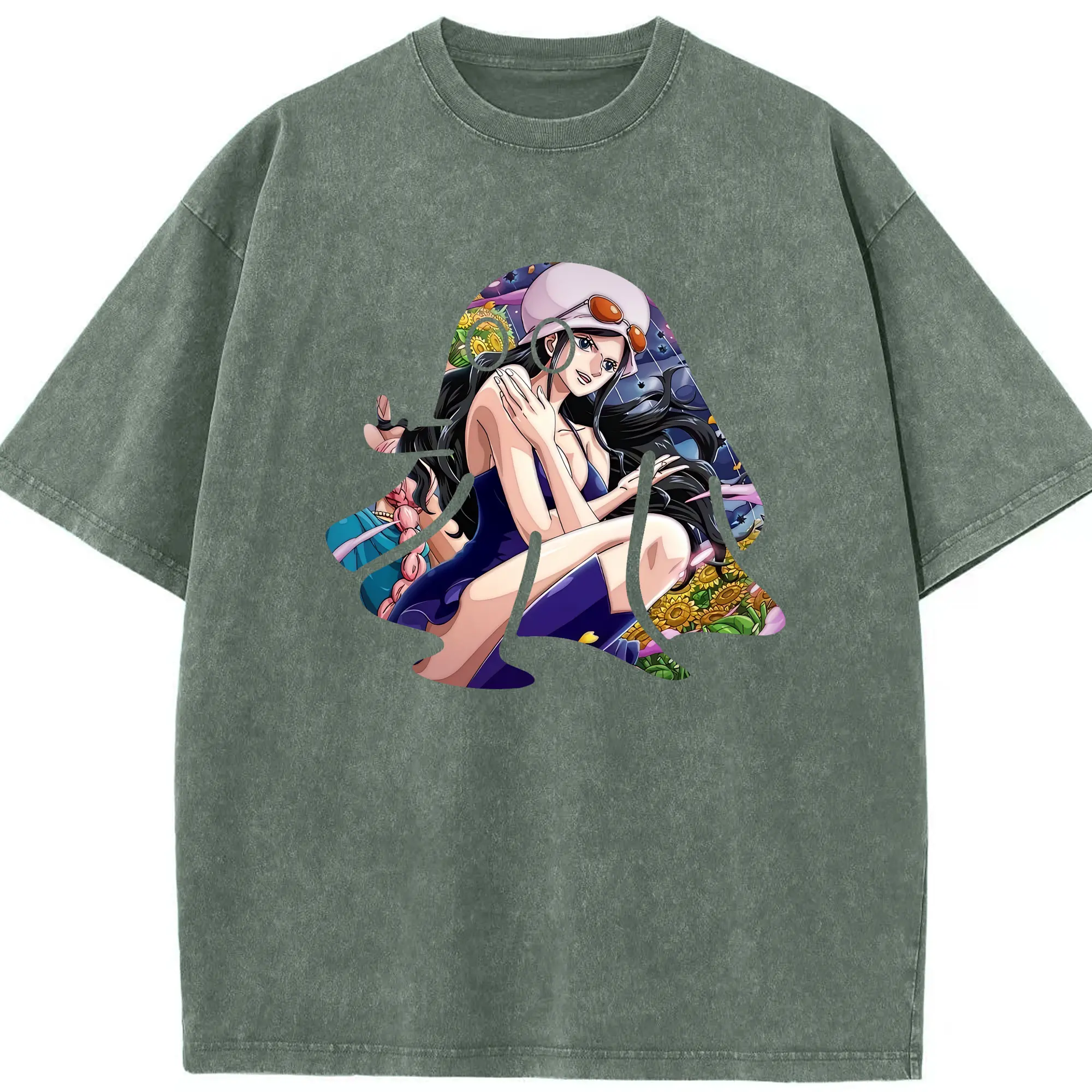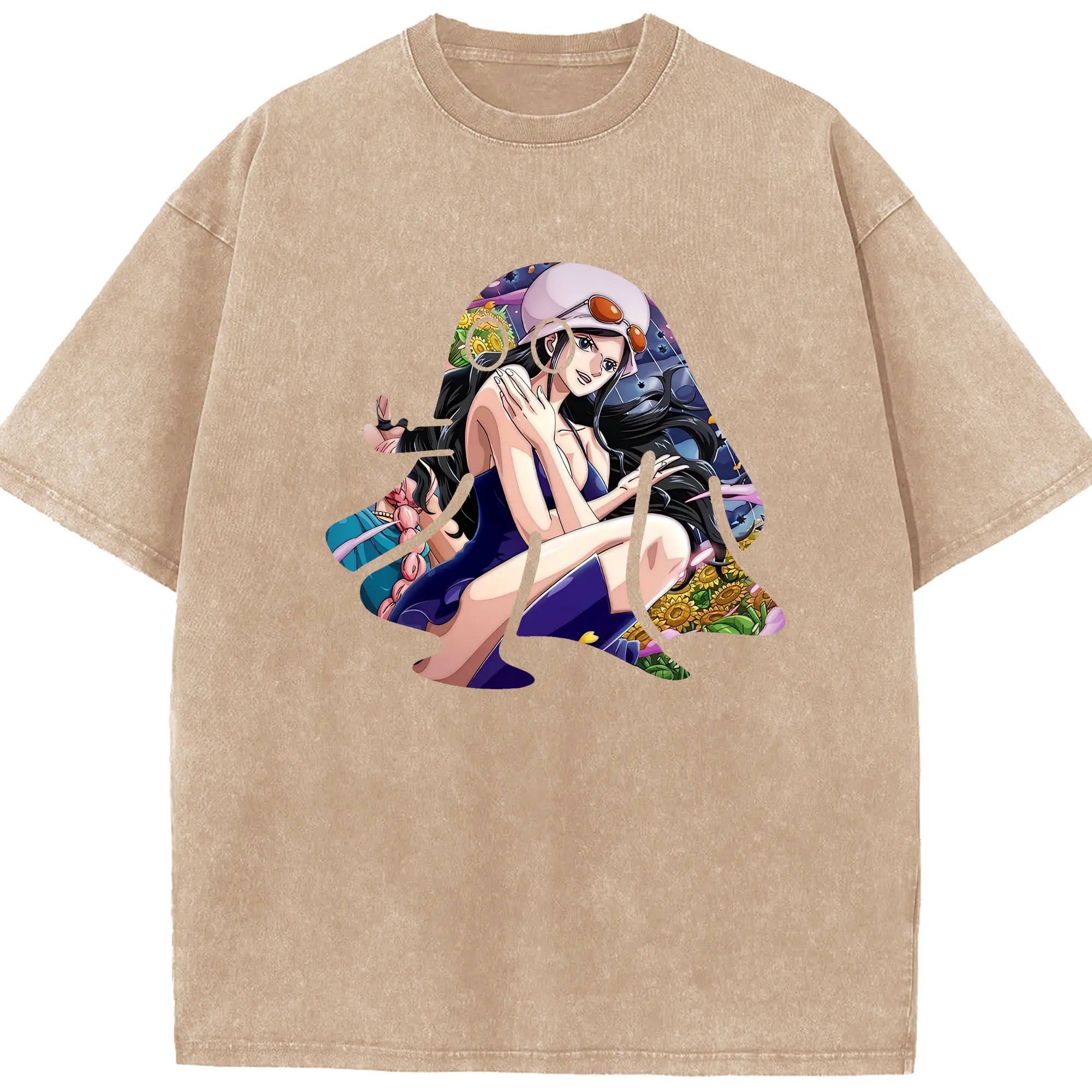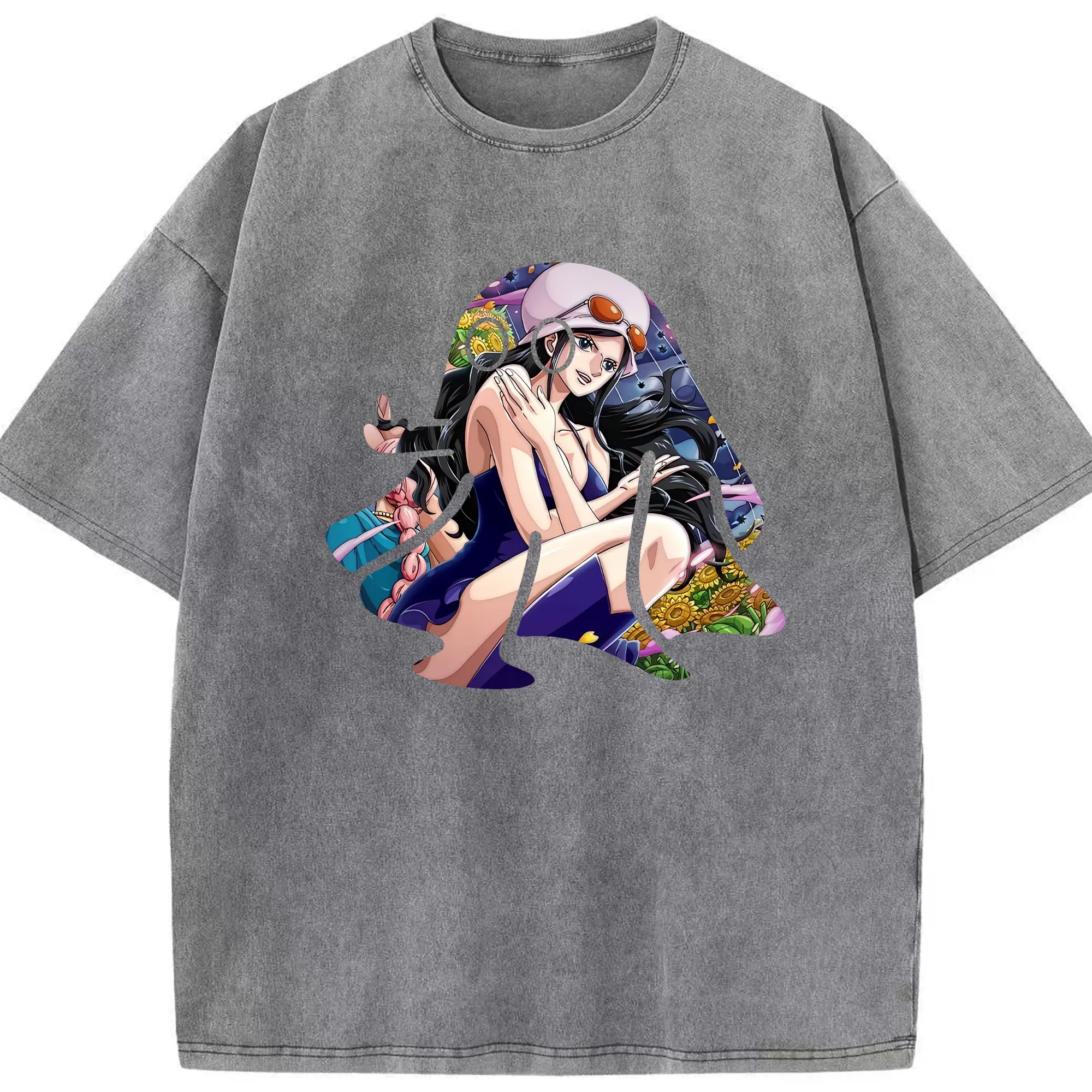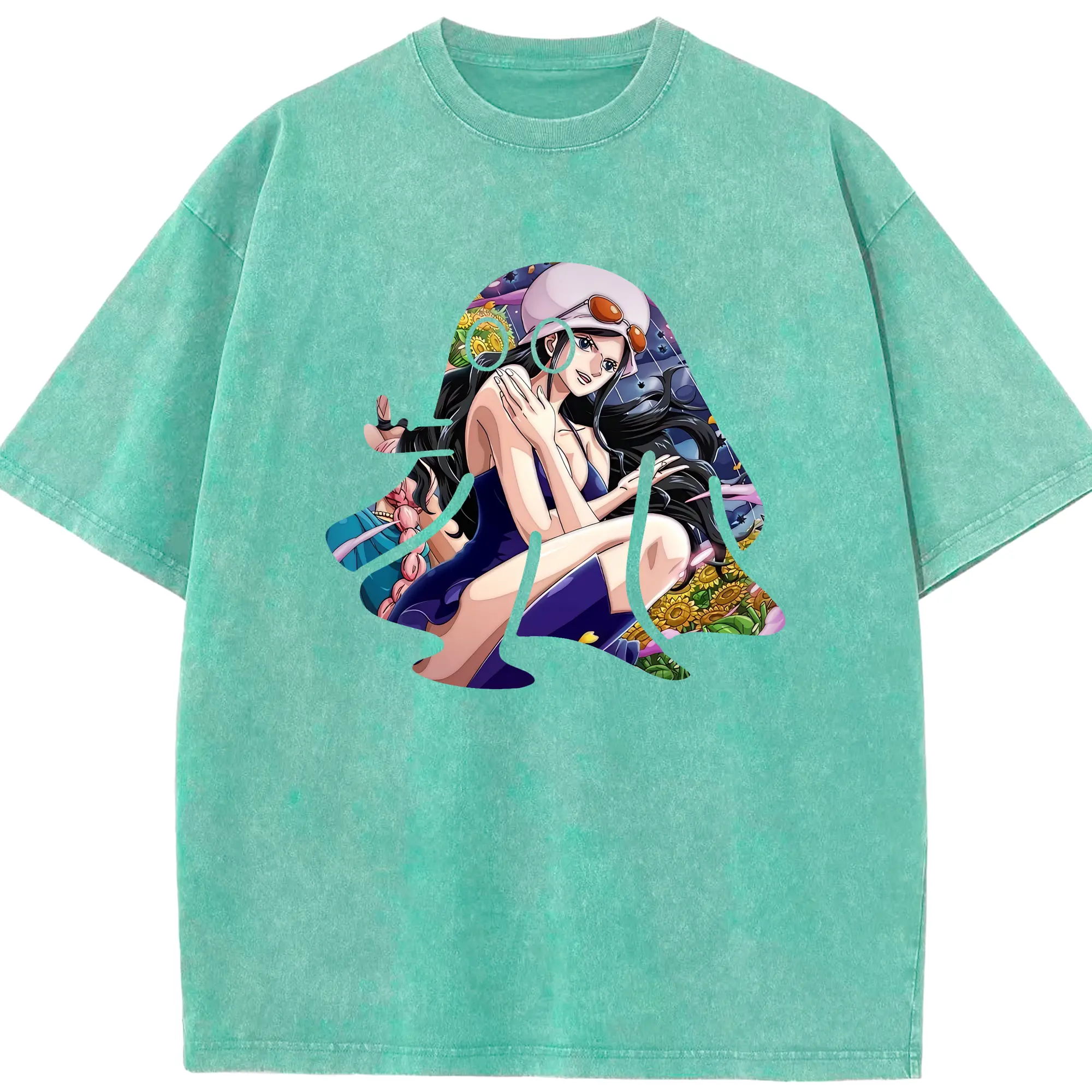 ワンピース グッズ ニコ・ロビン - 綿100% ヴィンテージ風 半袖Tシャツ ・ 背面プリント ・ 柔らか肌触り ・ 通気性 快適 ・ スポーツ カジュアル 外出用