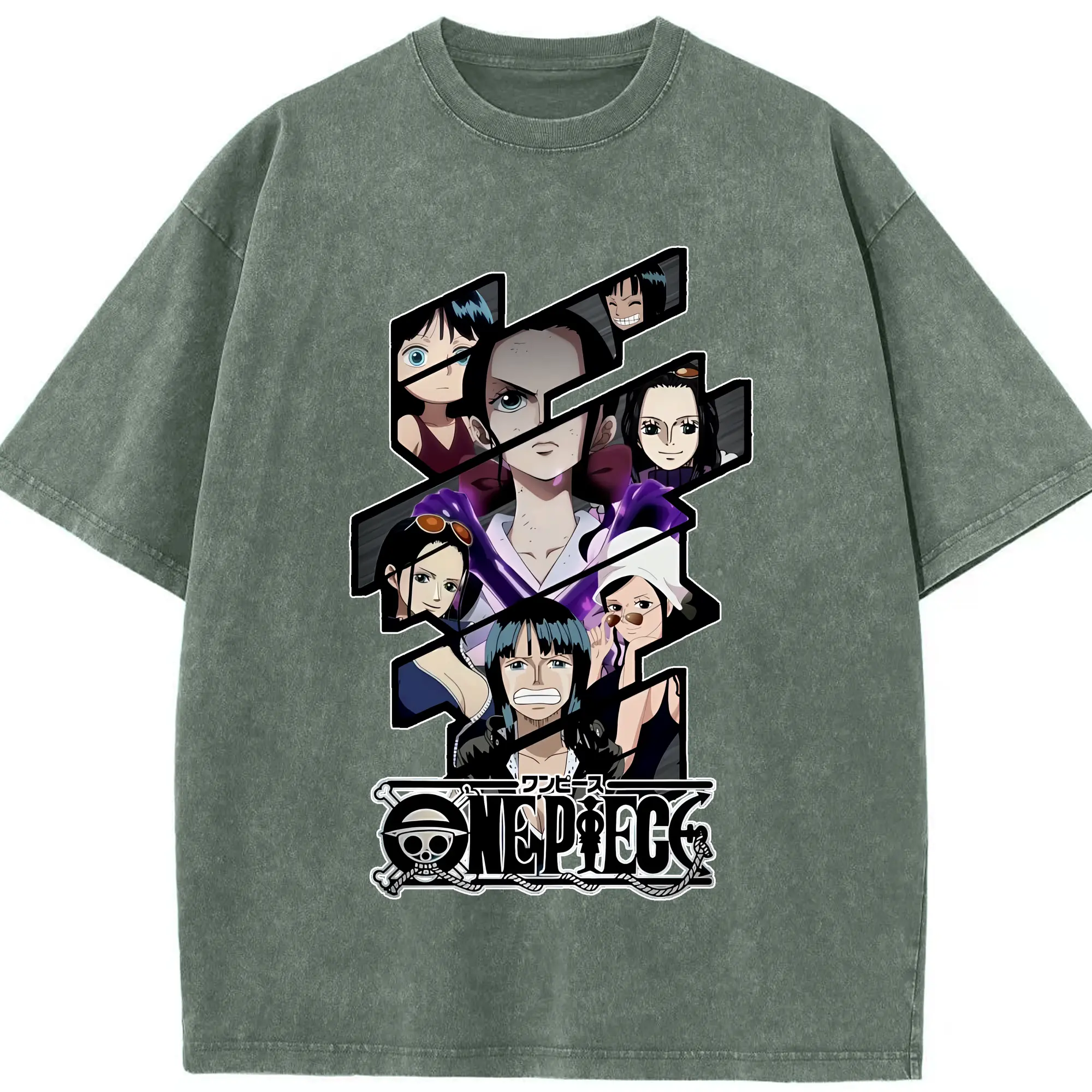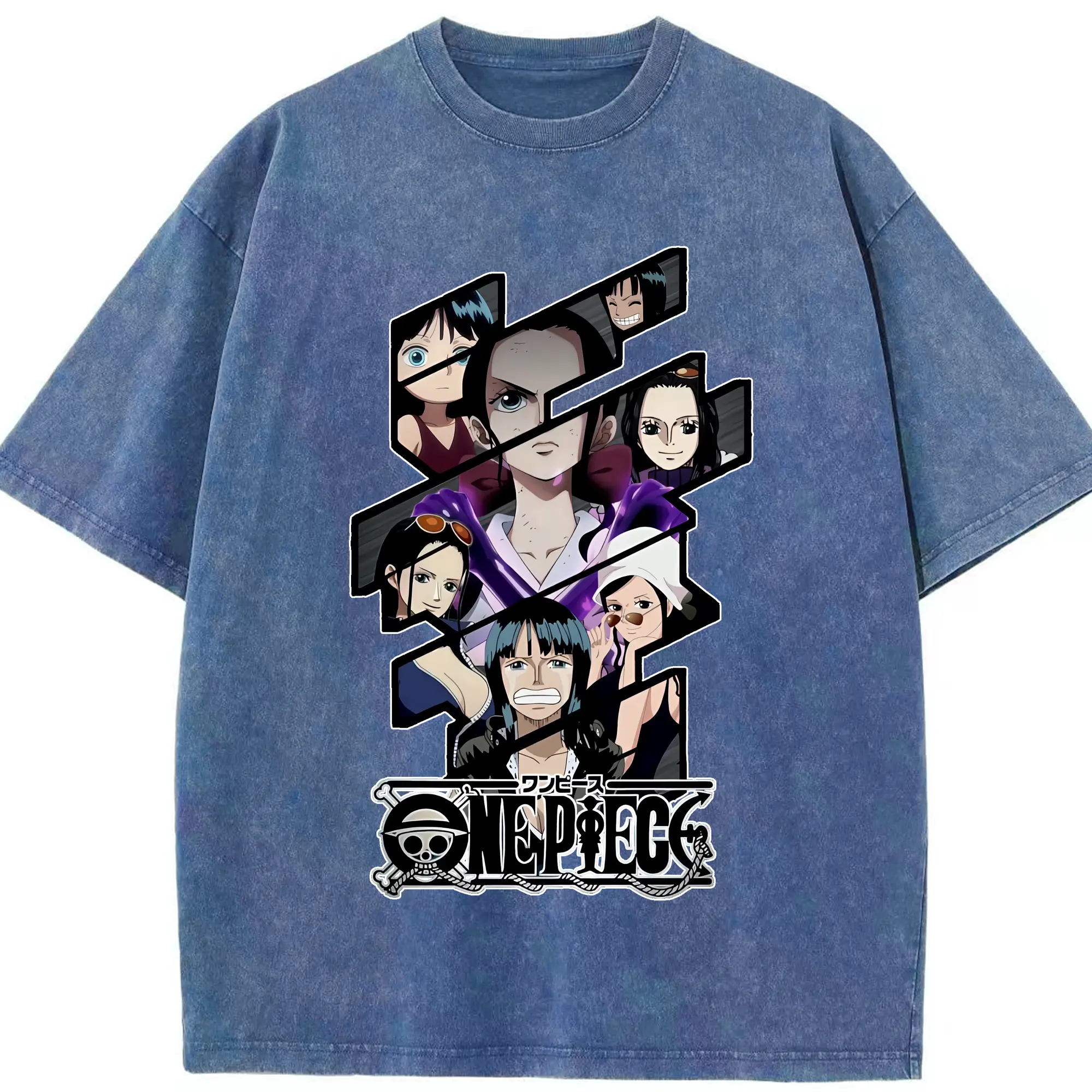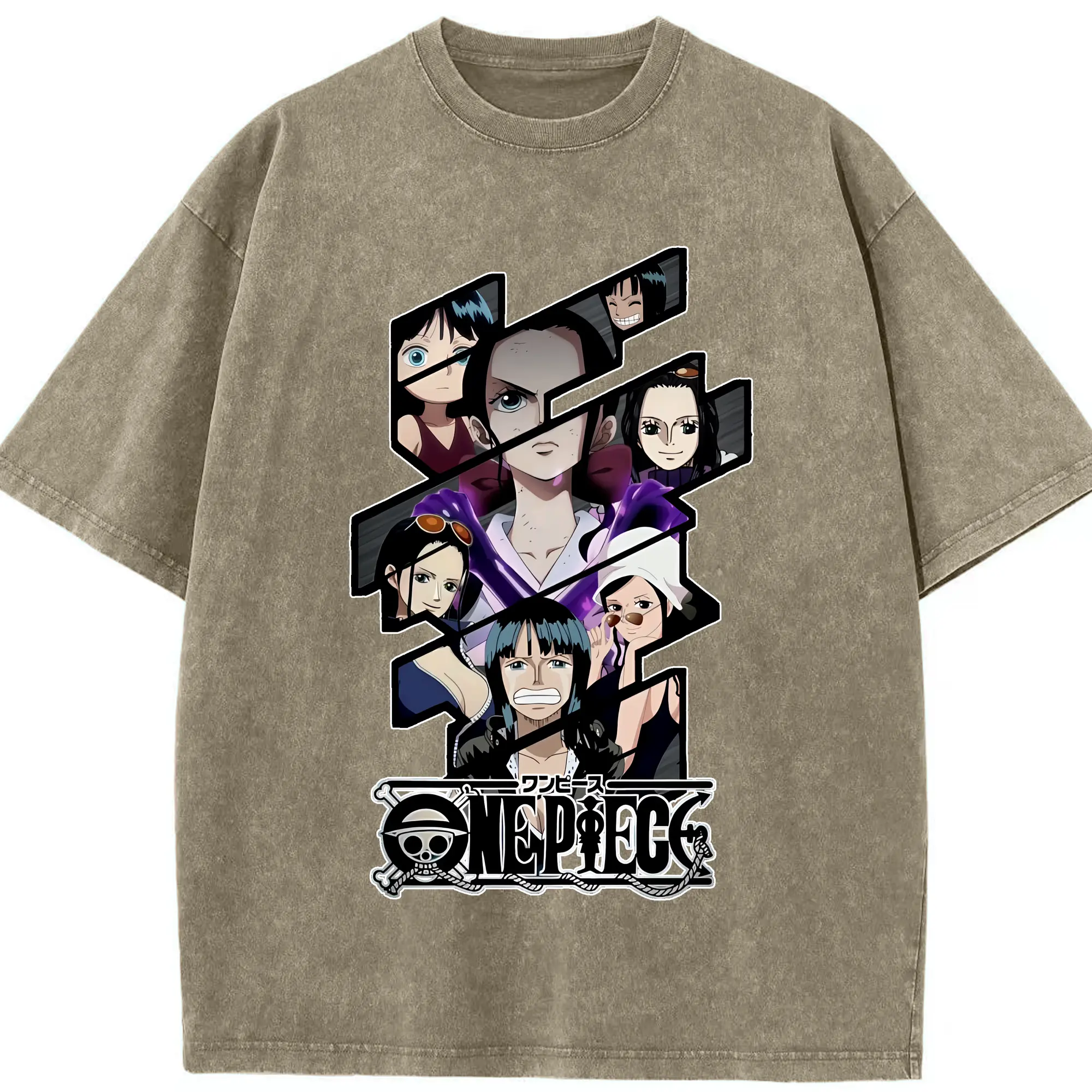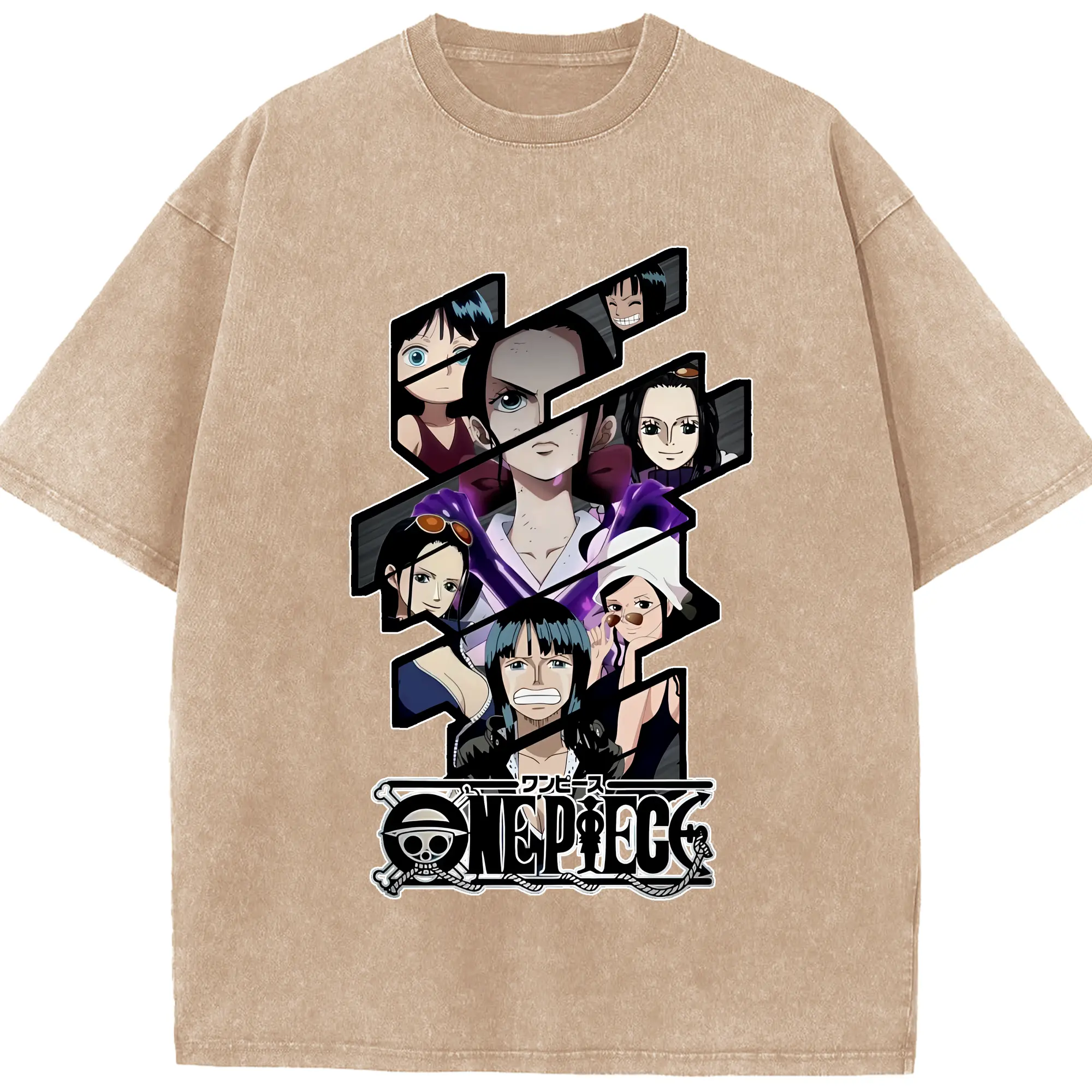 ワンピース グッズ ニコ・ロビン - 綿100% ヴィンテージ風 半袖Tシャツ ・ 背面プリント ・ 柔らか肌触り ・ 通気性 快適 ・ スポーツ カジュアル 外出用