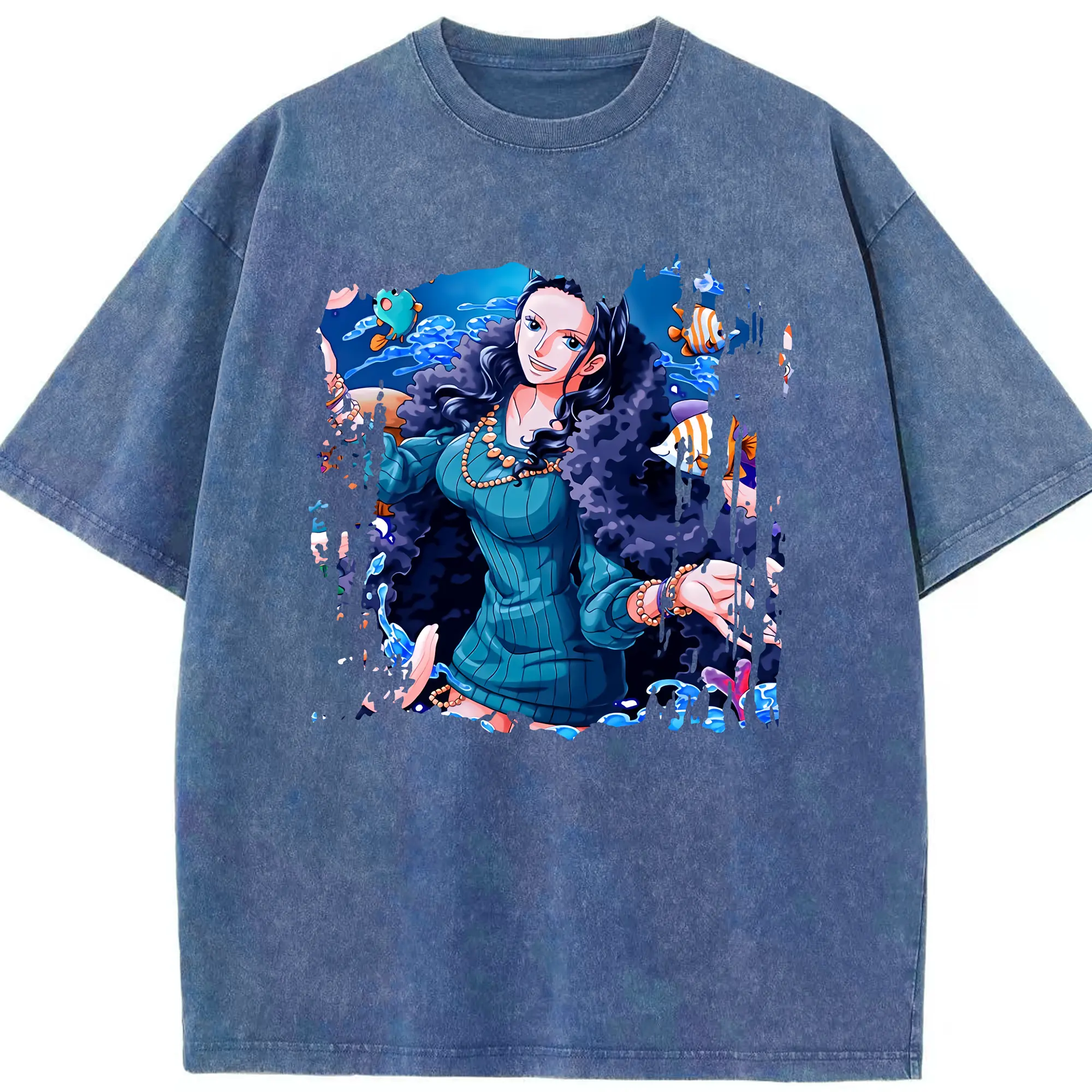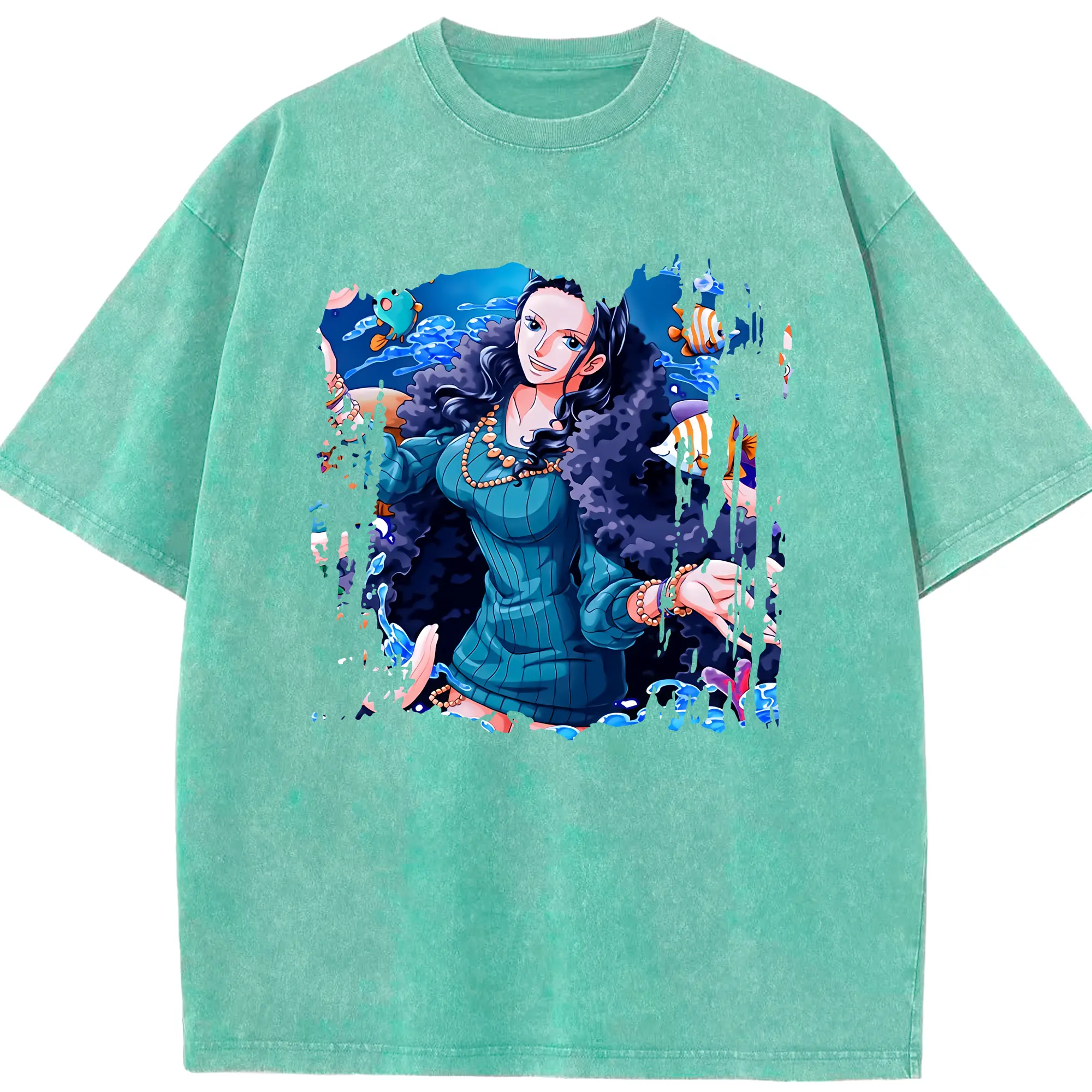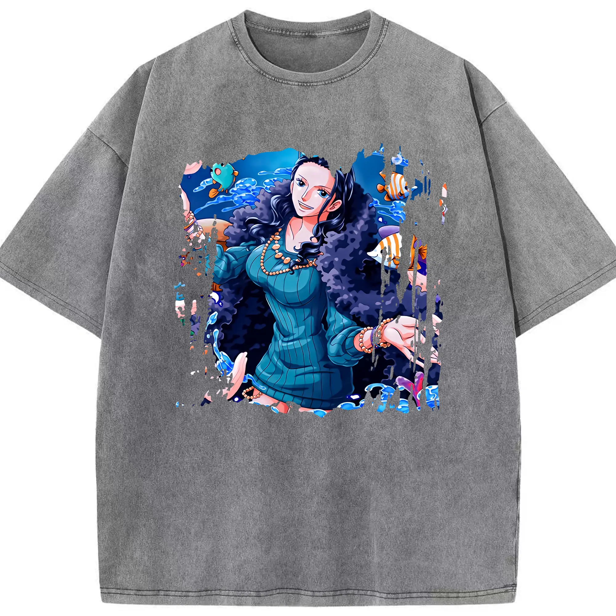 ワンピース グッズ ニコ・ロビン - 綿100% ヴィンテージ風 半袖Tシャツ ・ 背面プリント ・ 柔らか肌触り ・ 通気性 快適 ・ スポーツ カジュアル 外出用