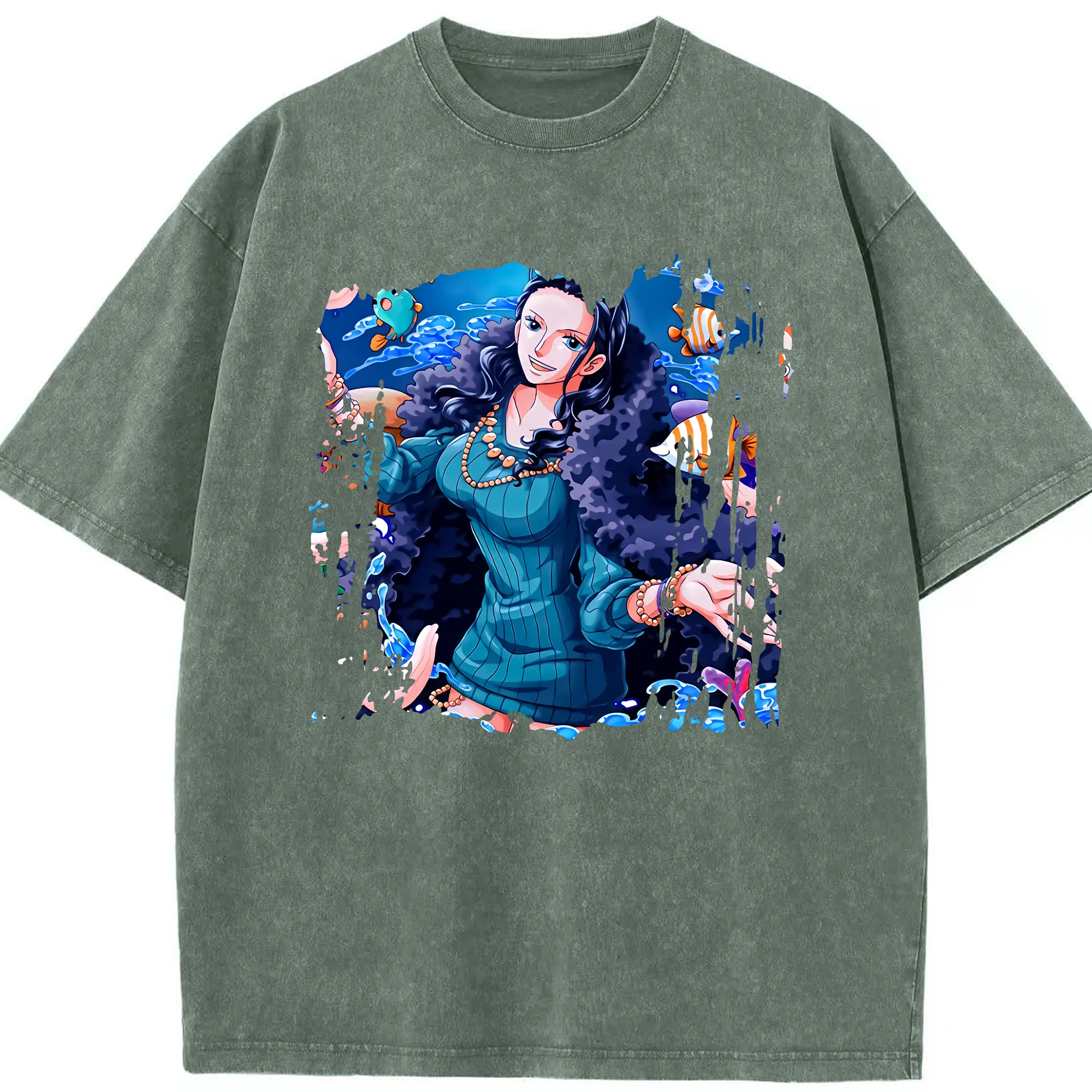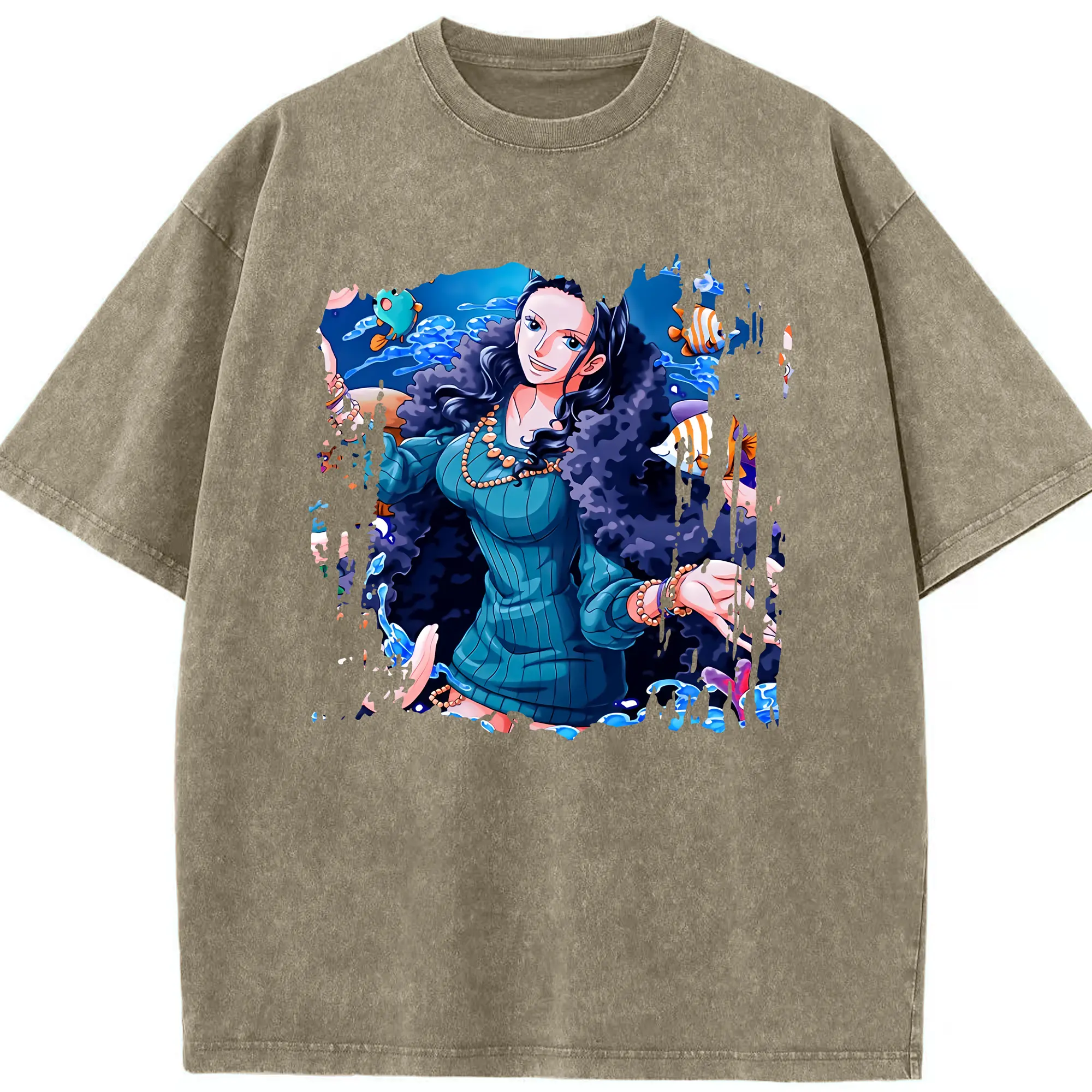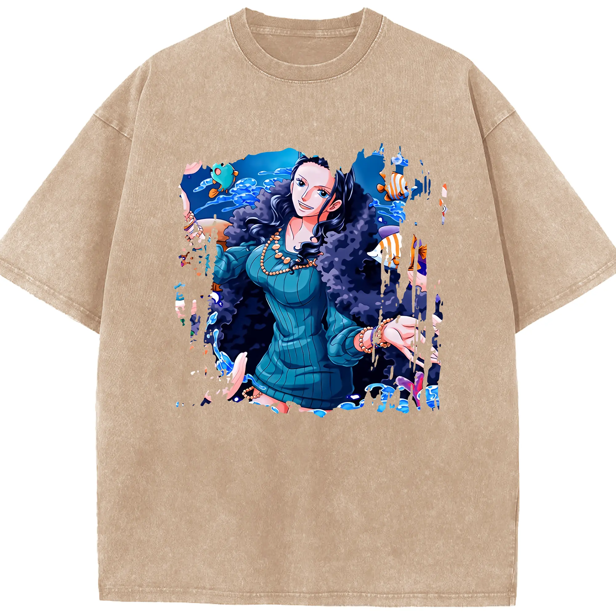 ワンピース グッズ ニコ・ロビン - 綿100% ヴィンテージ風 半袖Tシャツ ・ 背面プリント ・ 柔らか肌触り ・ 通気性 快適 ・ スポーツ カジュアル 外出用