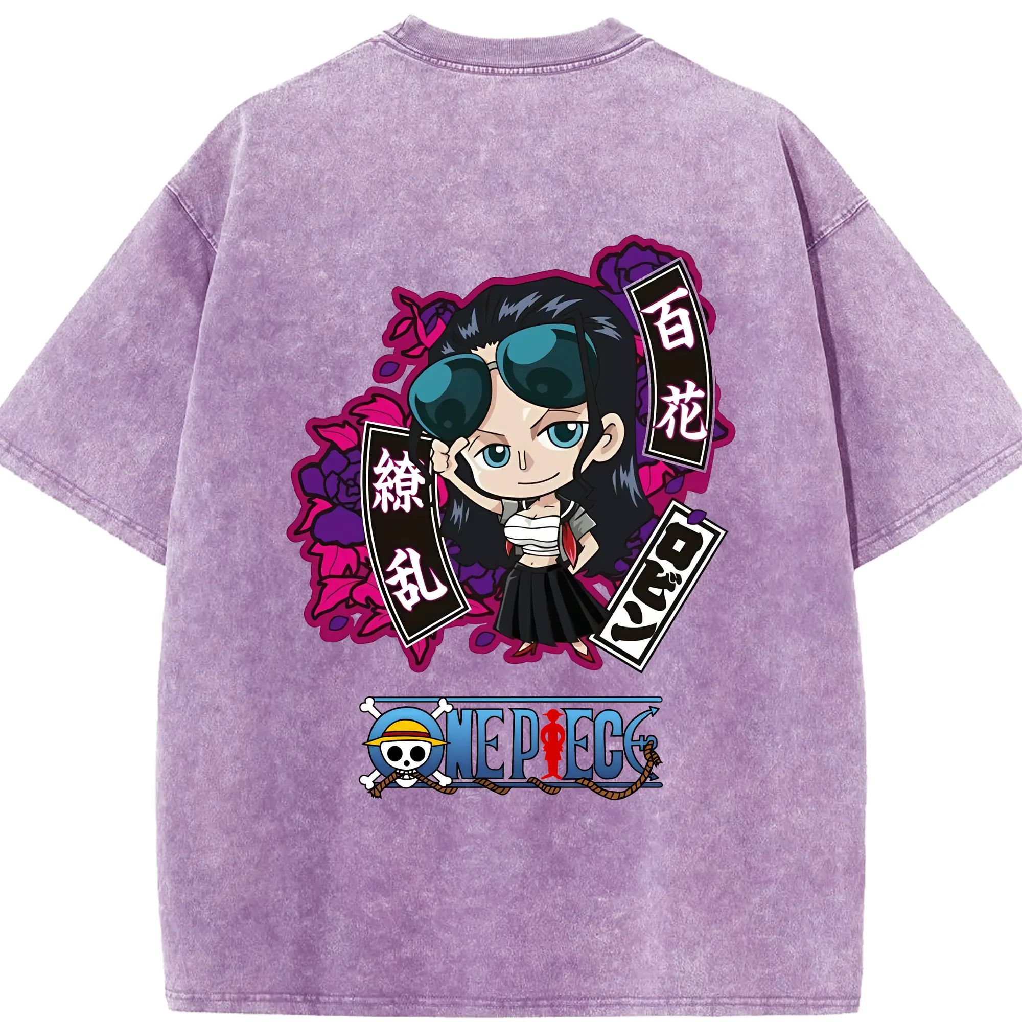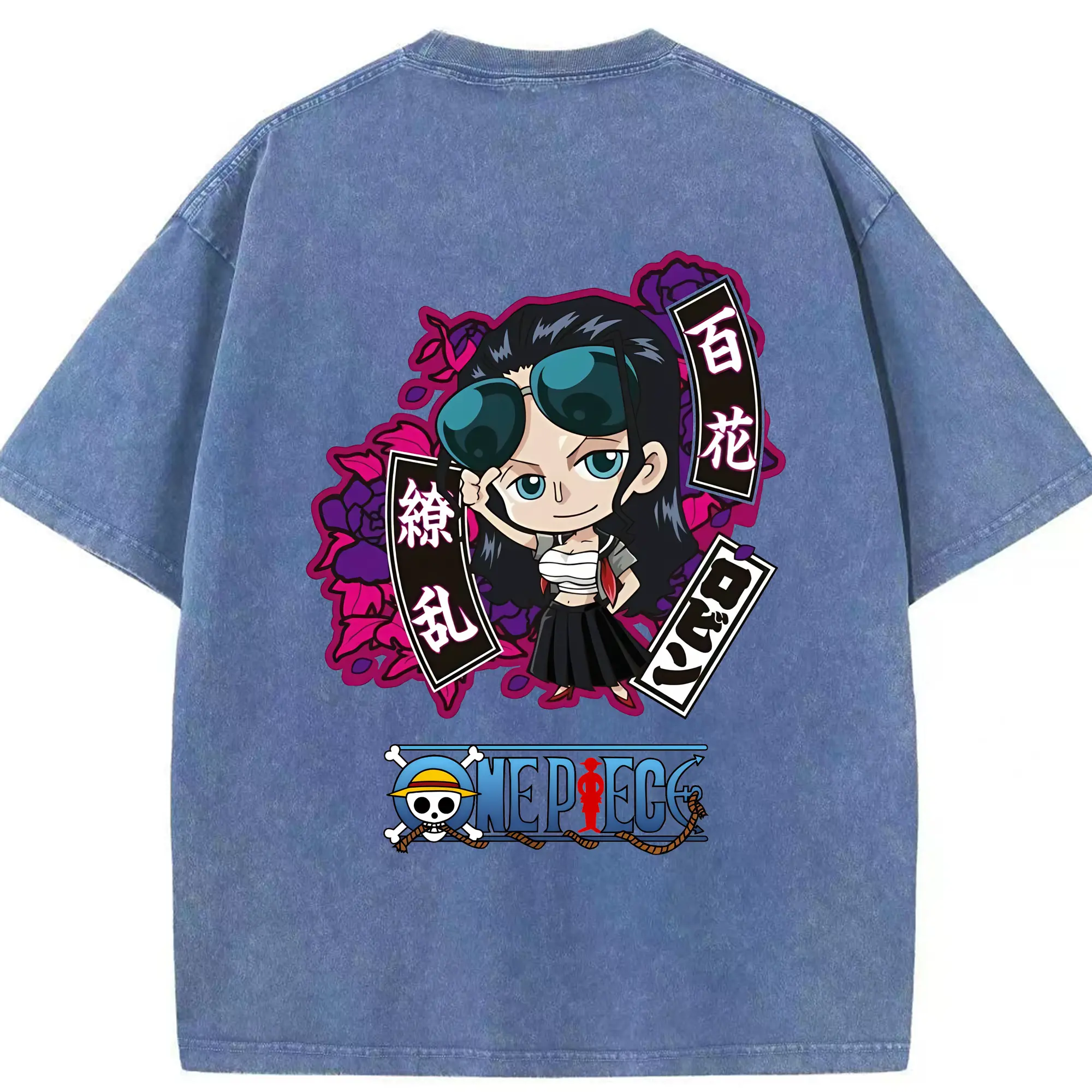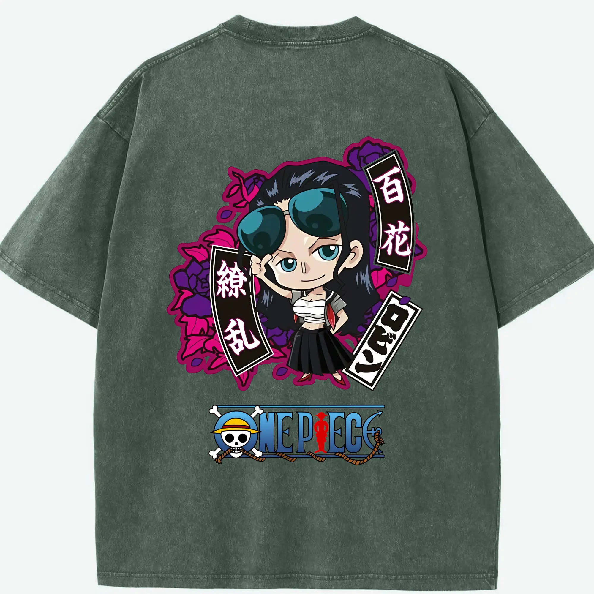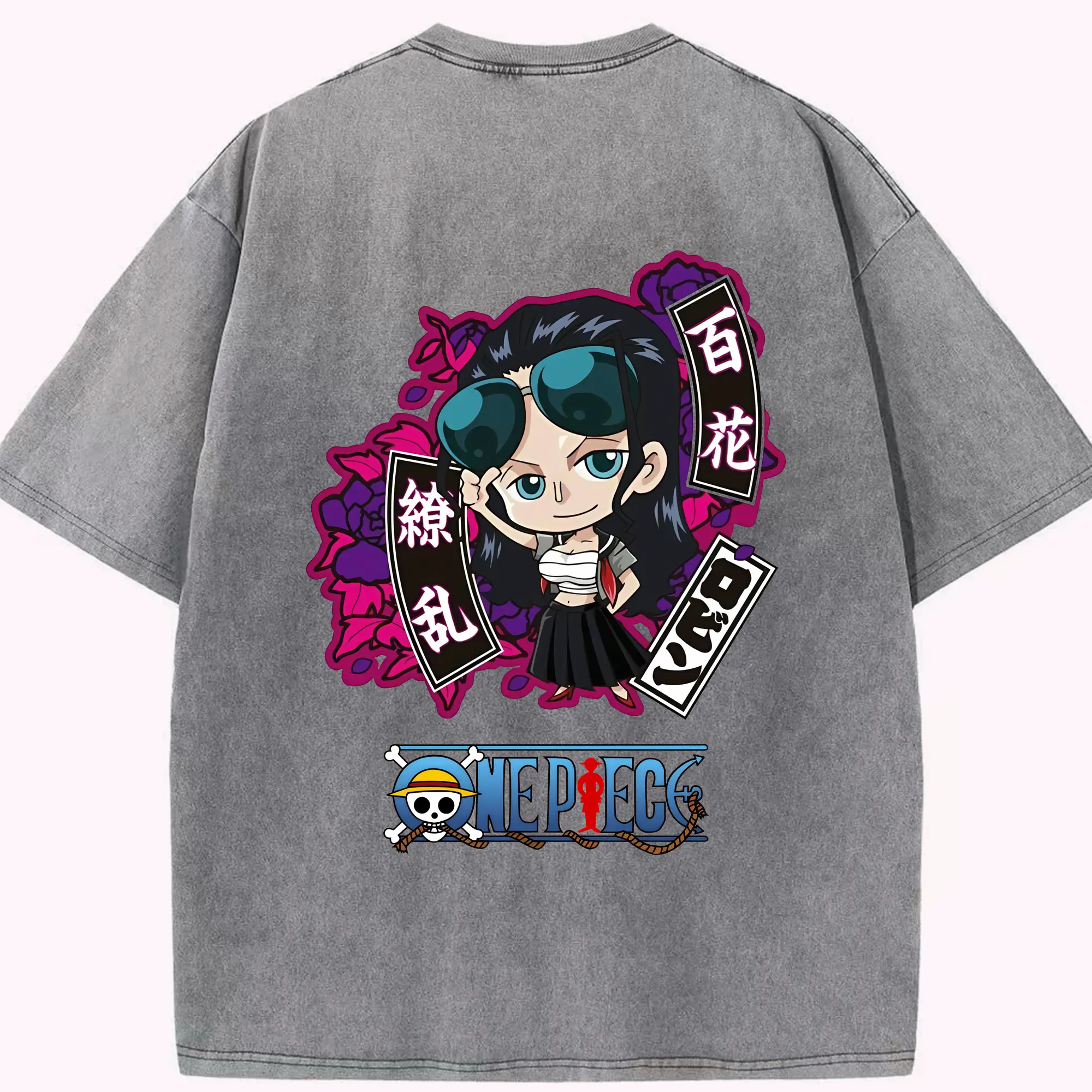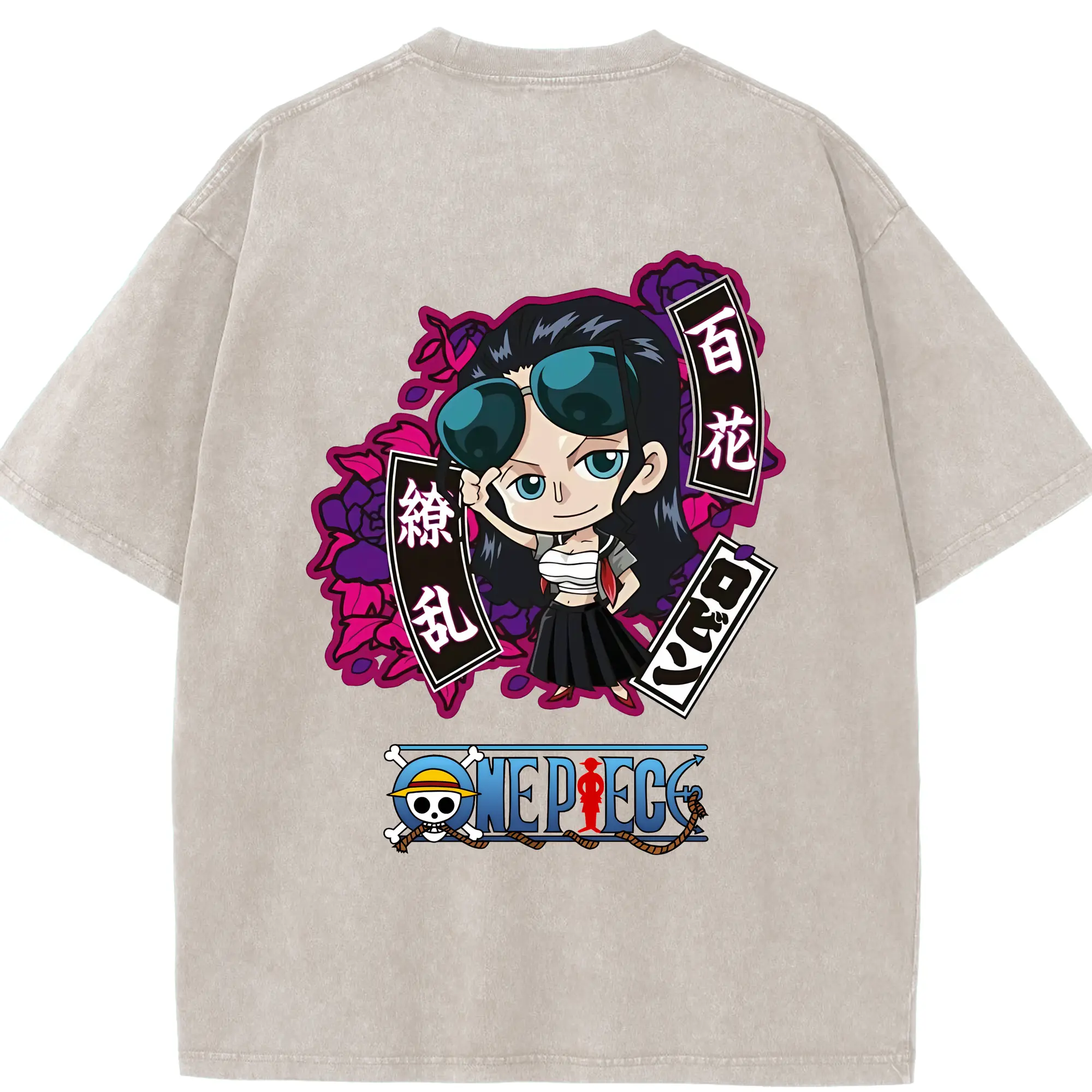 ワンピース グッズ ニコ・ロビン - 綿100% ヴィンテージ風 半袖Tシャツ ・ フロントプリント ・ 柔らか肌触り ・ 通気性 快適 ・ スポーツ カジュアル 外出用