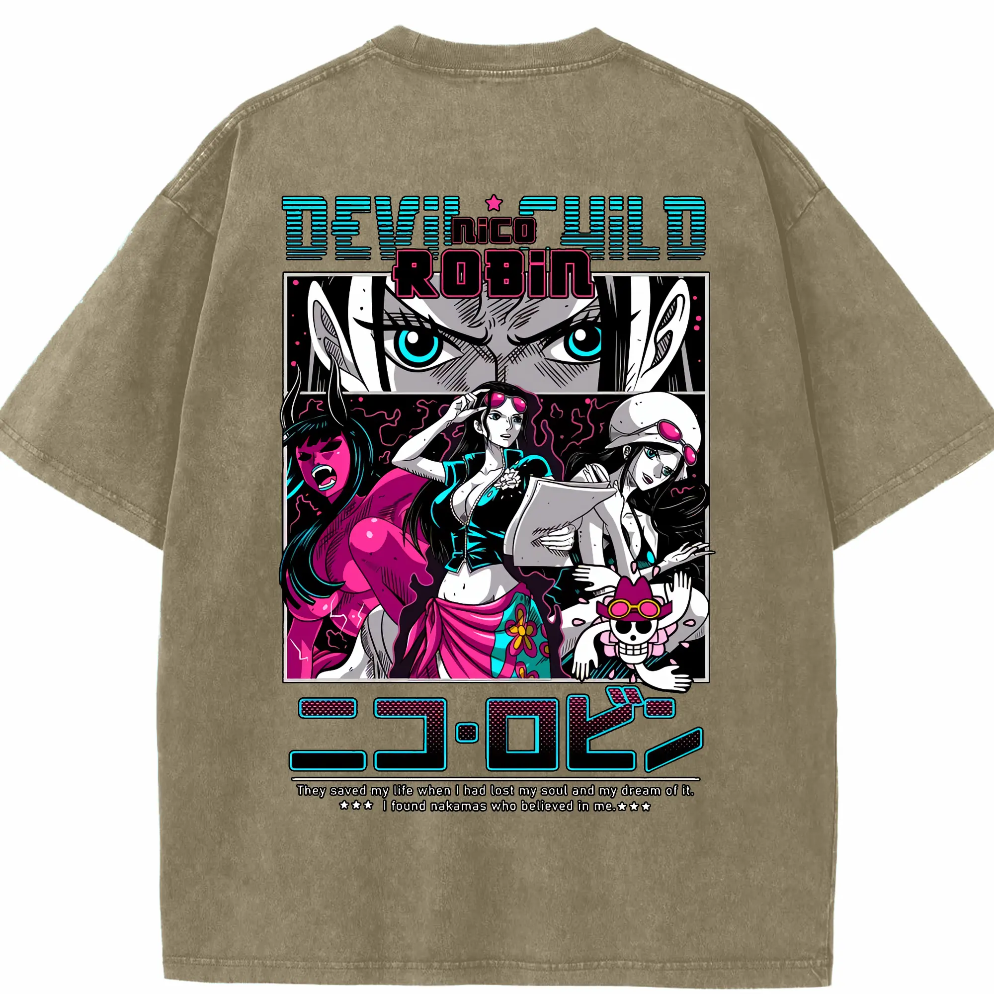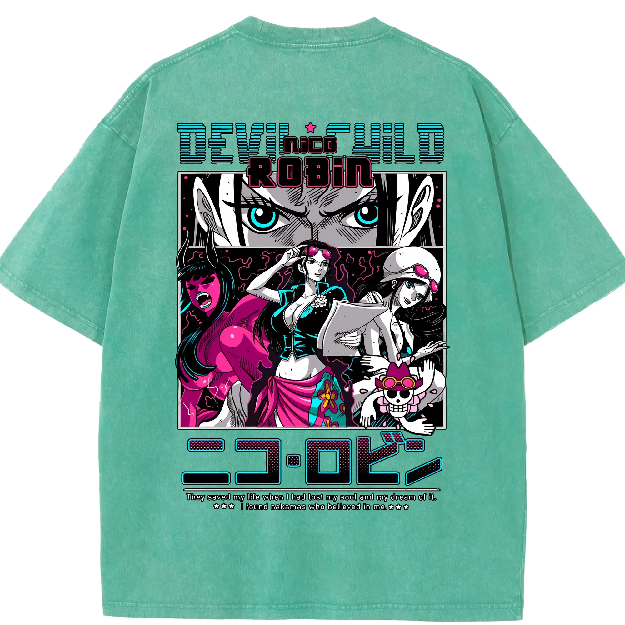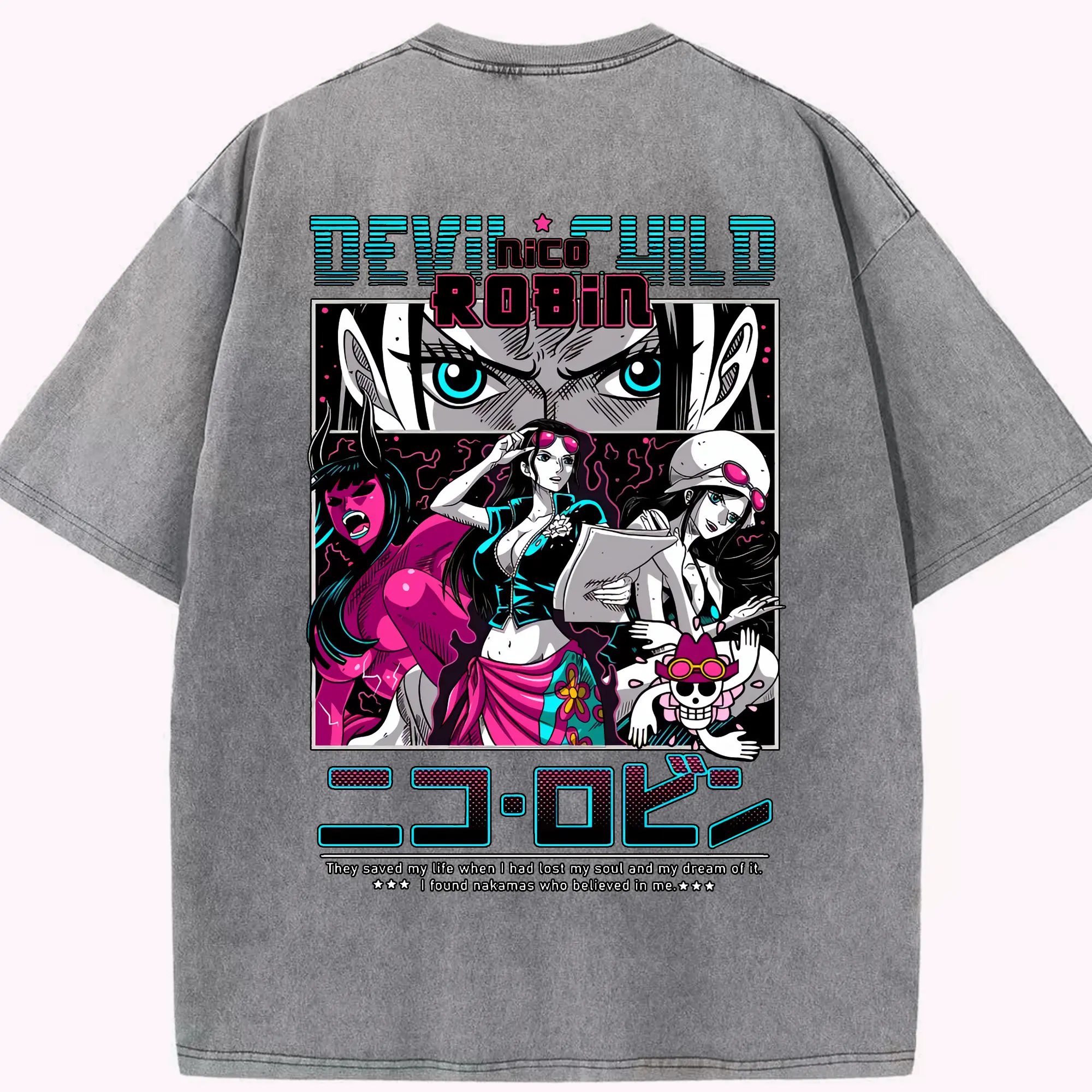 ワンピース グッズ ニコ・ロビン - 綿100% ヴィンテージ風 半袖Tシャツ ・ フロントプリント ・ 柔らか肌触り ・ 通気性 快適 ・ スポーツ カジュアル 外出用
