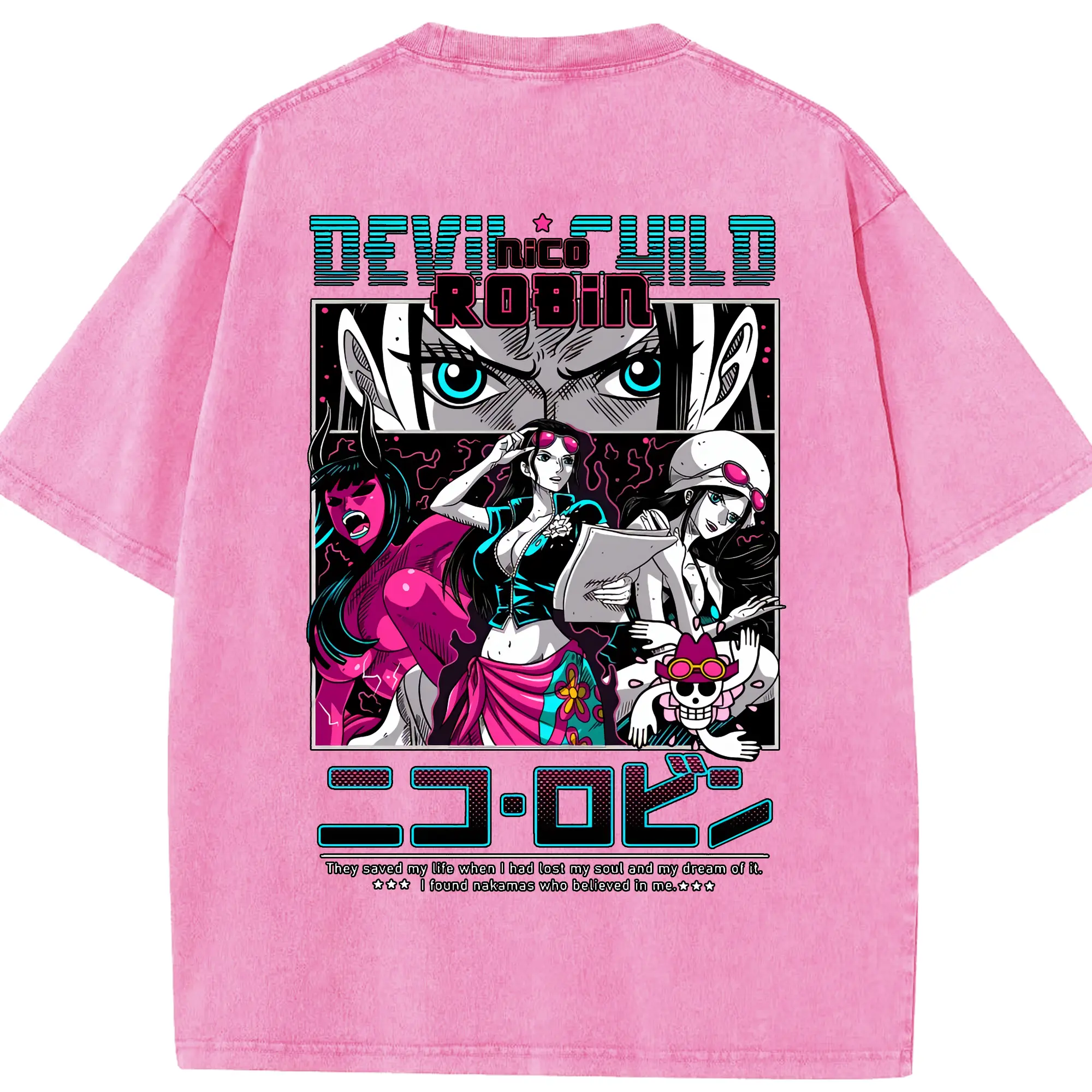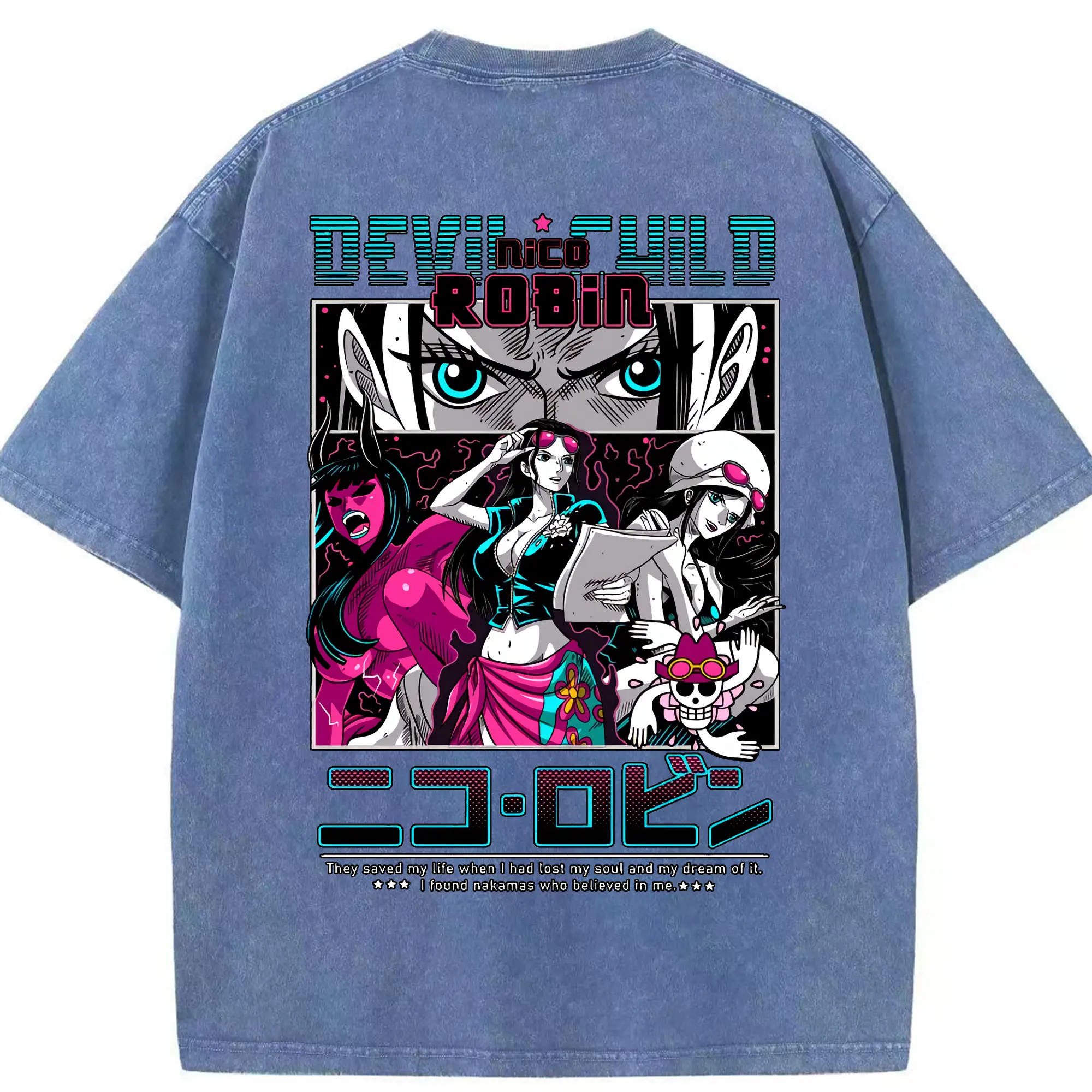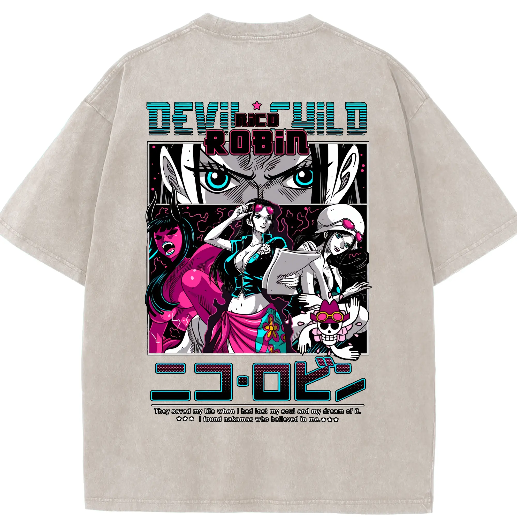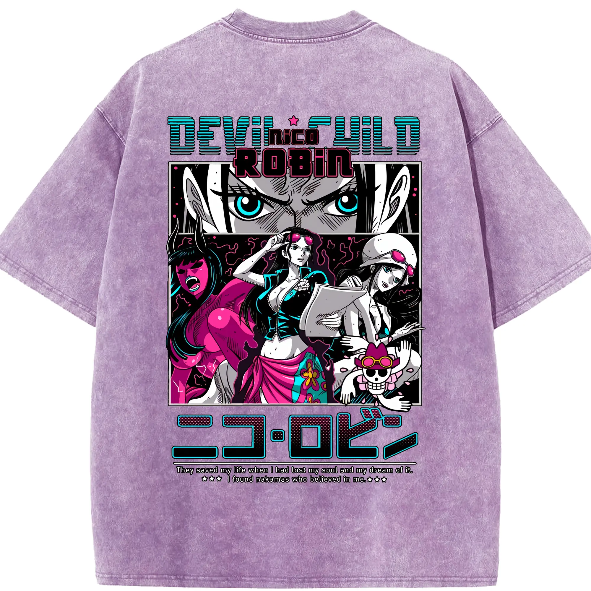 ワンピース グッズ ニコ・ロビン - 綿100% ヴィンテージ風 半袖Tシャツ ・ フロントプリント ・ 柔らか肌触り ・ 通気性 快適 ・ スポーツ カジュアル 外出用