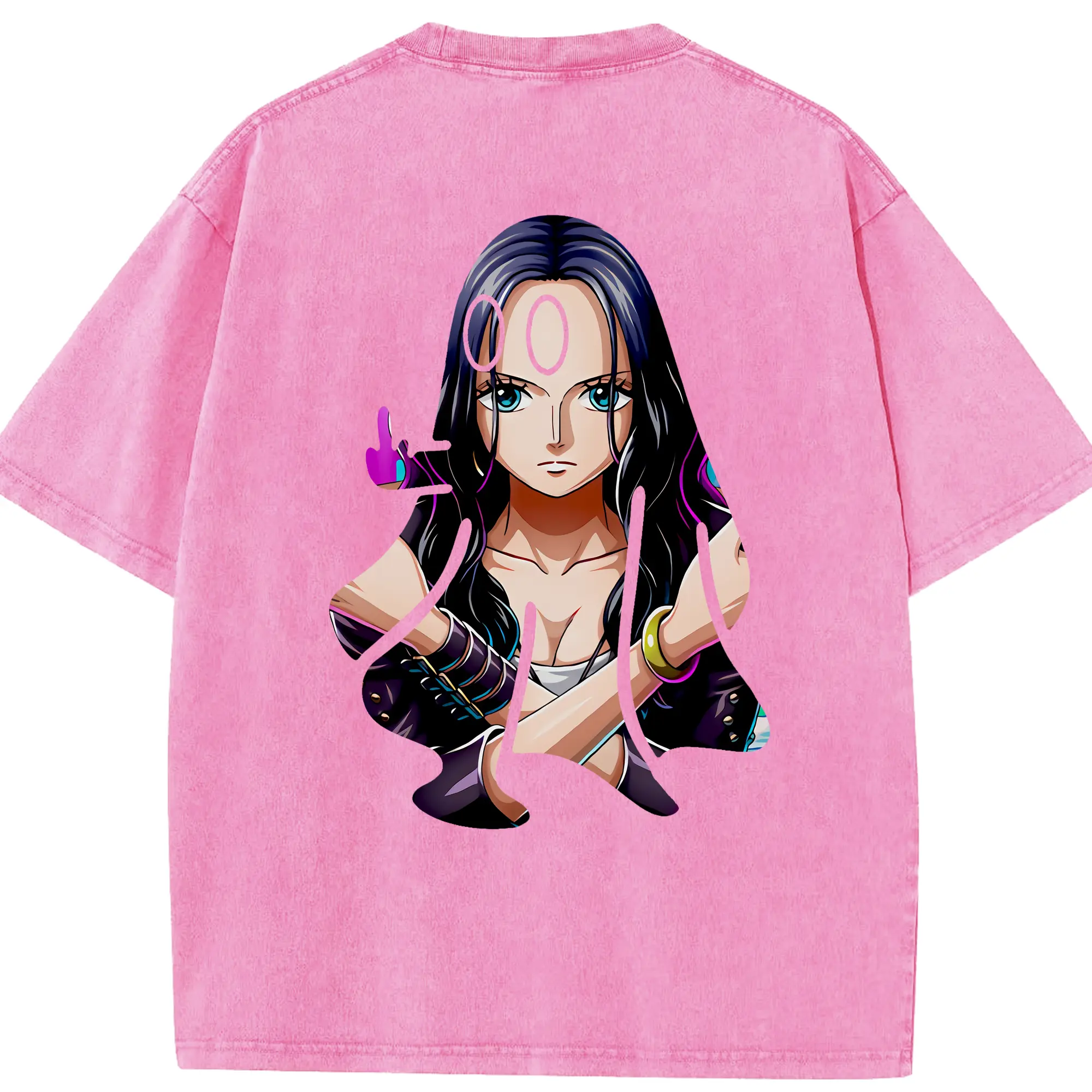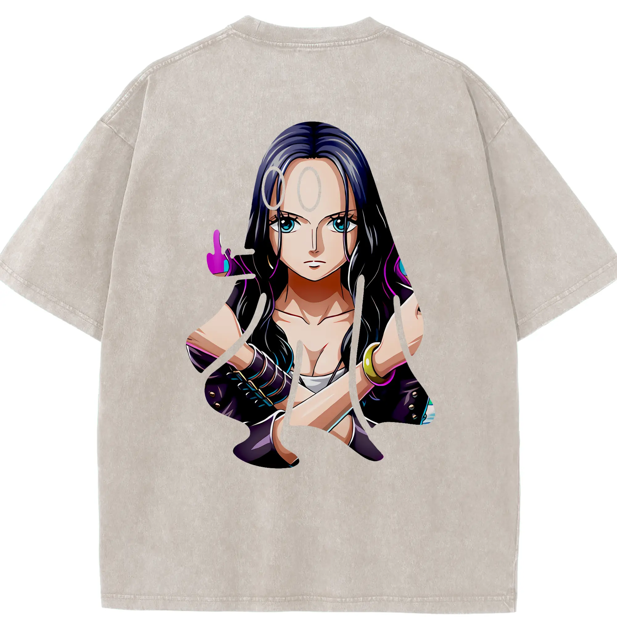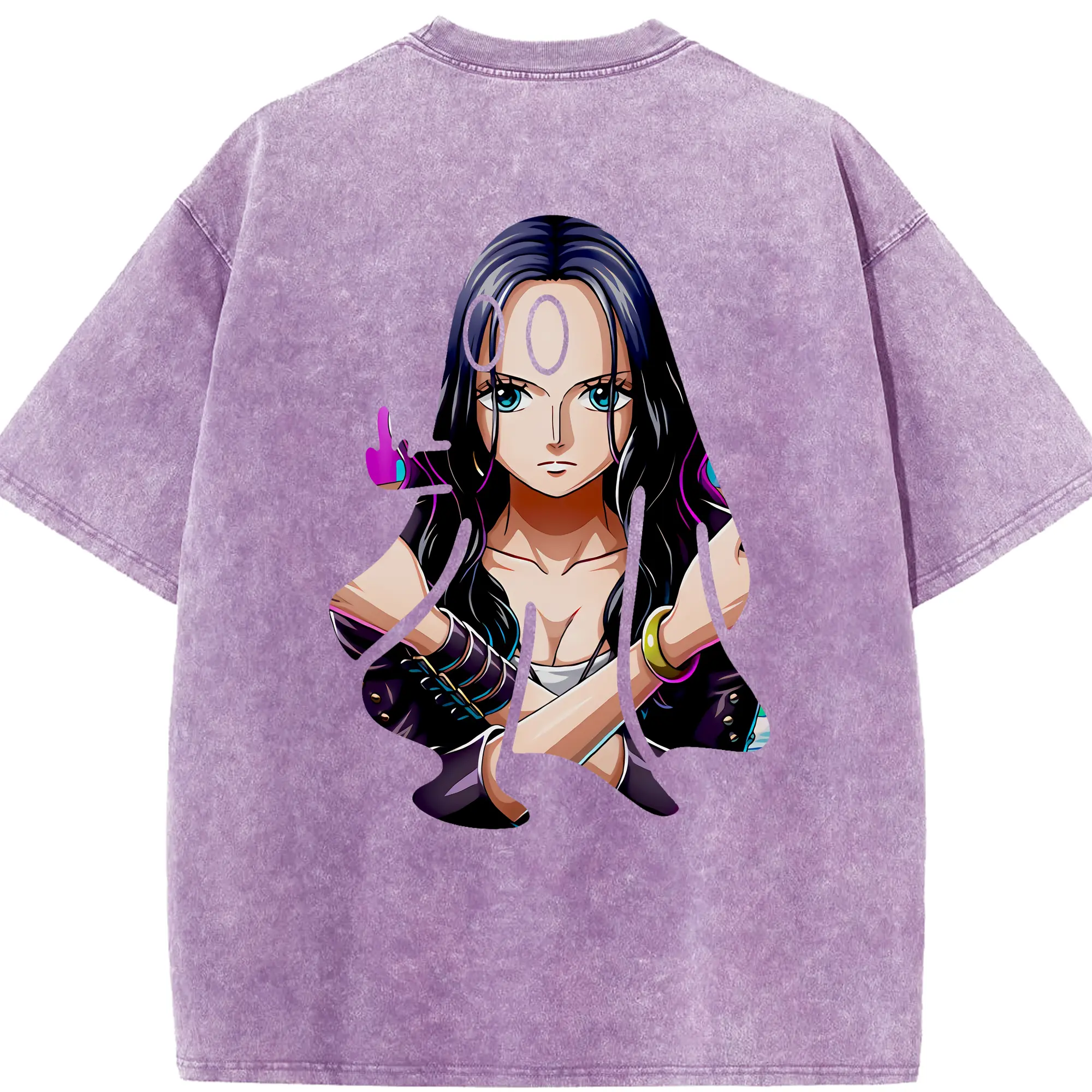 ワンピース グッズ ニコ・ロビン - 綿100% ヴィンテージ風 半袖Tシャツ ・ フロントプリント ・ 柔らか肌触り ・ 通気性 快適 ・ スポーツ カジュアル 外出用