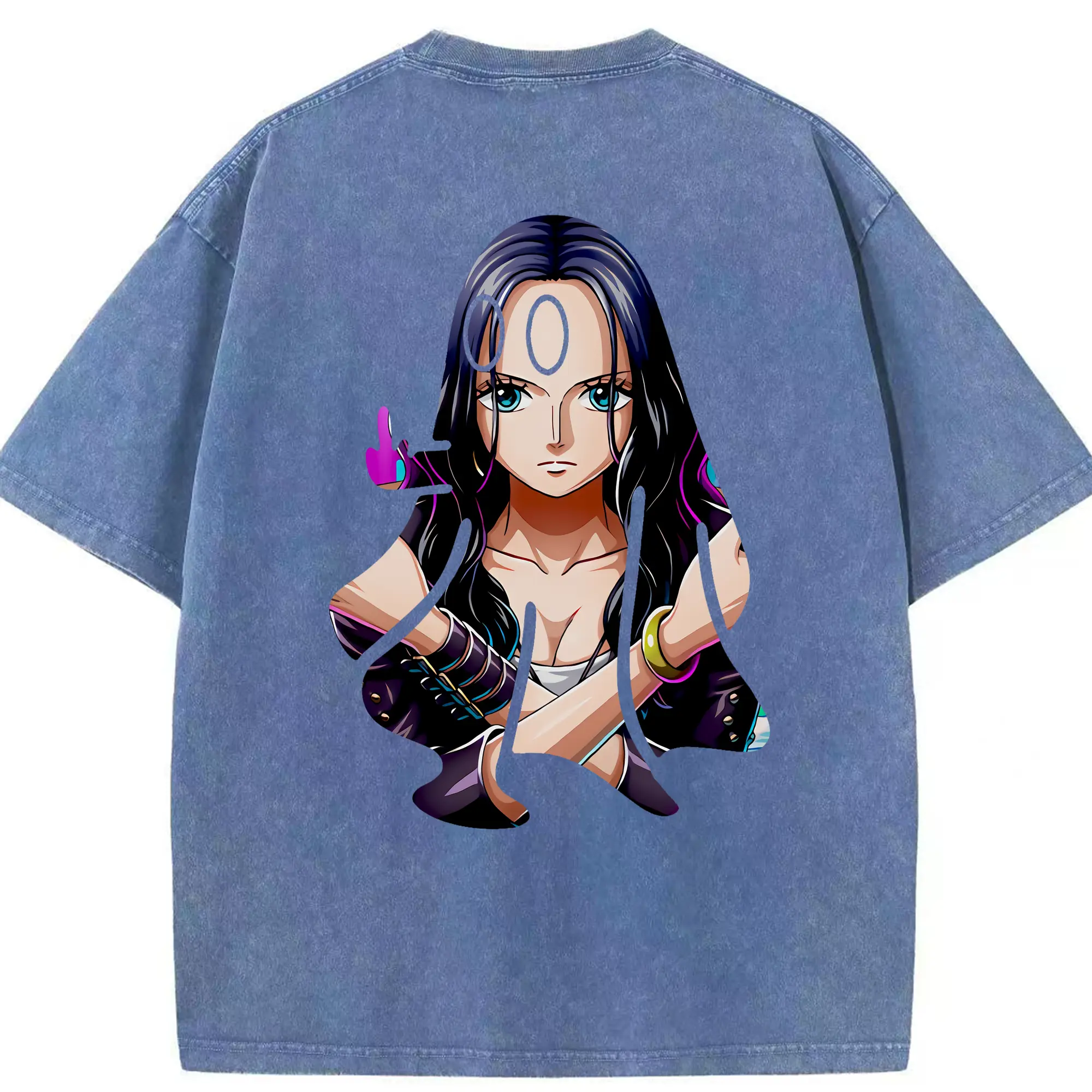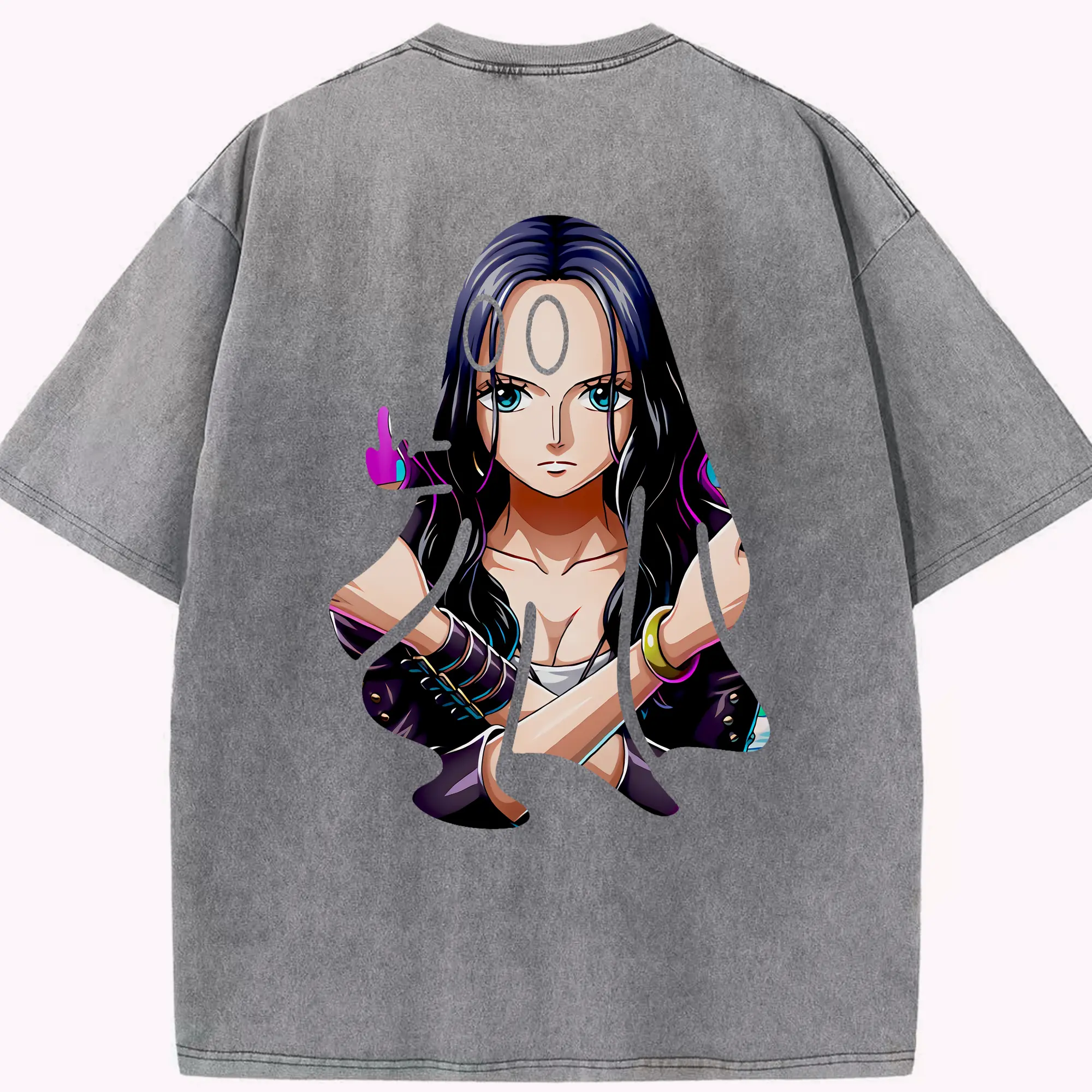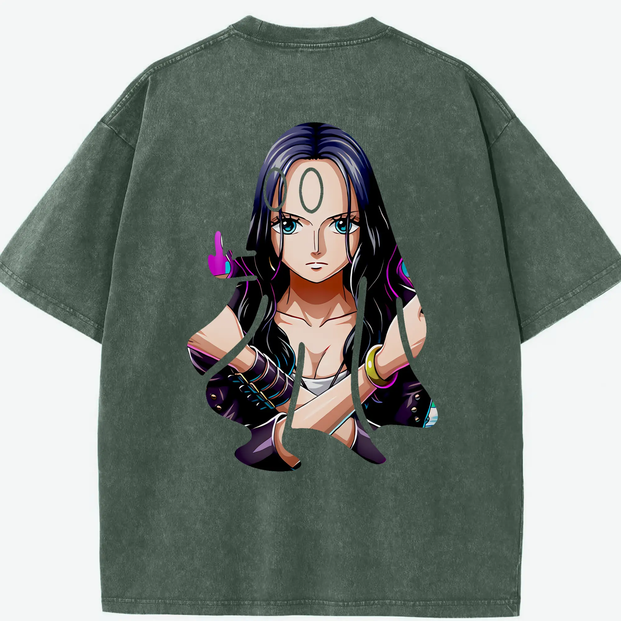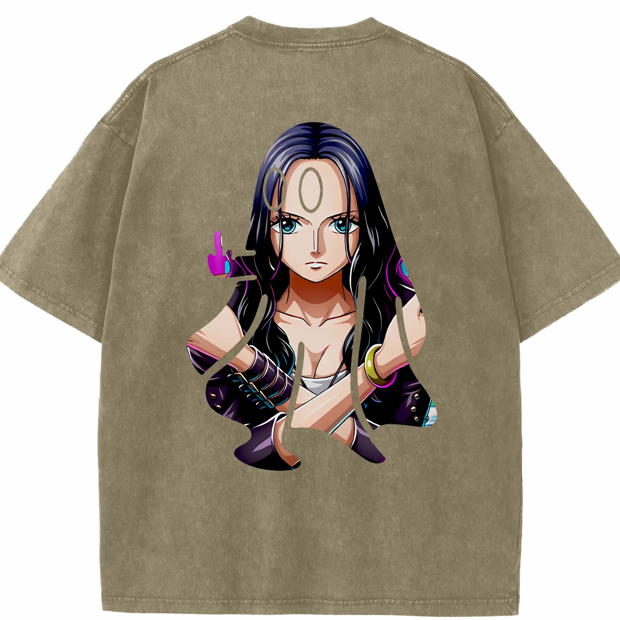ワンピース グッズ ニコ・ロビン - 綿100% ヴィンテージ風 半袖Tシャツ ・ フロントプリント ・ 柔らか肌触り ・ 通気性 快適 ・ スポーツ カジュアル 外出用