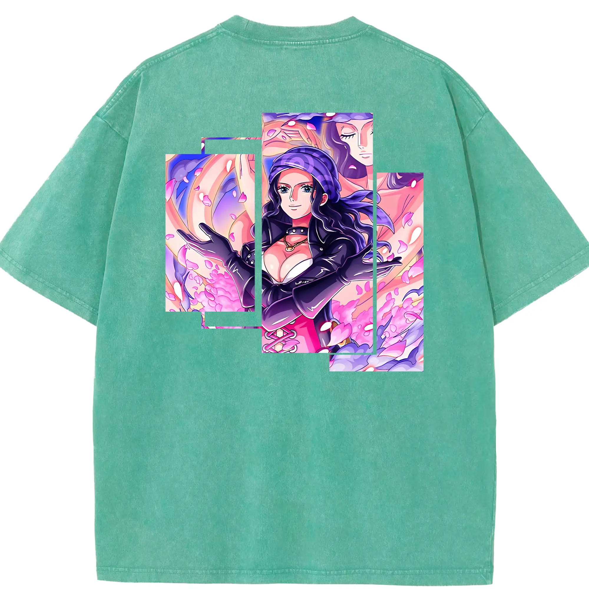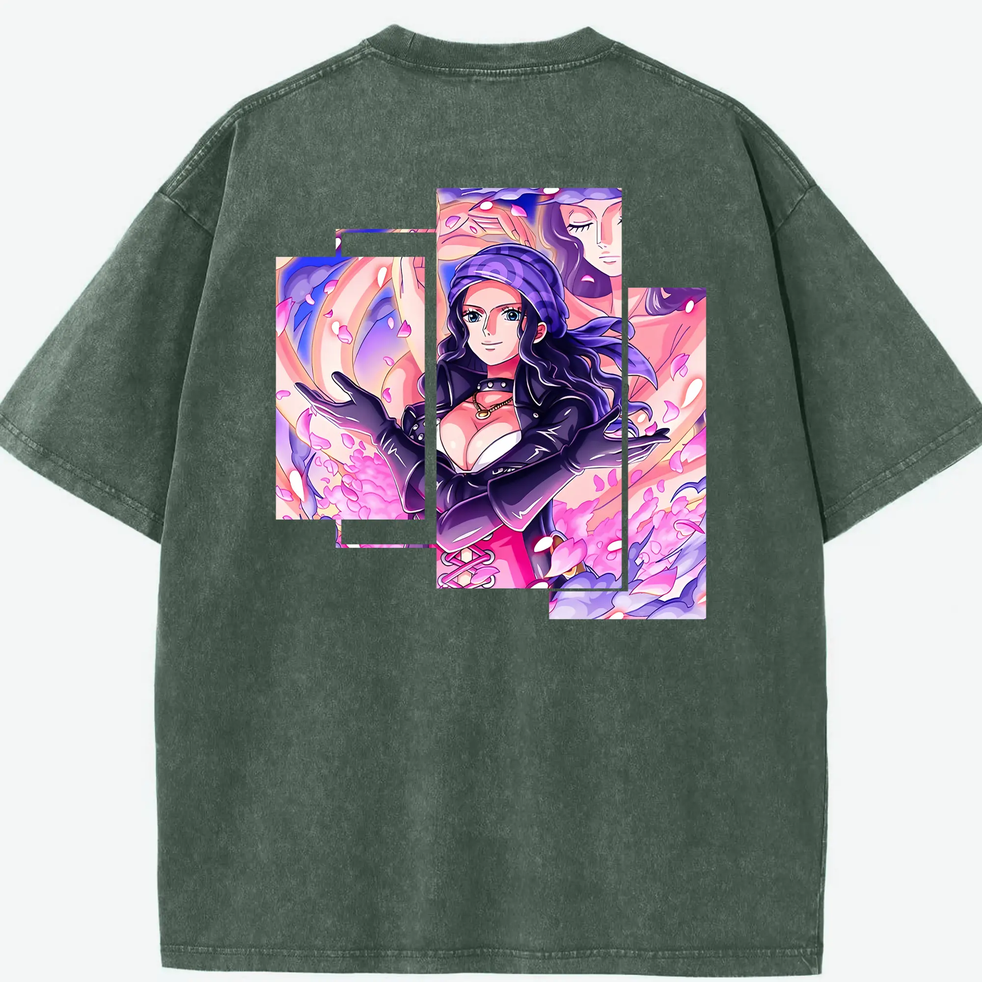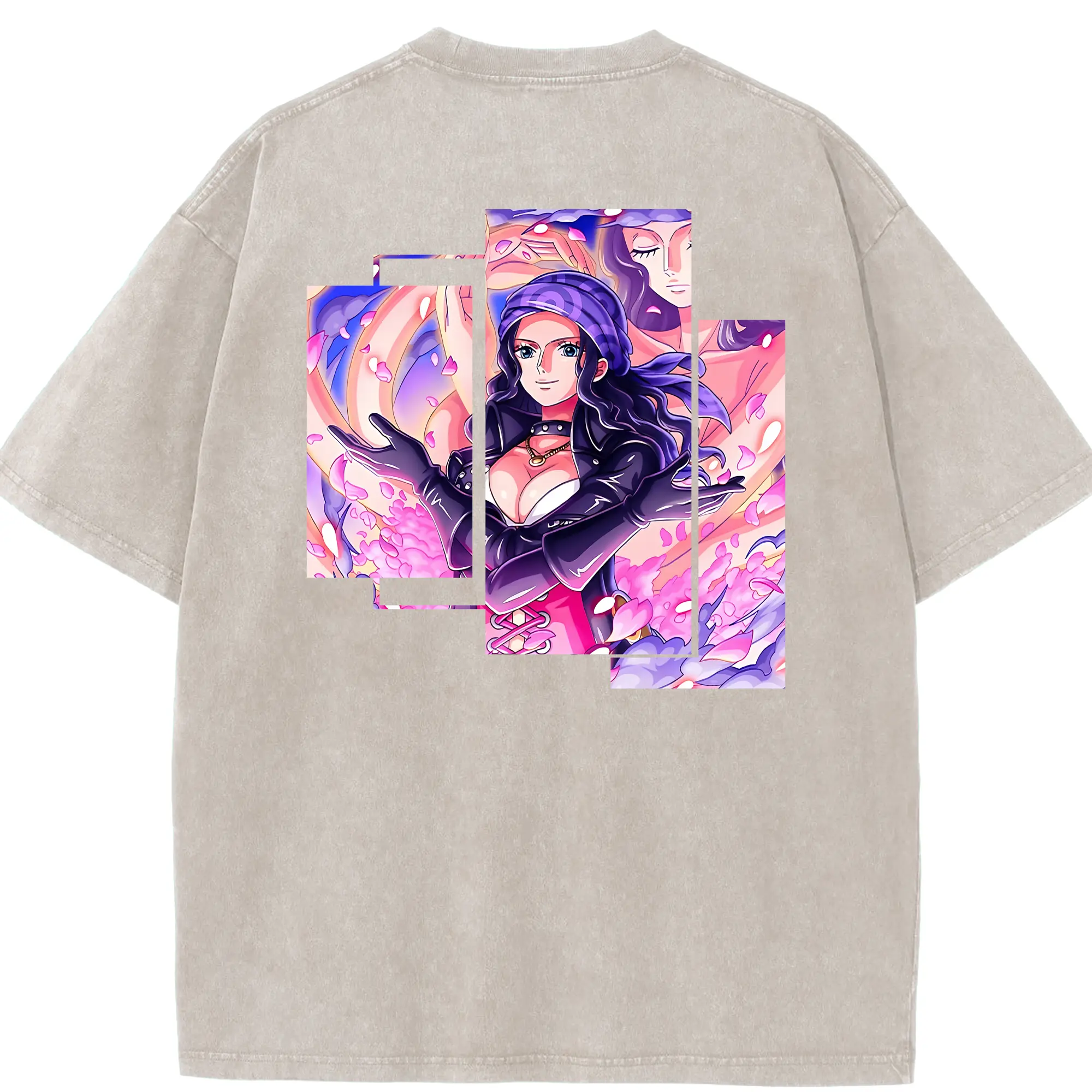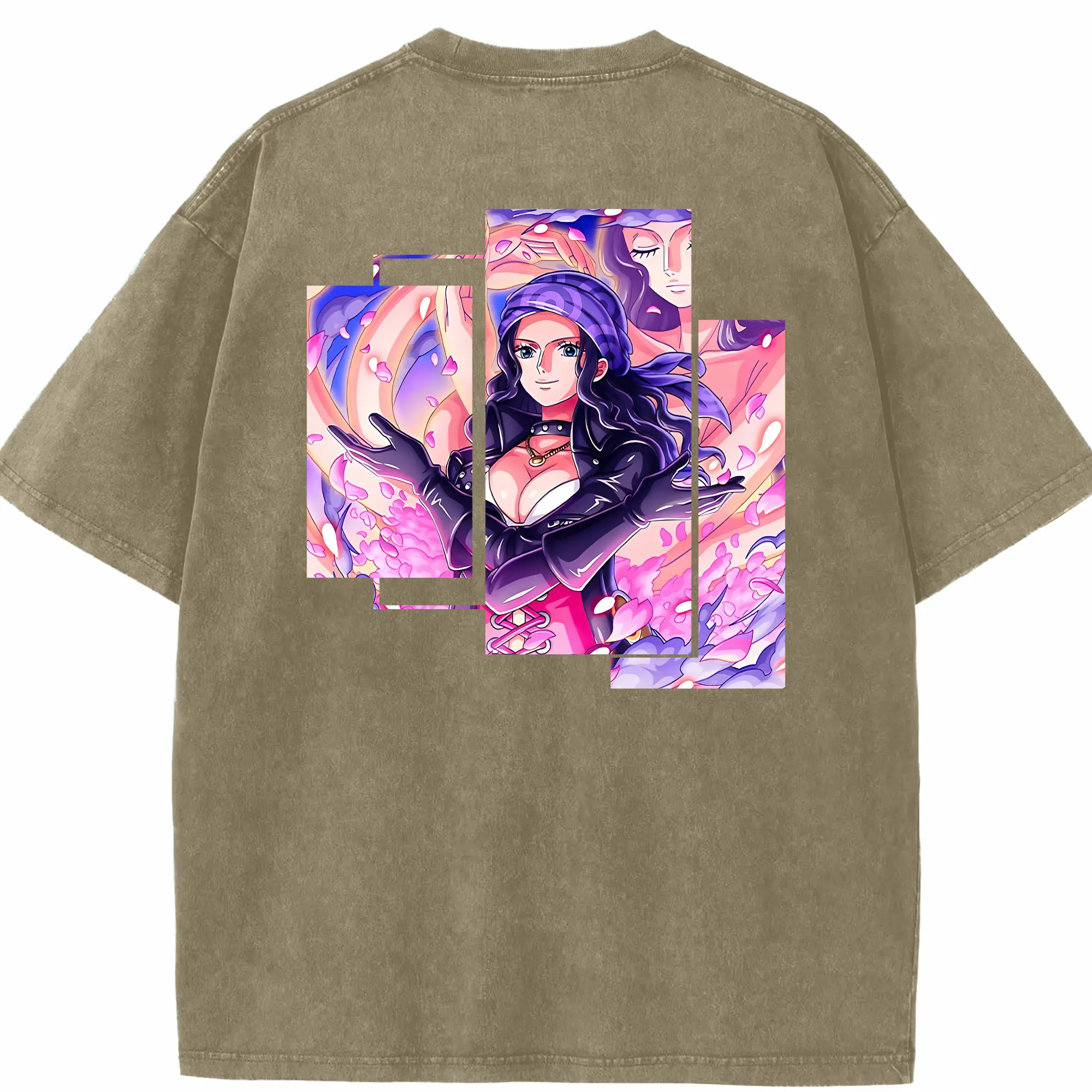 ワンピース グッズ ニコ・ロビン - 綿100% ヴィンテージ風 半袖Tシャツ ・ フロントプリント ・ 柔らか肌触り ・ 通気性 快適 ・ スポーツ カジュアル 外出用