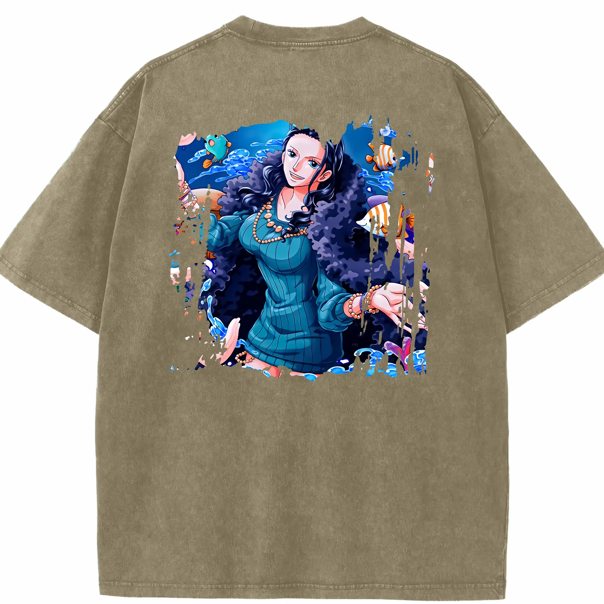 ワンピース グッズ ニコ・ロビン - 綿100% ヴィンテージ風 半袖Tシャツ ・ フロントプリント ・ 柔らか肌触り ・ 通気性 快適 ・ スポーツ カジュアル 外出用