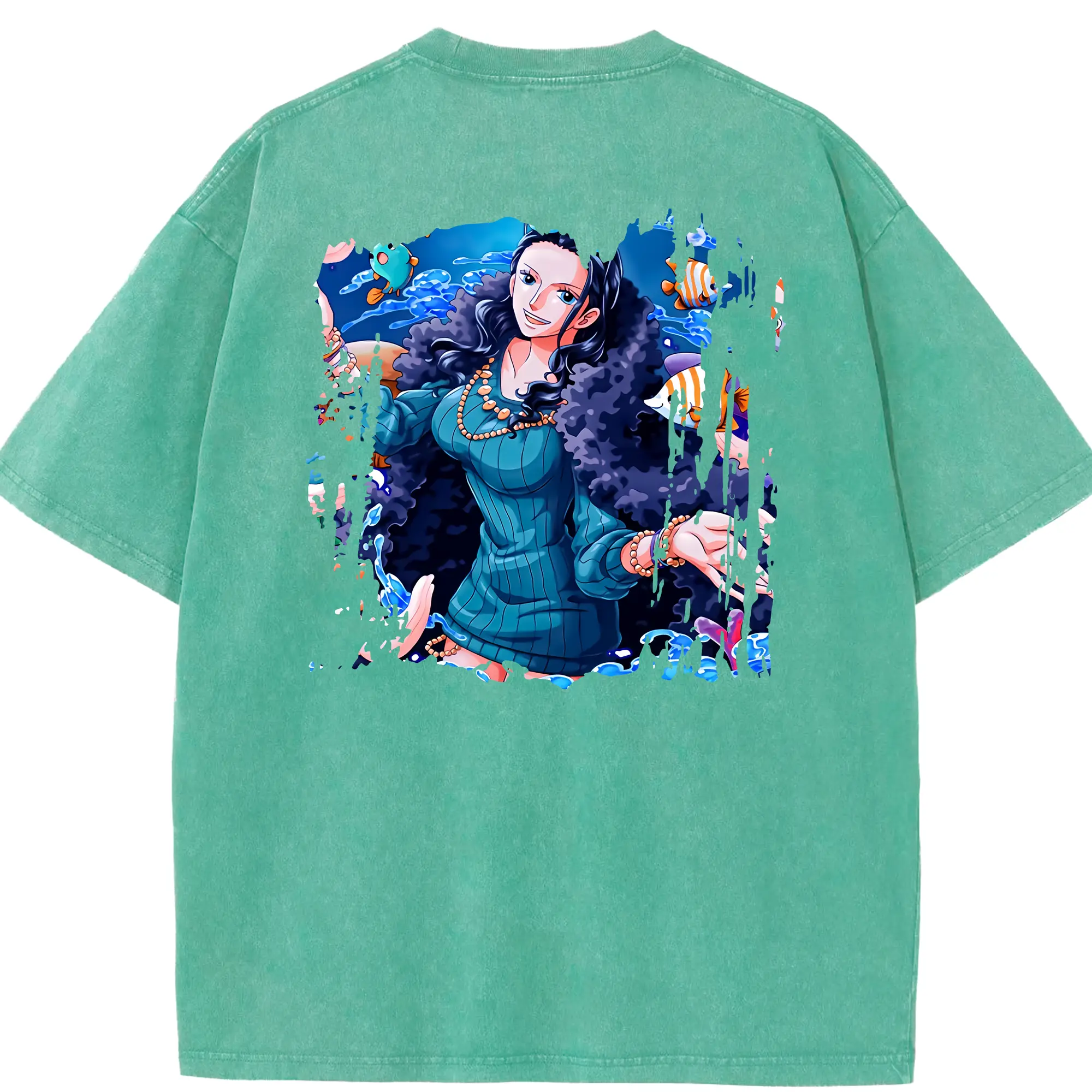 ワンピース グッズ ジンベエ - 綿100% ヴィンテージ風 半袖Tシャツ ・ 背面プリント ・ 柔らか肌触り ・ 通気性 快適 ・ スポーツ カジュアル 外出用