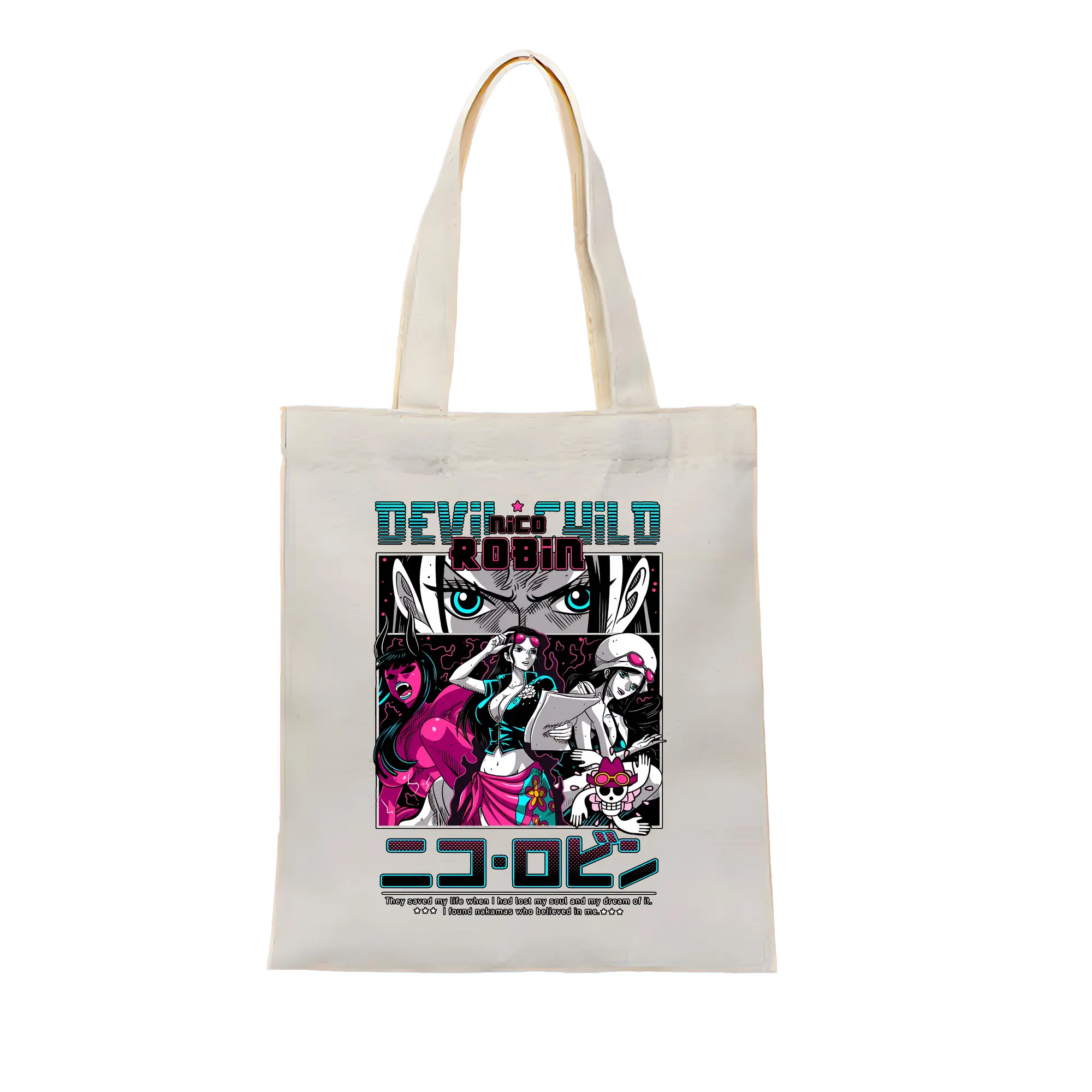 ワンピース グッズ ニコ・ロビン - 縦型キャンバス手提げバッグ(トートバッグ) ・ キャンバス素材 ・ ショッピング用 ・ 軽量 丈夫 お手入れ簡単