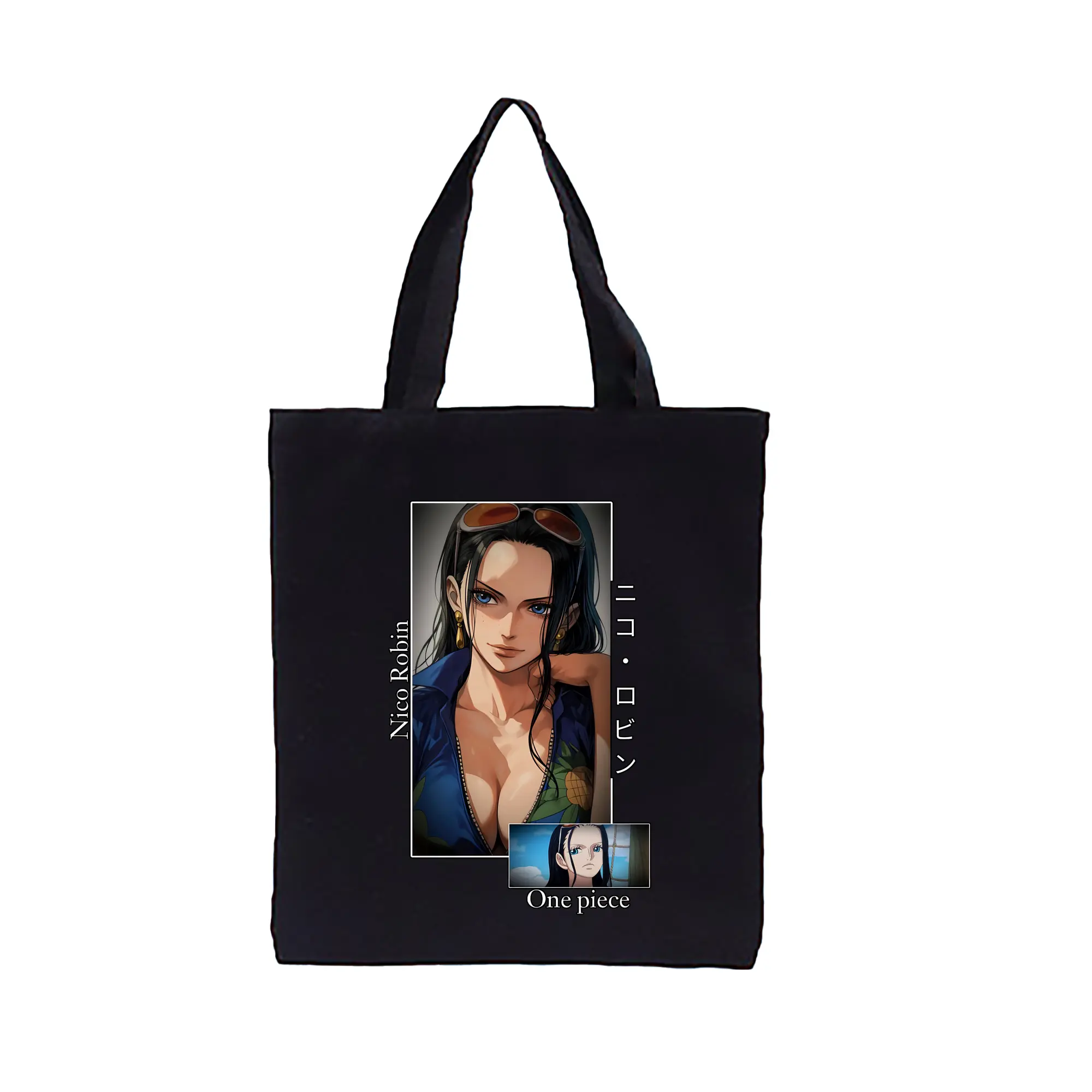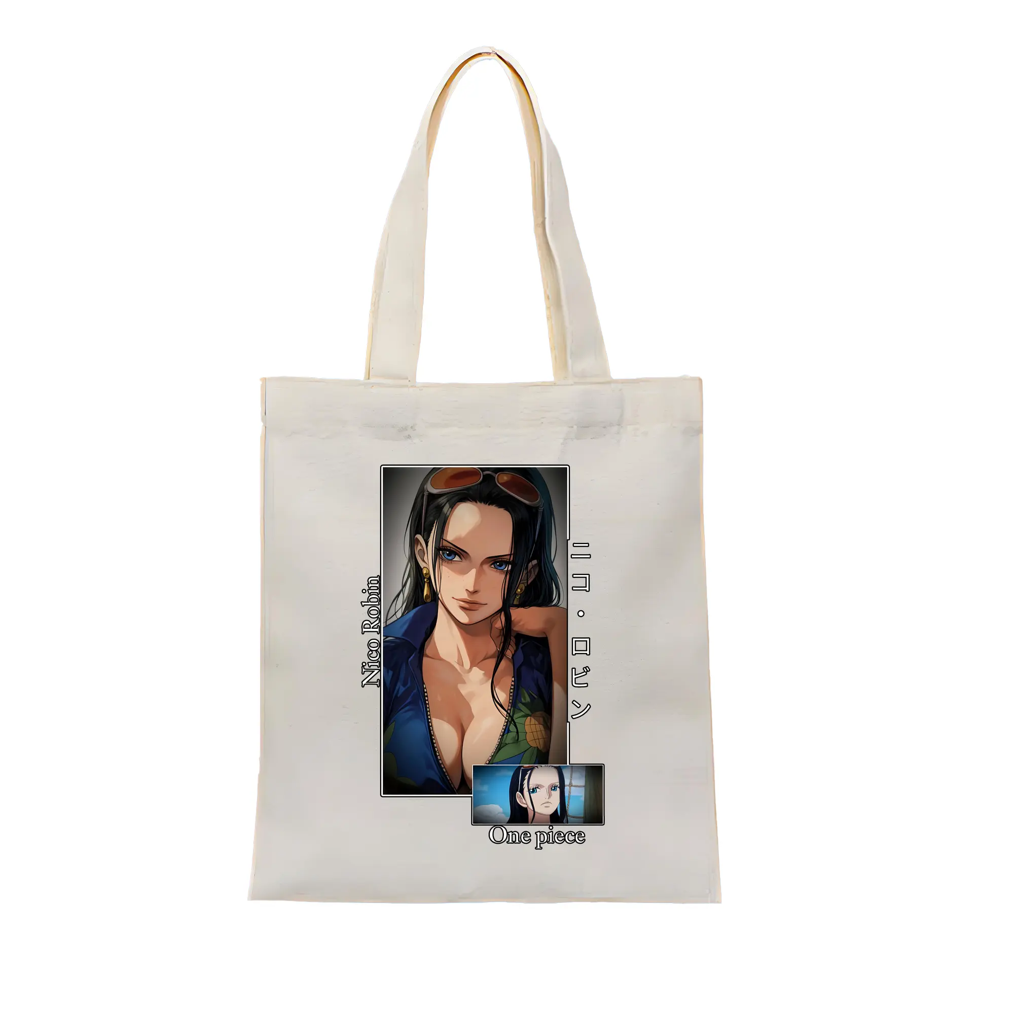 ワンピース グッズ ニコ・ロビン - 縦型キャンバス手提げバッグ(トートバッグ) ・ キャンバス素材 ・ ショッピング用 ・ 軽量 丈夫 お手入れ簡単