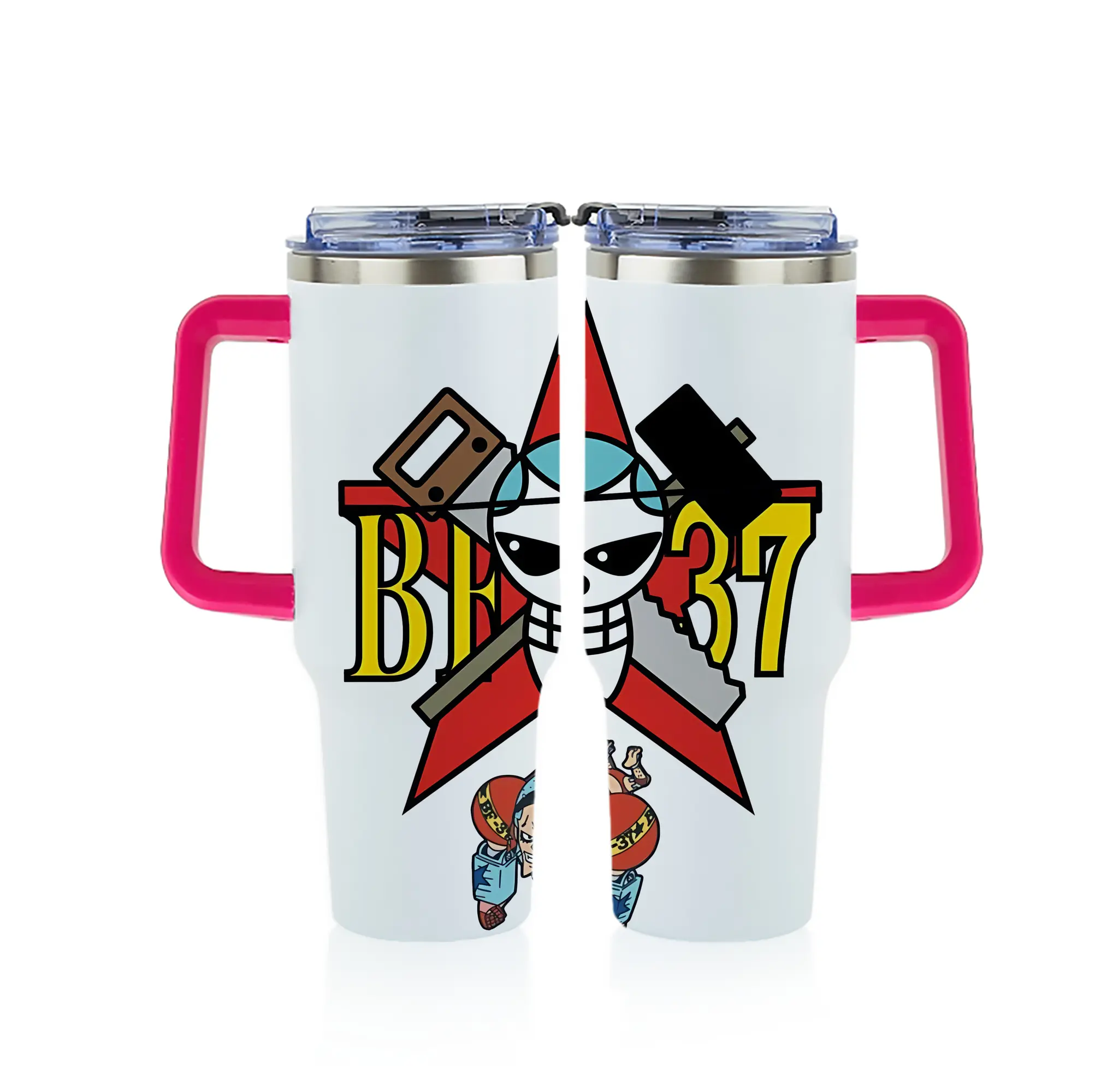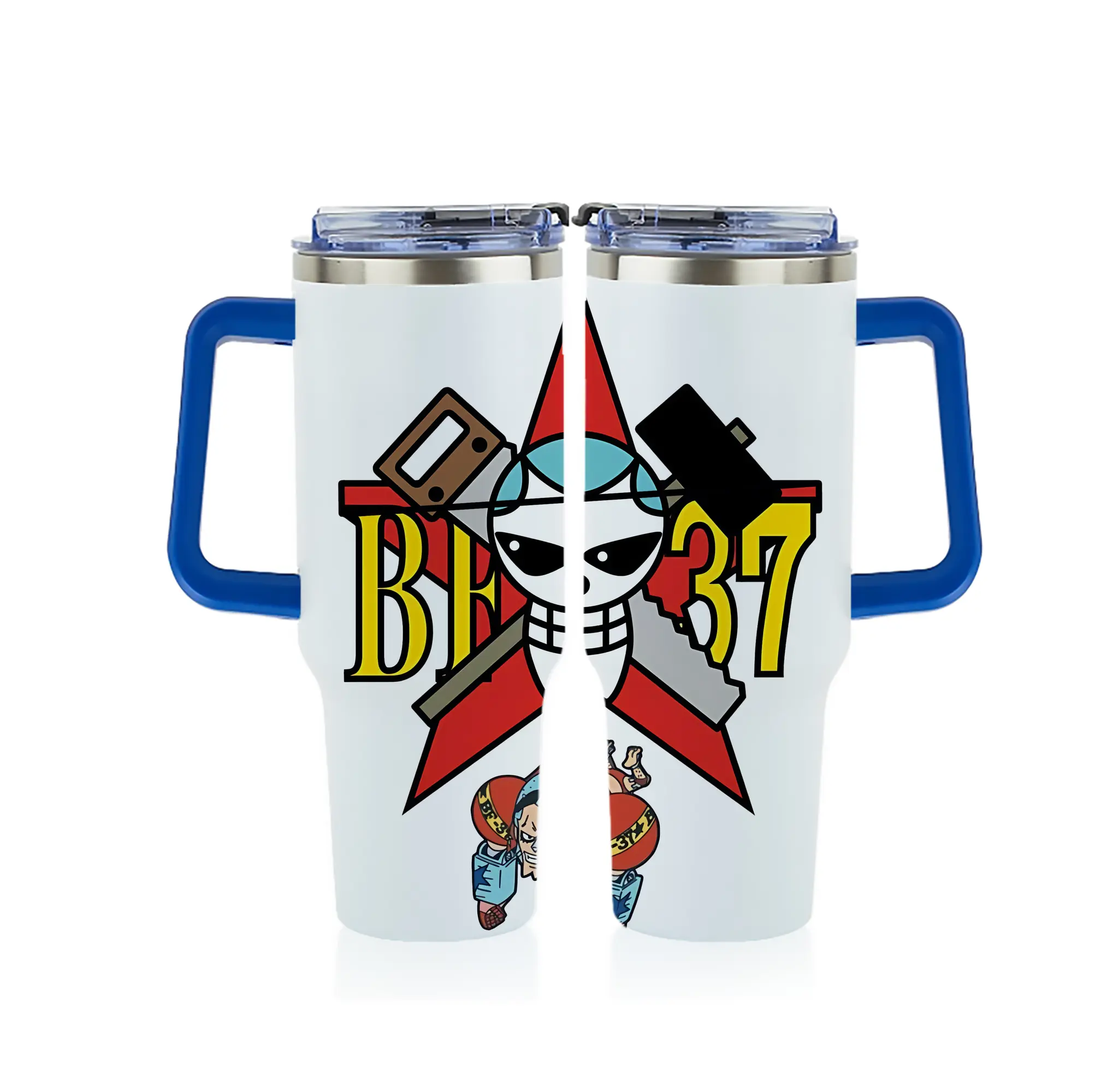 ワンピース グッズ フランキー - 1200mL フルプリント車用タンブラー ・ 304ステンレス 内側 ・ 201ステンレス 外側 ・ 保温 保冷 ・ 通勤 ドライブ アウトドア用