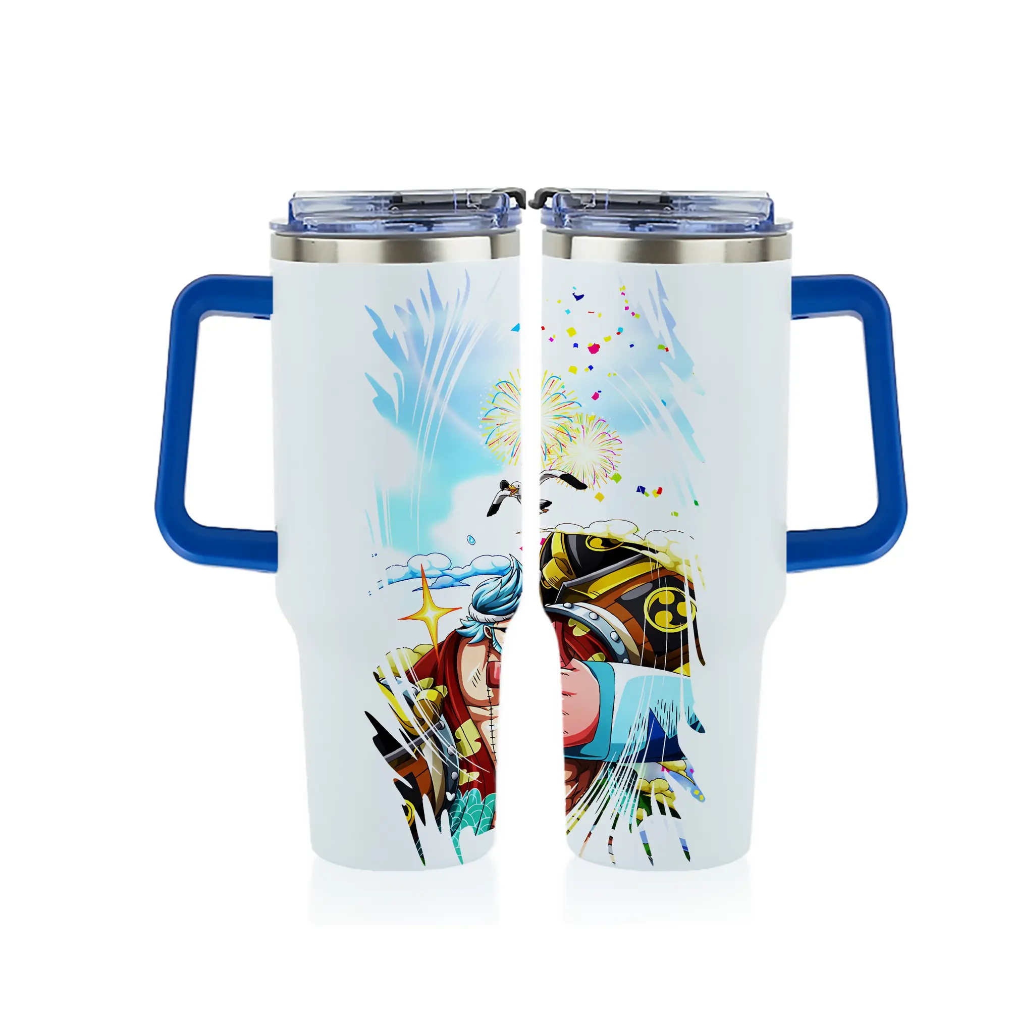 ワンピース グッズ フランキー - 1200mL フルプリント車用タンブラー ・ 304ステンレス 内側 ・ 201ステンレス 外側 ・ 保温 保冷 ・ 通勤 ドライブ アウトドア用