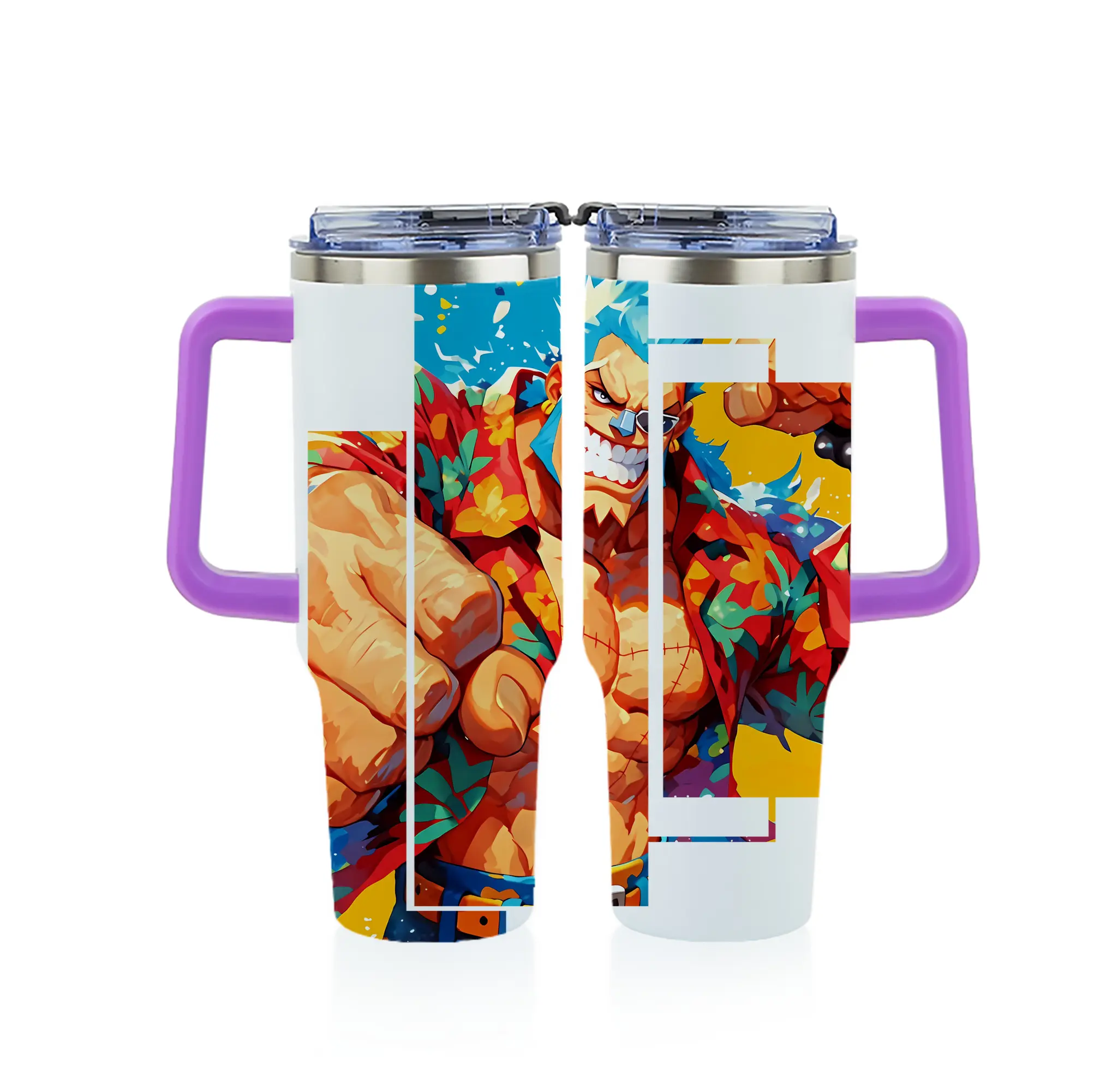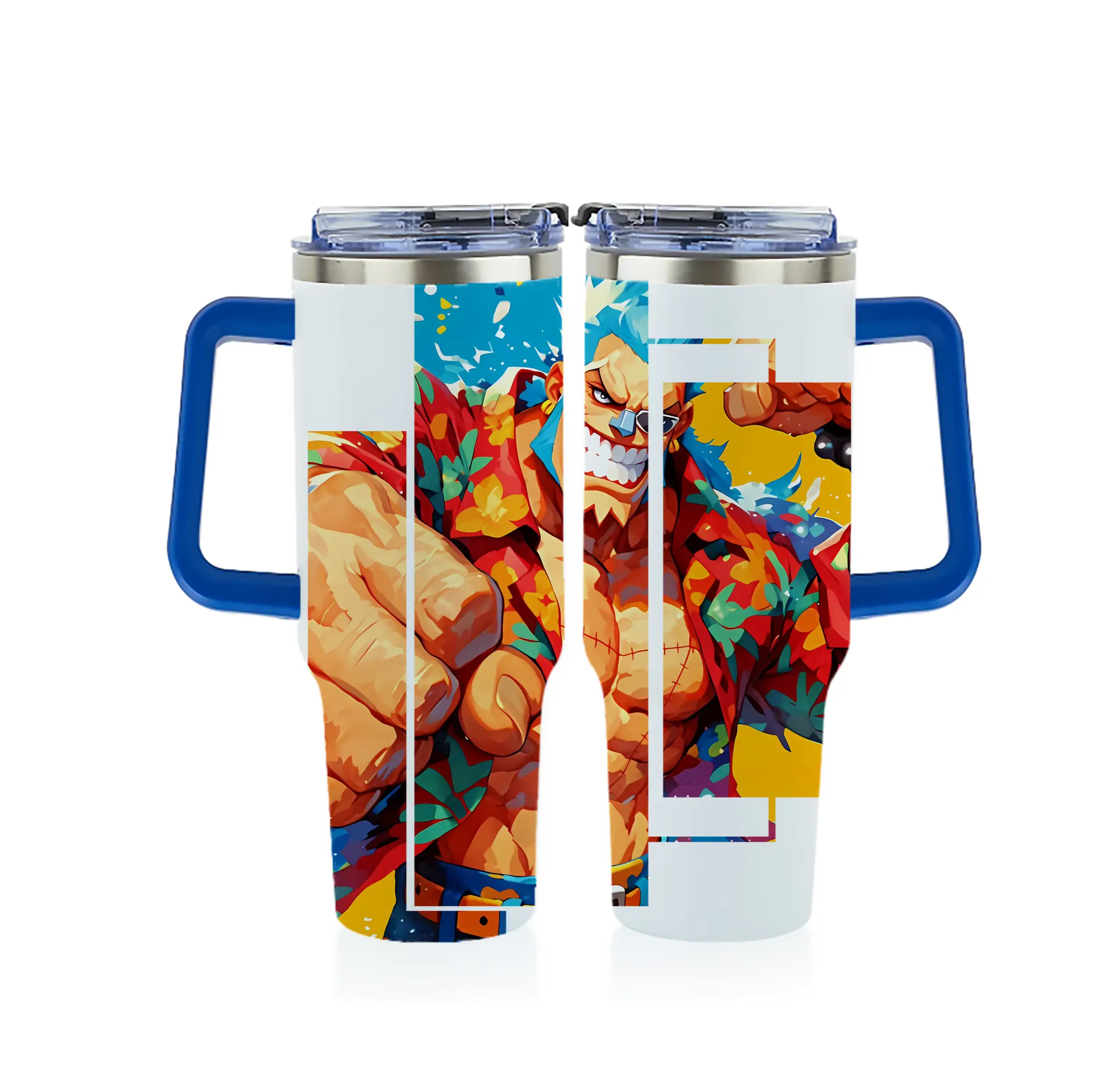 ワンピース グッズ フランキー - 1200mL フルプリント車用タンブラー ・ 304ステンレス 内側 ・ 201ステンレス 外側 ・ 保温 保冷 ・ 通勤 ドライブ アウトドア用
